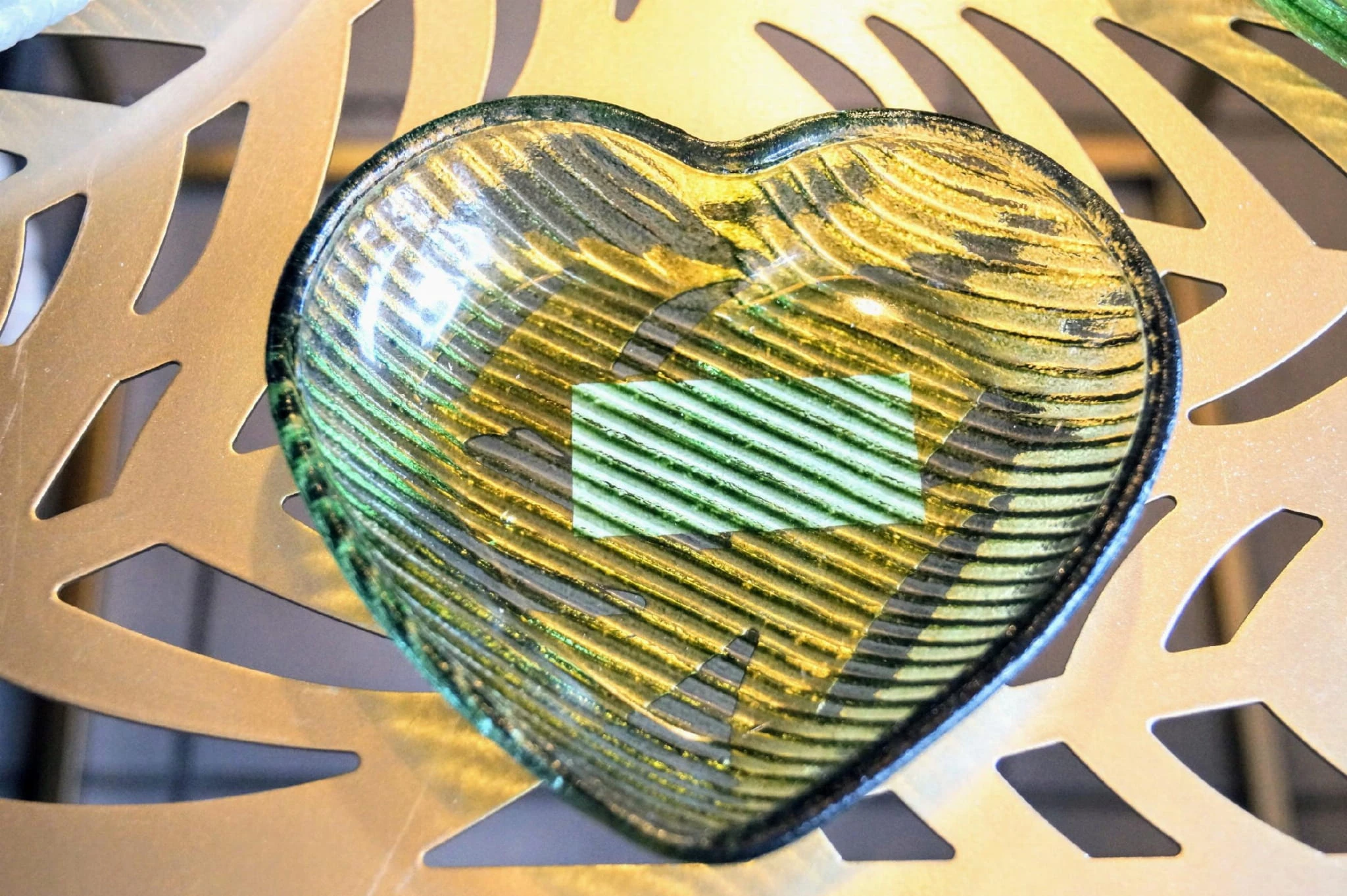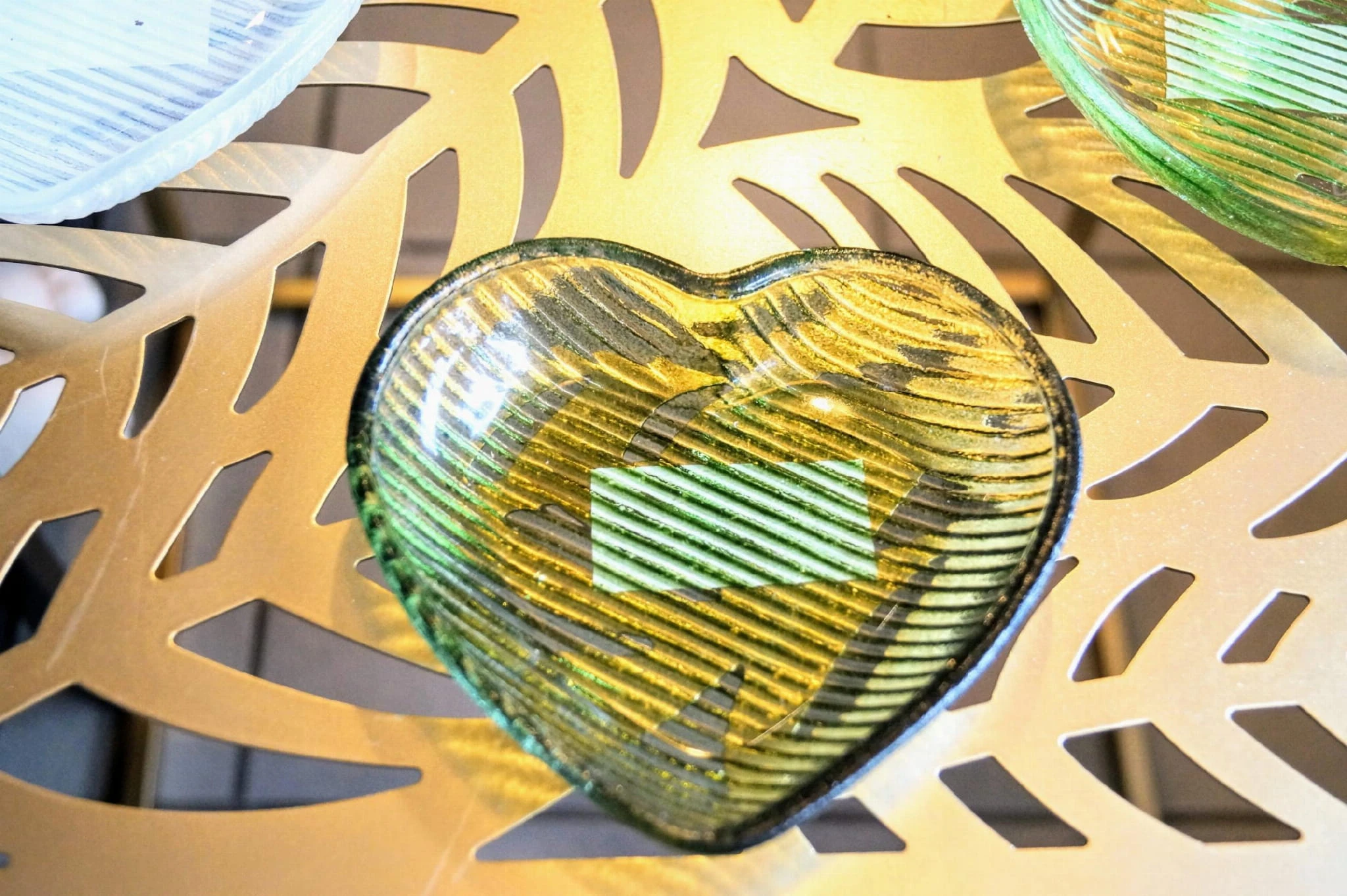 Dekoracyjny talerz/miseczka ze strukturalnego szkła, w kształcie serca.