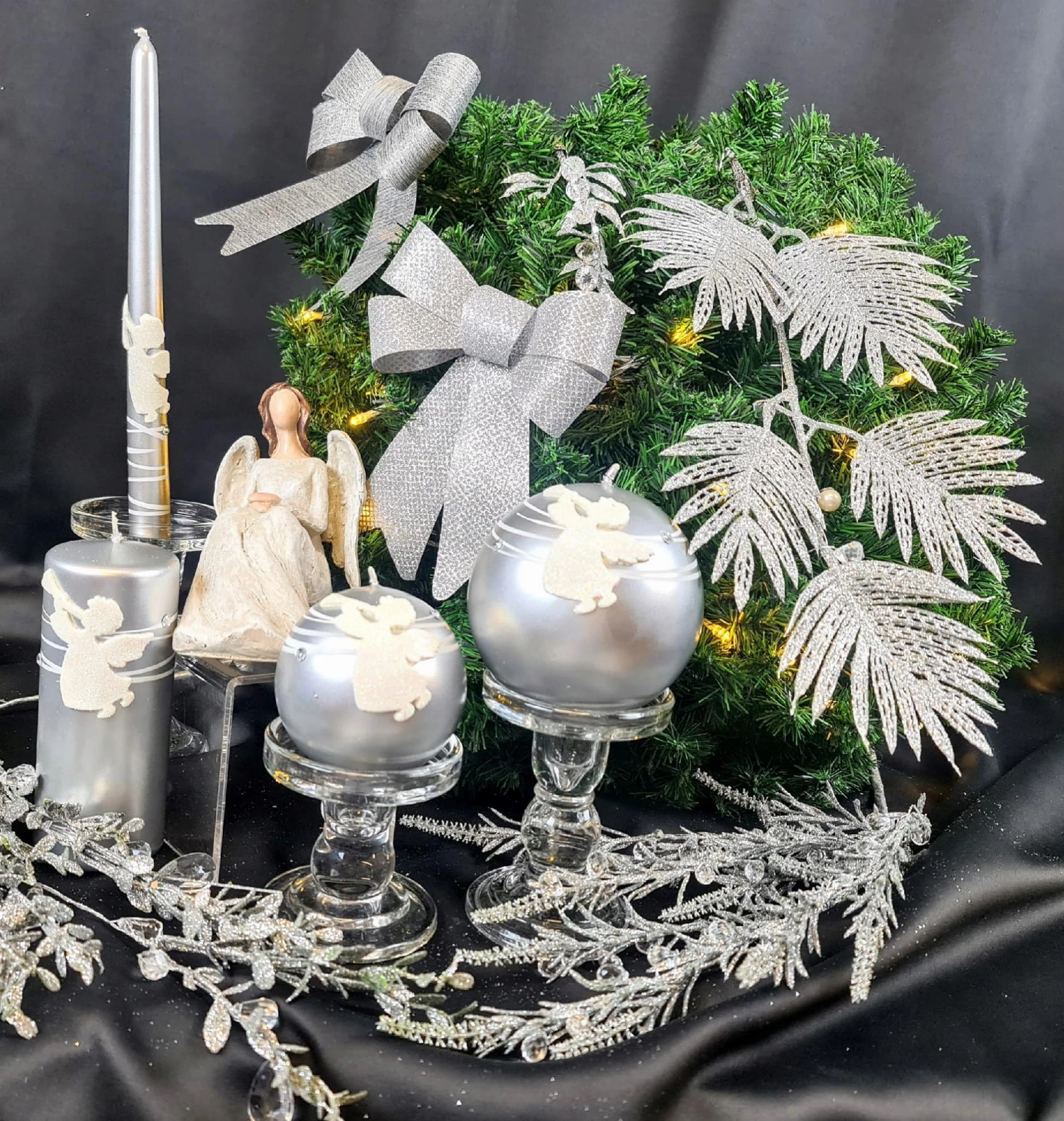 SZTUCZNA GAŁĄZKA SREBRNA Z AKRYLEM 80 CM