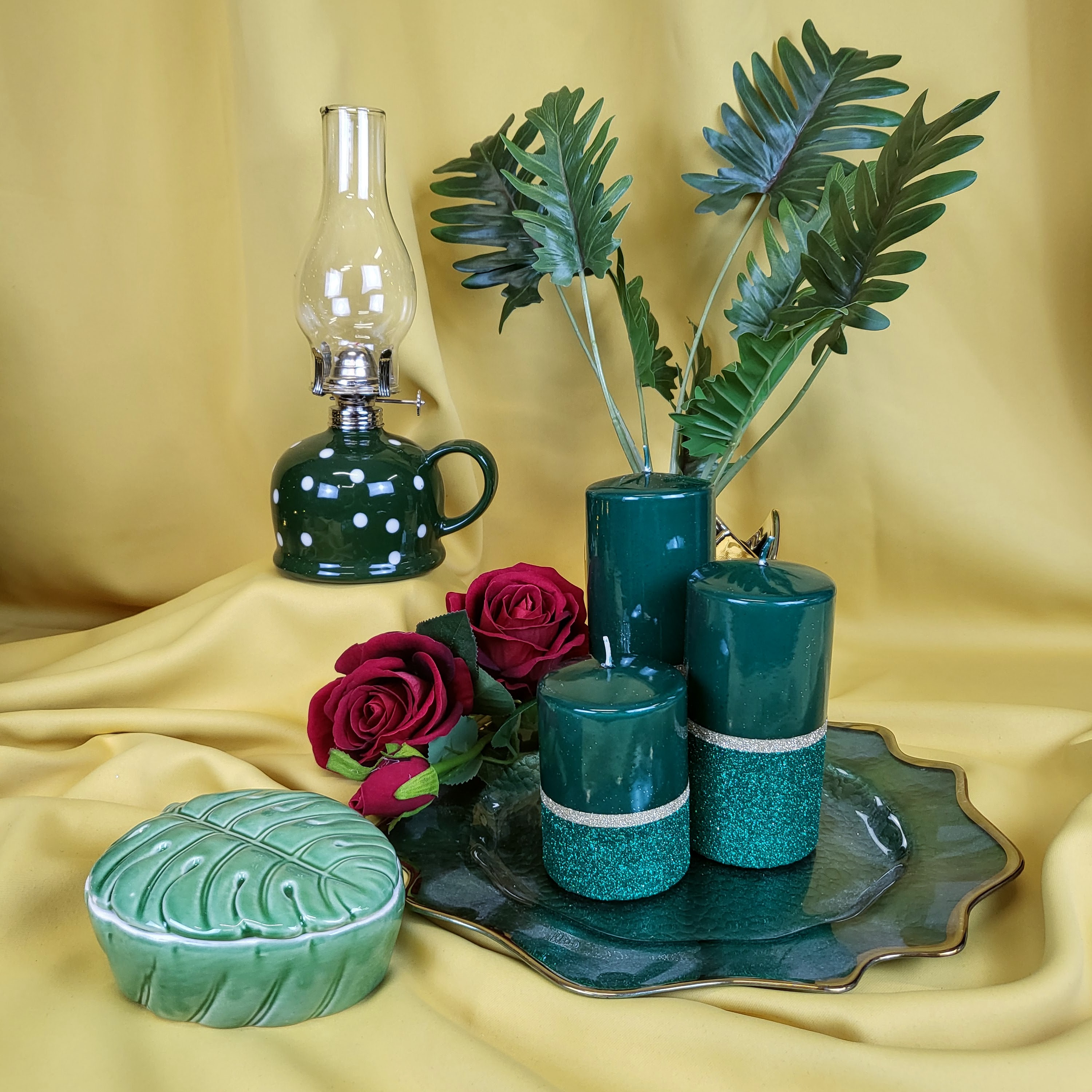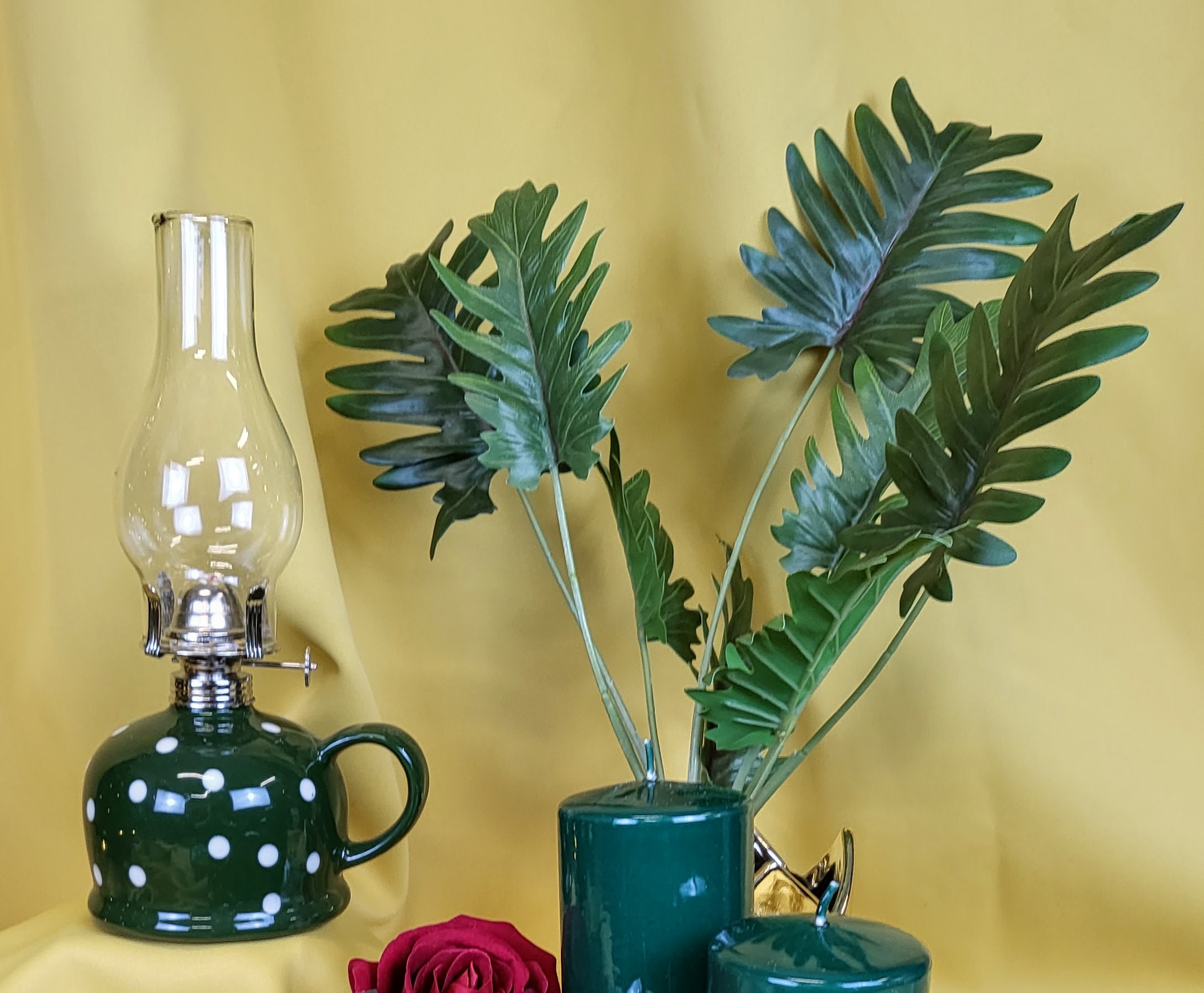 Dekoracyjna, sztuczna roślina – odcienie zieleni.