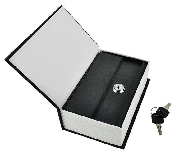 - SPECYFIKACJA - materiał; stal nierdzewna, ukryta w książce dominujący materiał: papier, pozostałe: ABS; kolor: czarny/biały; wymiary zewnętrzne (dł/szer/wys) 18/11,5/5,6cm; wymiary wewnętrzne 16,8/10/5cm; waga: 415g; waga w opakowaniu: 439g.
