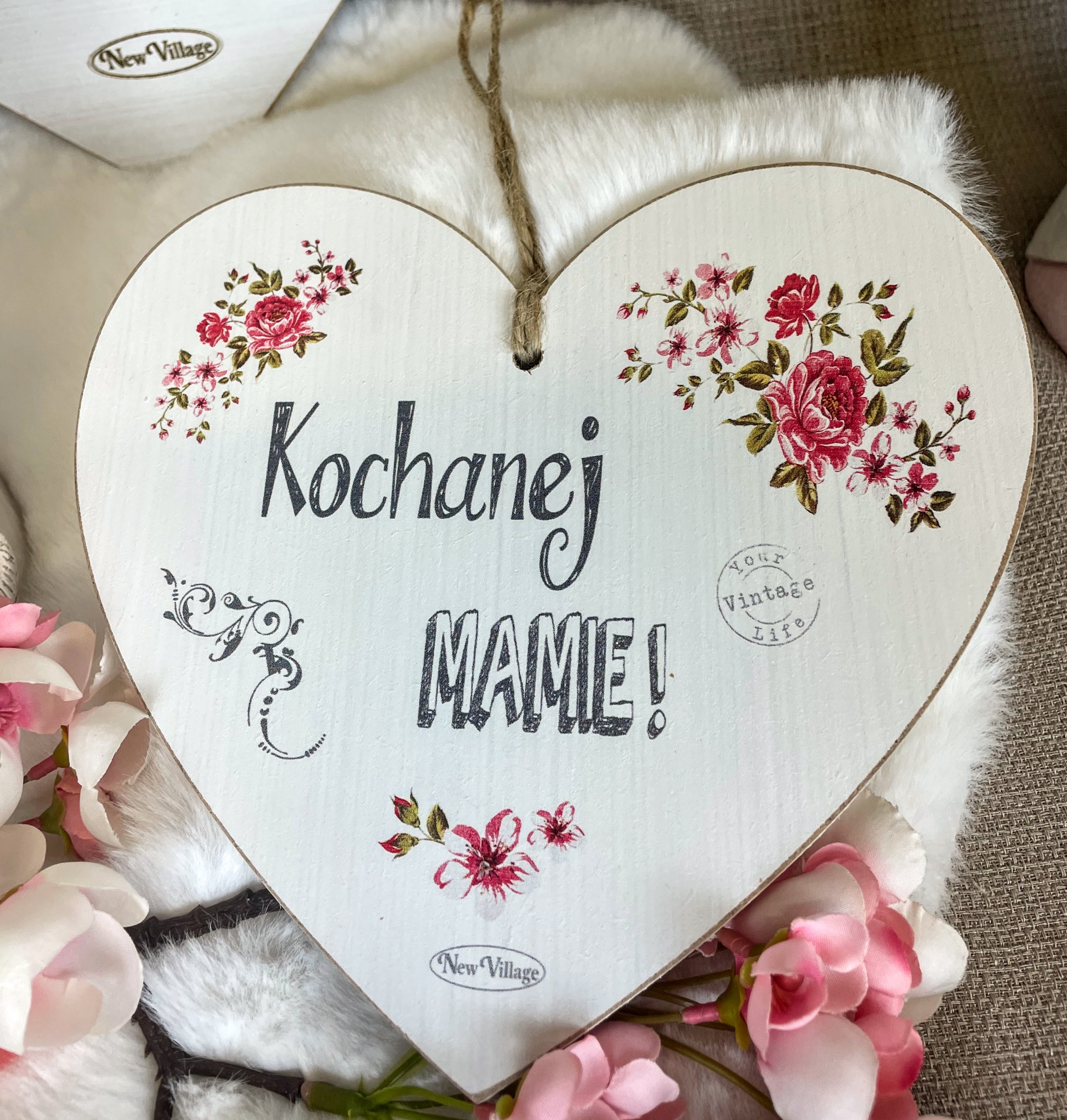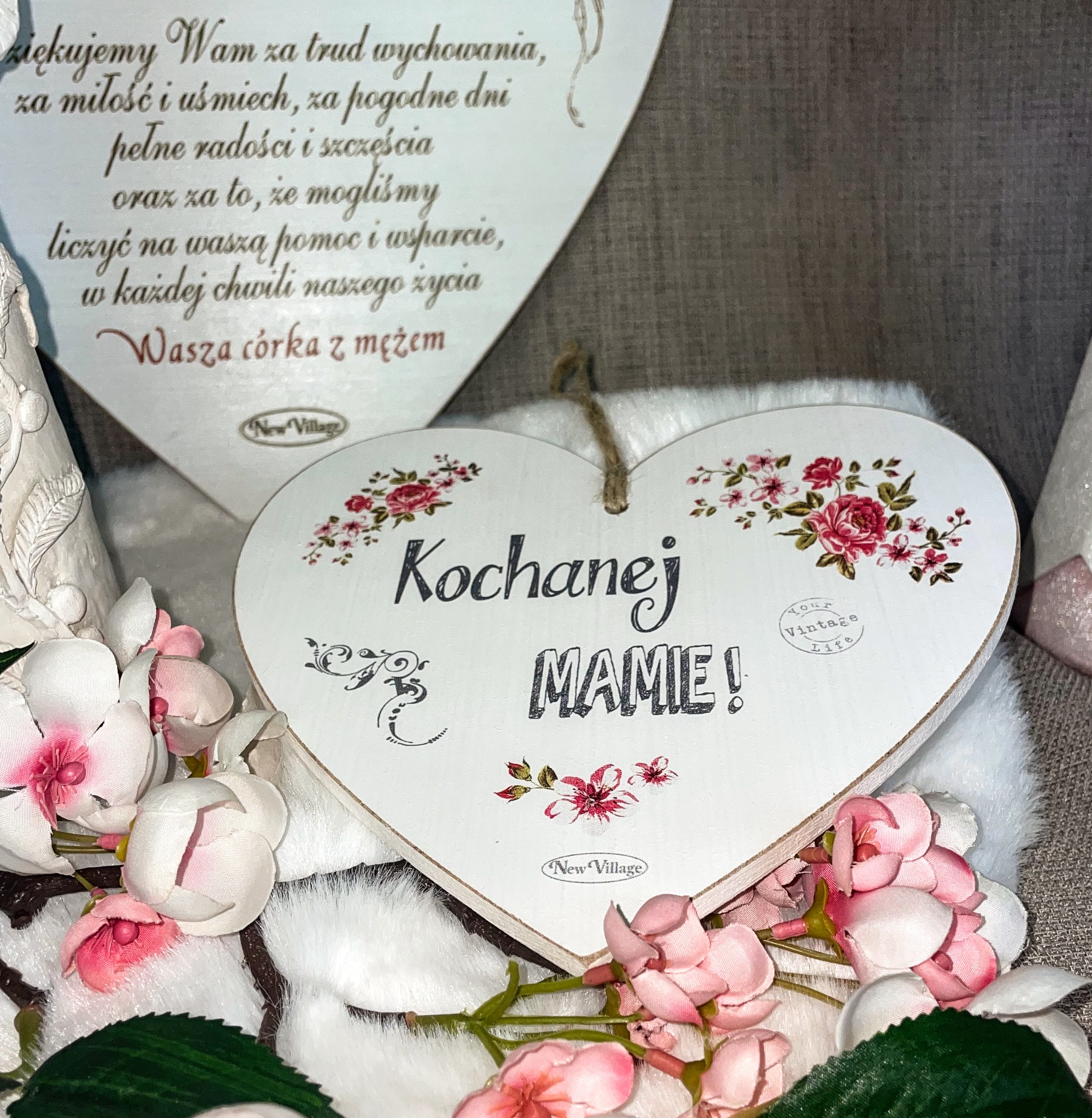 Tabliczka drewniana z życzeniami dla Mamy. Niezobowiązujący prezent lub drobiazg, którym można uzupełnić właściwy podarunek.
