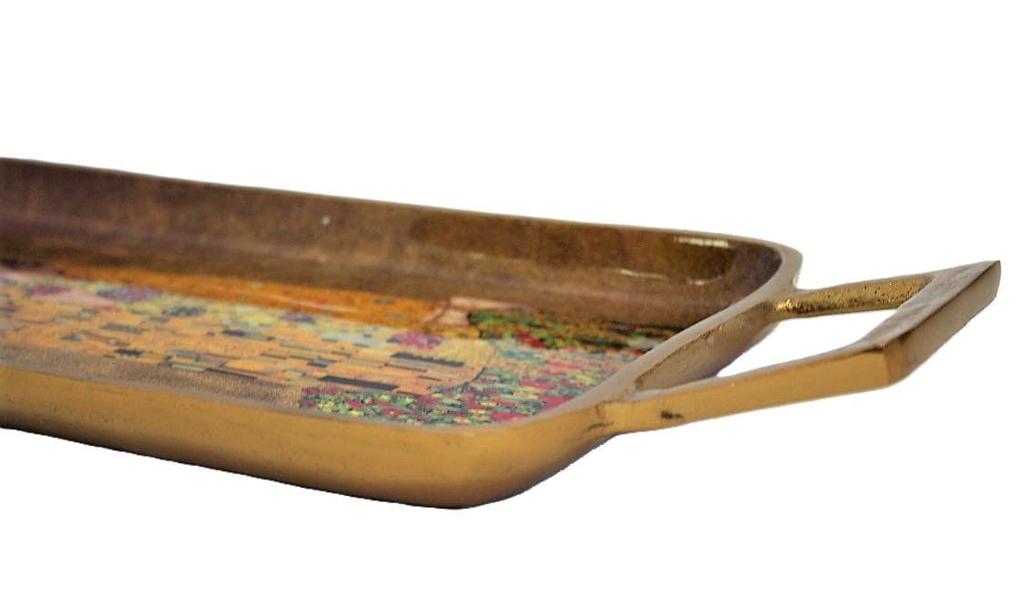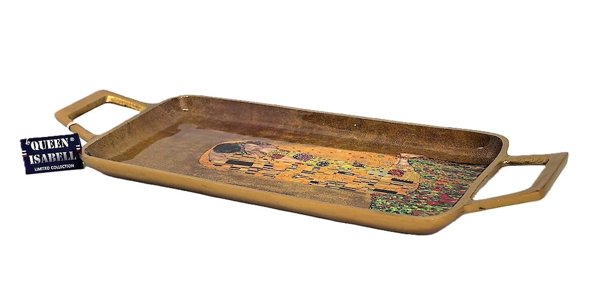 Pomimo swojej prostoty, taca z aluminium emanuje wyrafinowaną elegancją i artystycznym wdziękiem. Na jej powierzchni wyróżnia się kalka, przedstawiająca misternie odtworzoną scenę z obrazu Gustava Klimta "Pocałunek". Taca została pokryta cienką, ale trwał ą warstwą emalii, nadając jej subtelny połysk oraz ochronę przed uszkodzeniami. Dzięki temu delikatnemu wykończeniu, taca zachowuje swoją elegancję i artystyczny charakter przez wiele lat, jednocześnie podkreślając wyjątkowy smak i styl właściciela.Pomimo swojej prostoty, taca z aluminium emanuje wyrafinowaną elegancją i artystycznym wdziękiem. Na jej powierzchni wyróżnia się kalka, przedstawiająca misternie odtworzoną scenę z obrazu Gustava Klimta "Pocałunek". Taca została pokryta cienką, ale trwał ą warstwą emalii, nadając jej subtelny połysk oraz ochronę przed uszkodzeniami. Dzięki temu delikatnemu wykończeniu, taca zachowuje swoją elegancję i artystyczny charakter przez wiele lat, jednocześnie podkreślając wyjątkowy smak i styl właściciela.