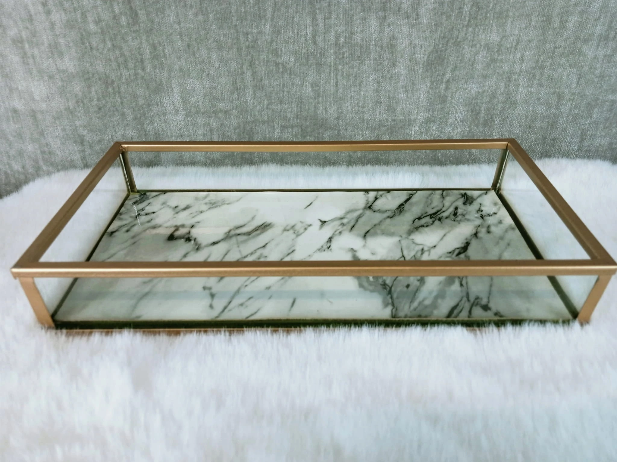 TACA DEKORACYJNA PROSTOKĄTNA MARMUR SZKLANE BRZEGI