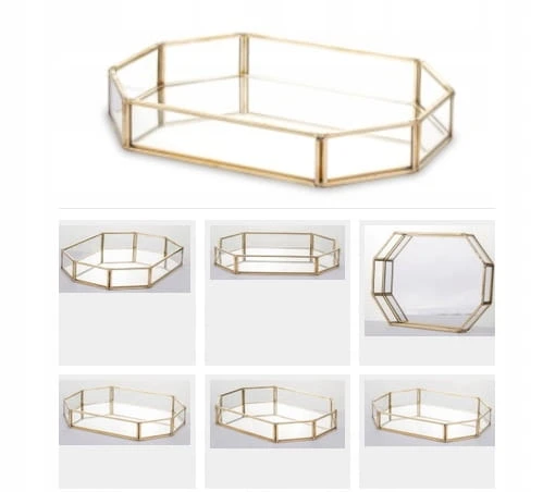 TACA OŚMIOKĄTNA LUSTRO SZKLANE BRZEGI