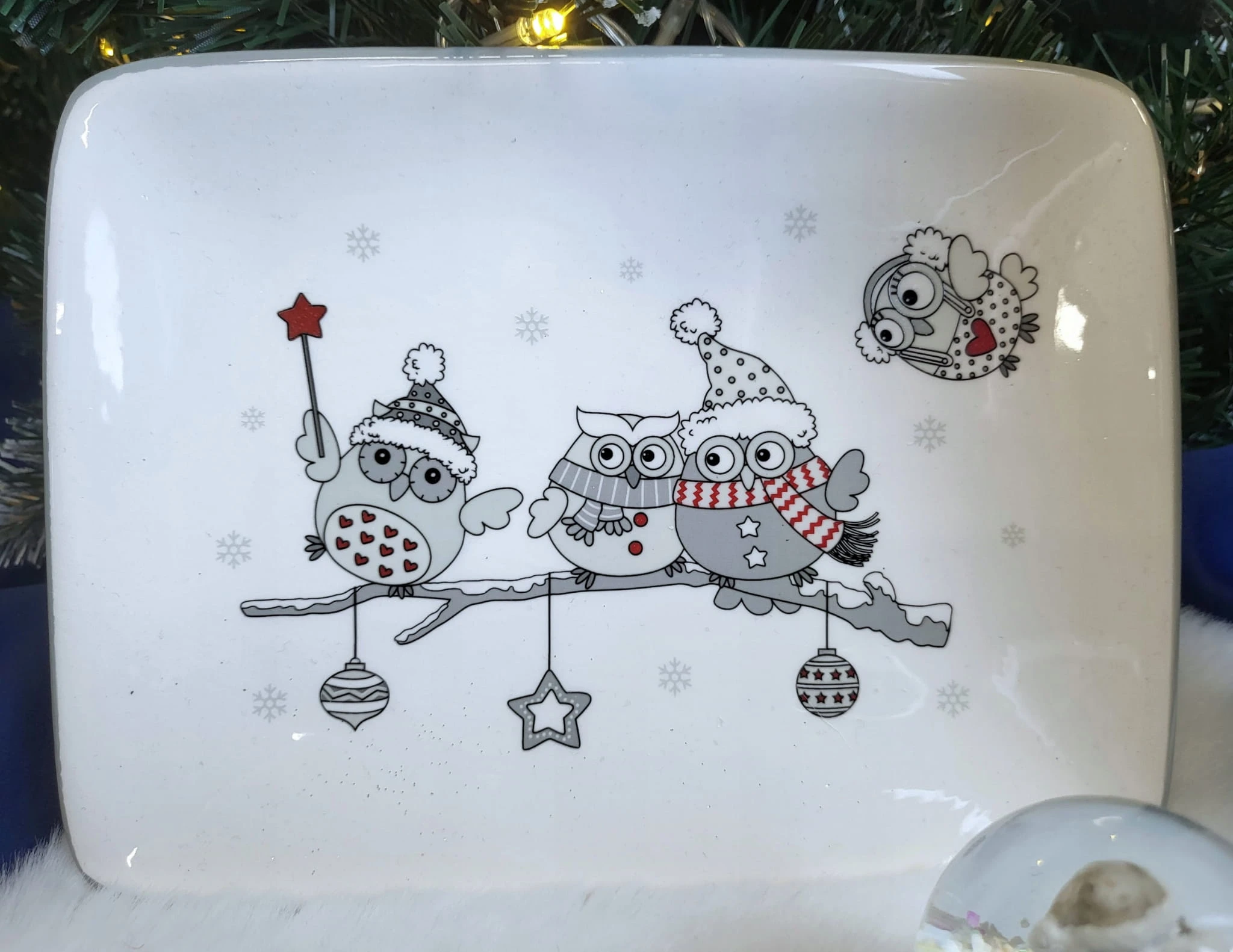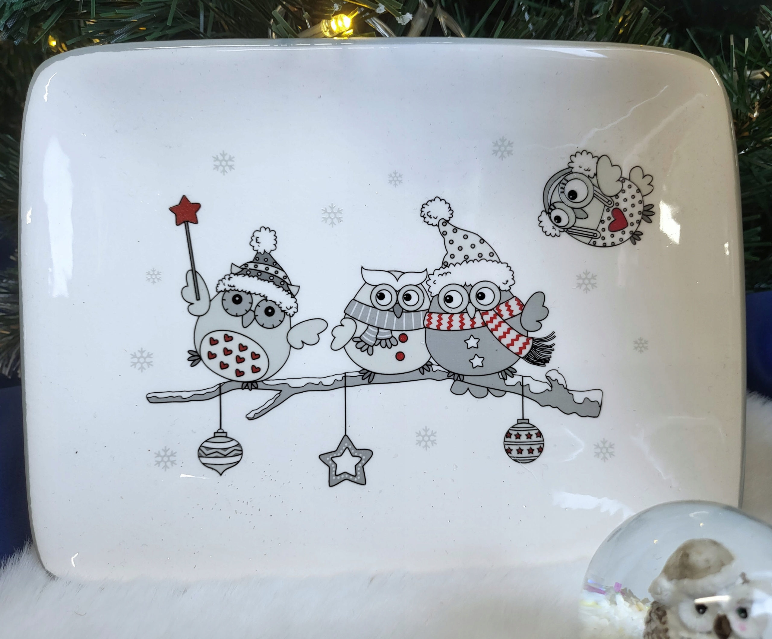 TACA TALERZ PROSTOKĄTNY ZIMOWE SOWY