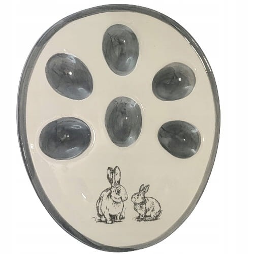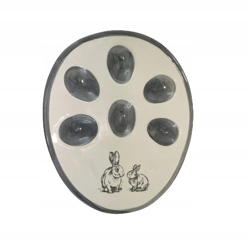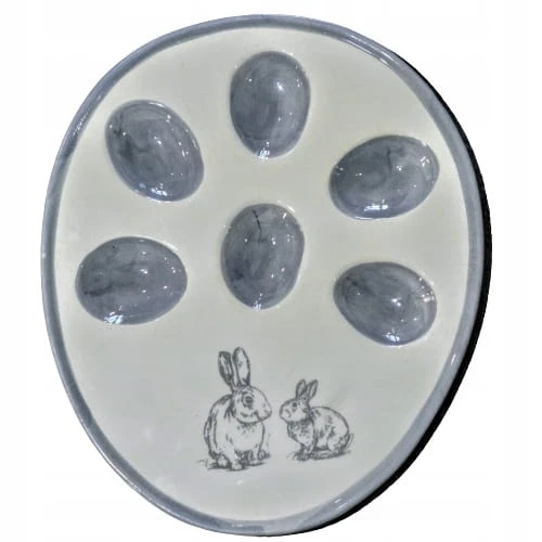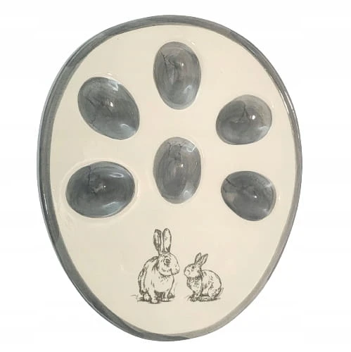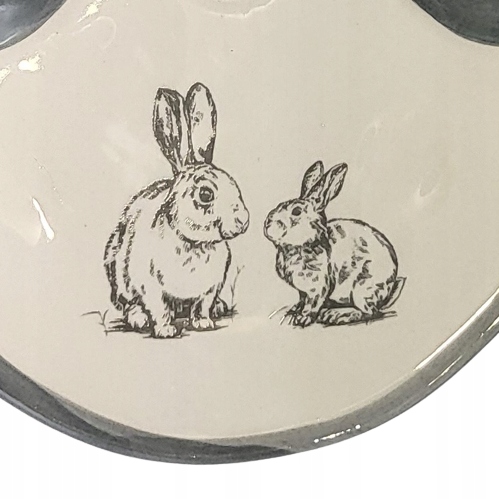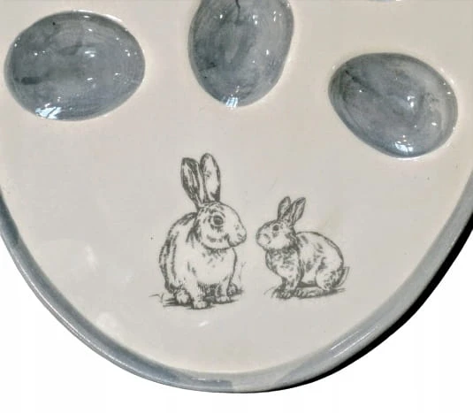TALERZ NA JAJKA BIAŁO-SZARY Z ZAJĄCZKAMI
