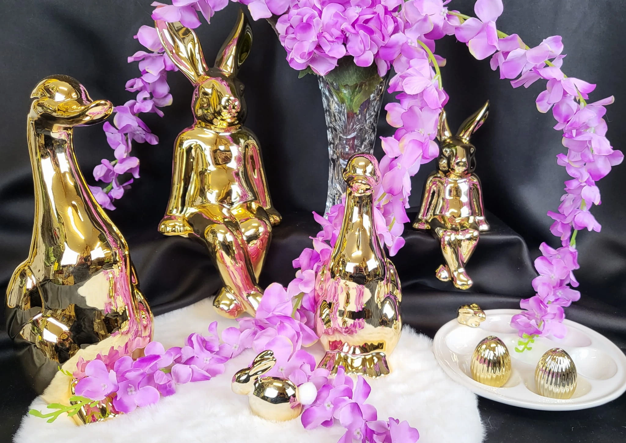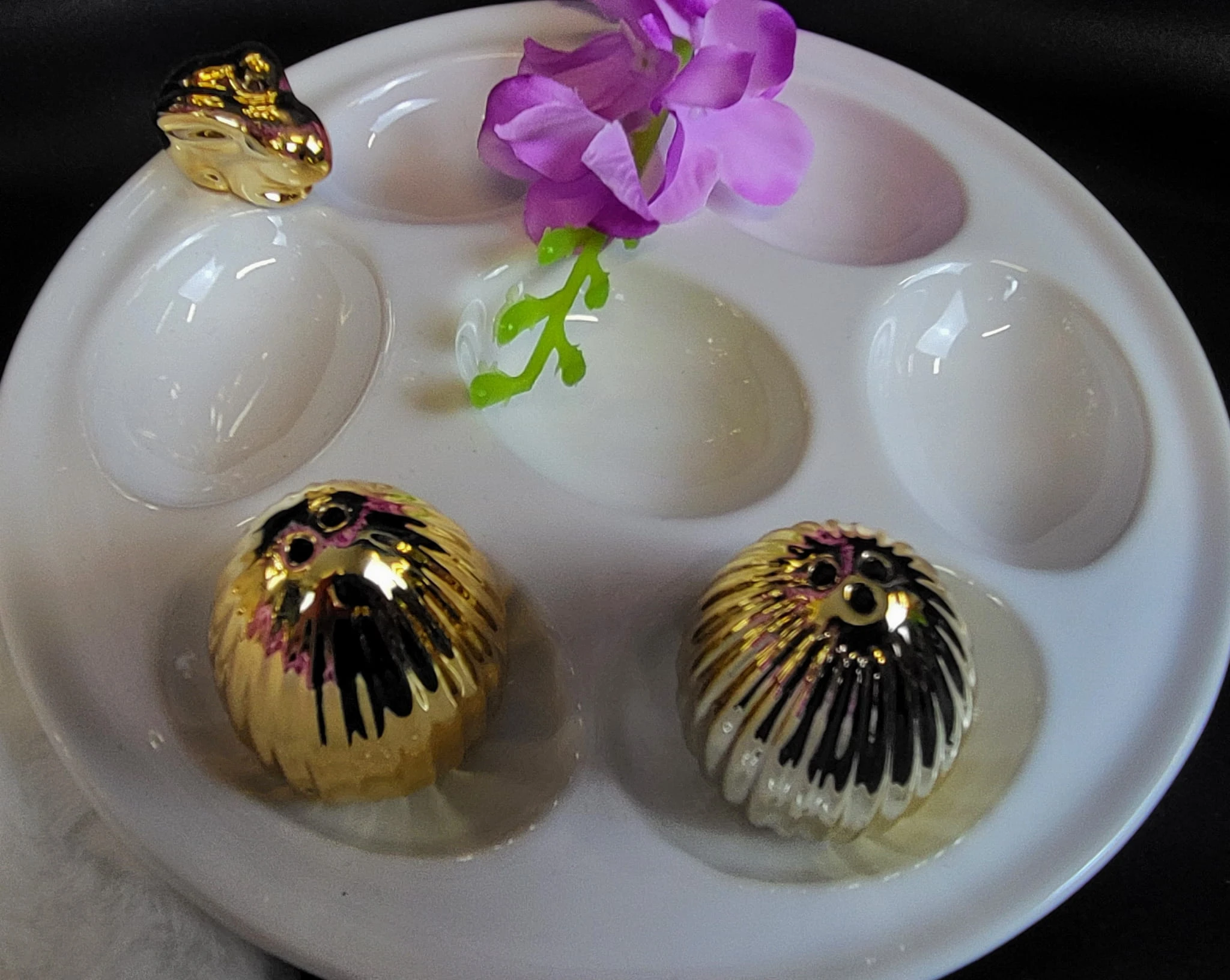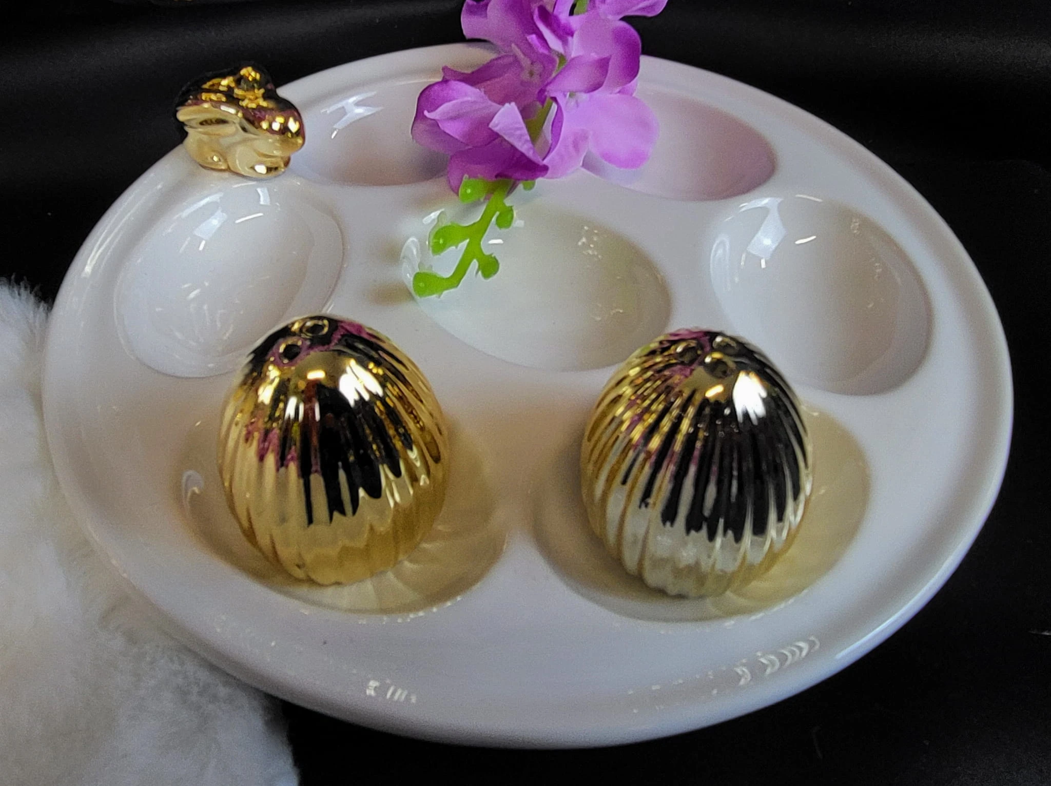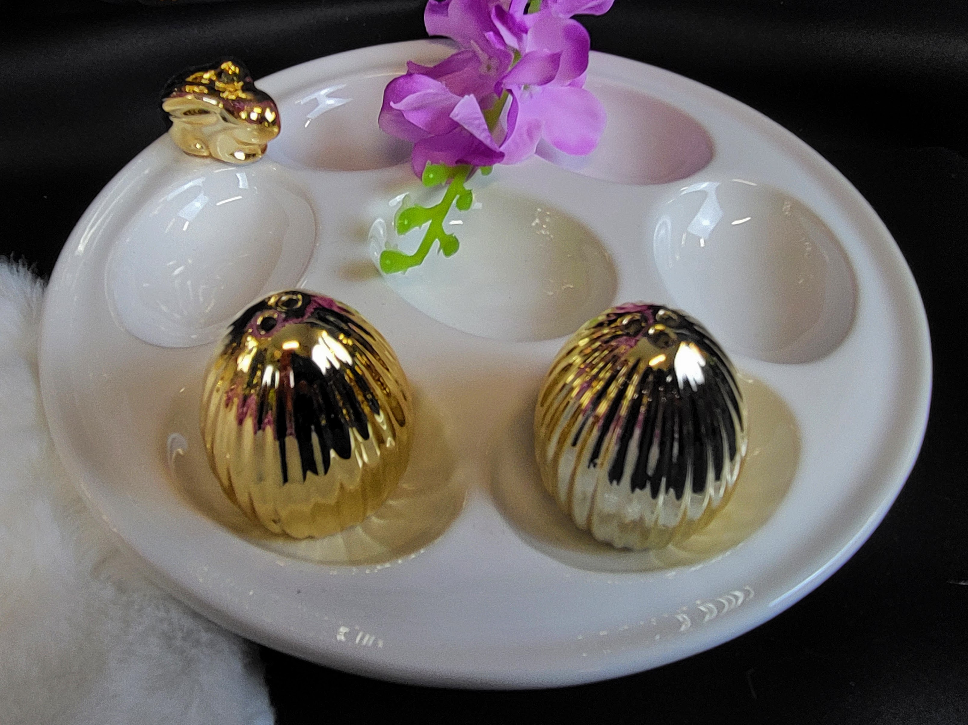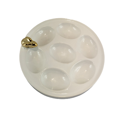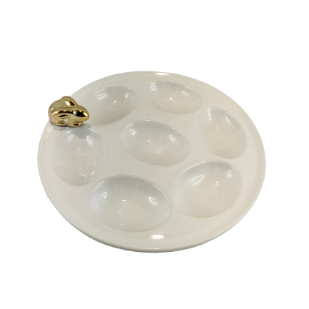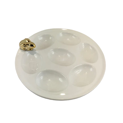TALERZ NA JAJKA BIAŁY ZE ZŁOTYM KRÓLIKIEM