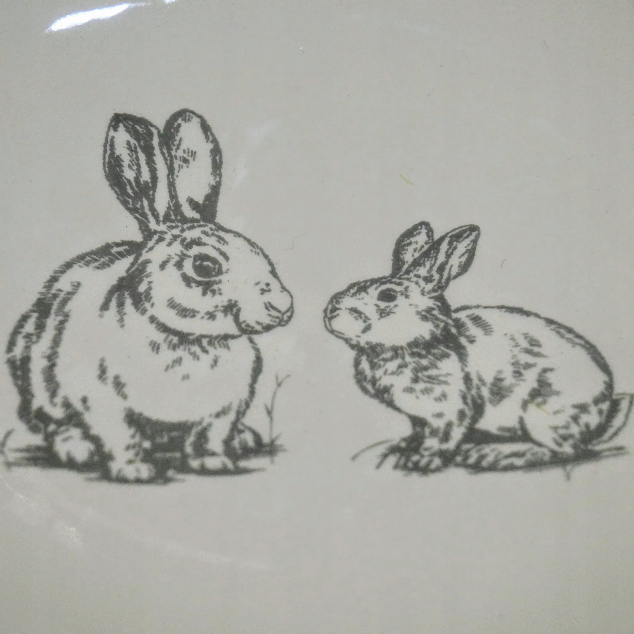 Ceramiczny, stylizowany talerz deserowy z motywem zajączków.