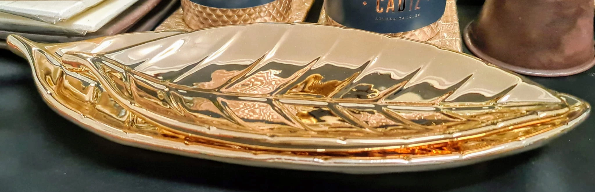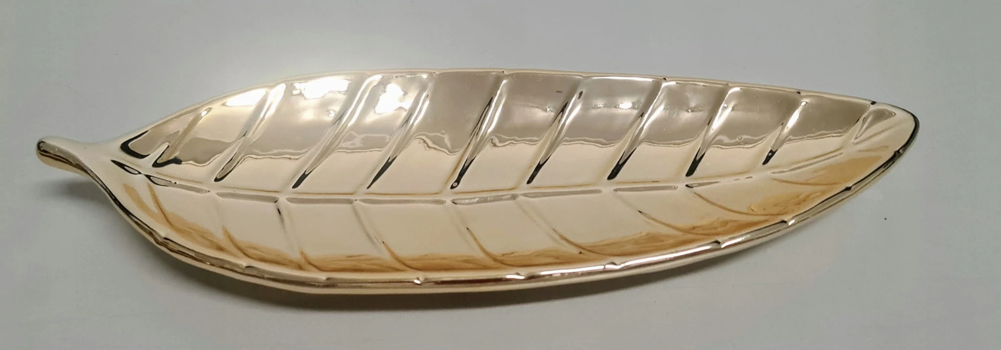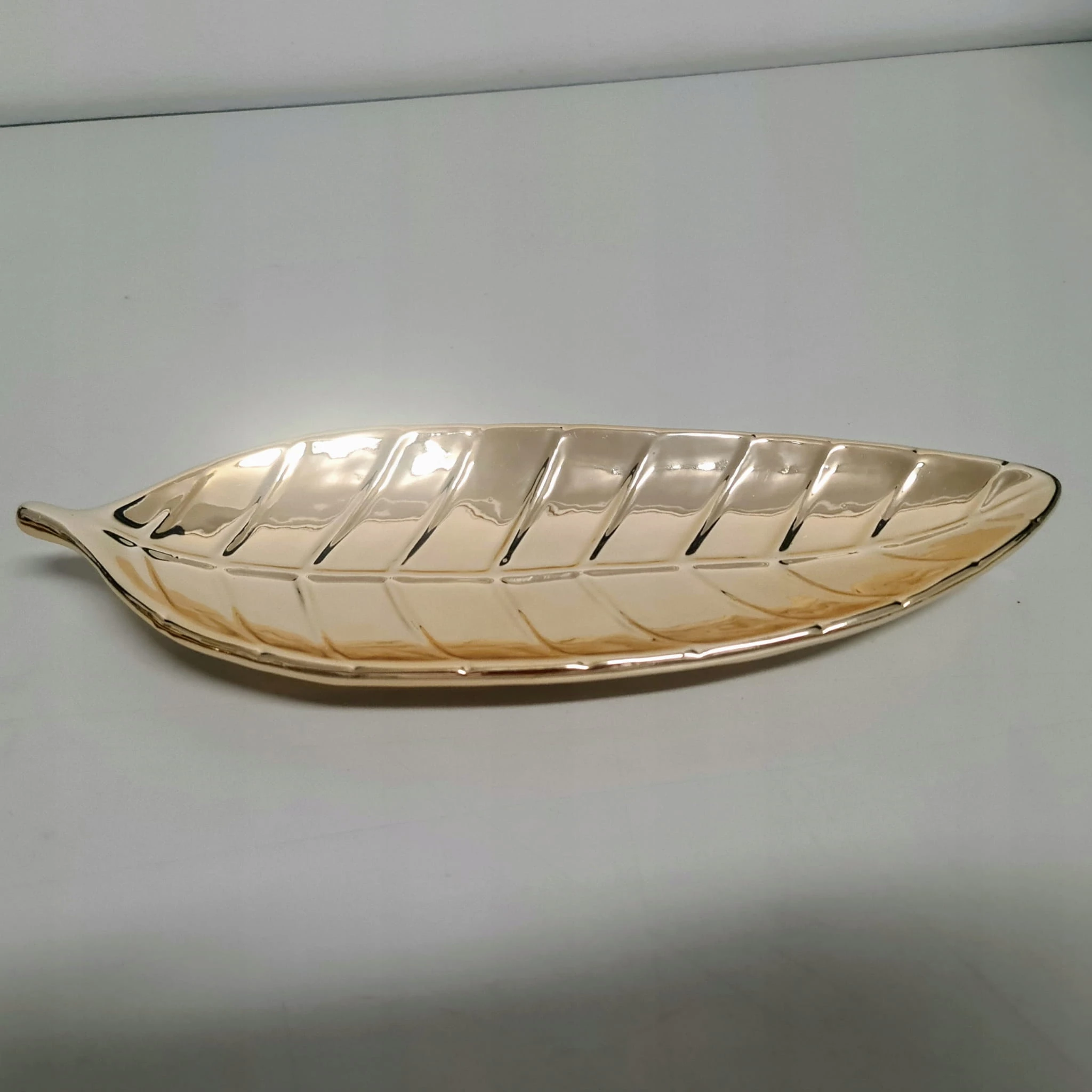 TALERZ OZDOBNY CERAMICZNY - LIŚĆ ZŁOTY 35X12X3,5CM