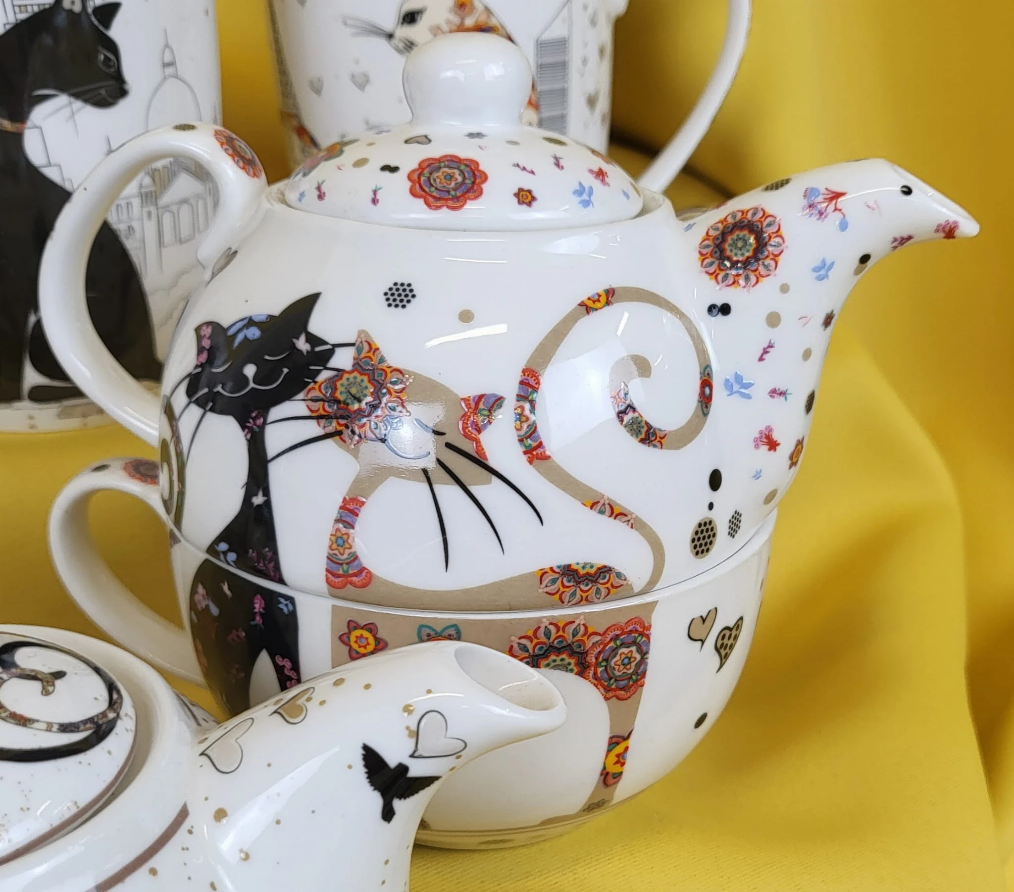 Piękny zestaw (kubek+dzbanek) przedstawiający parę zakochanych kotów.
