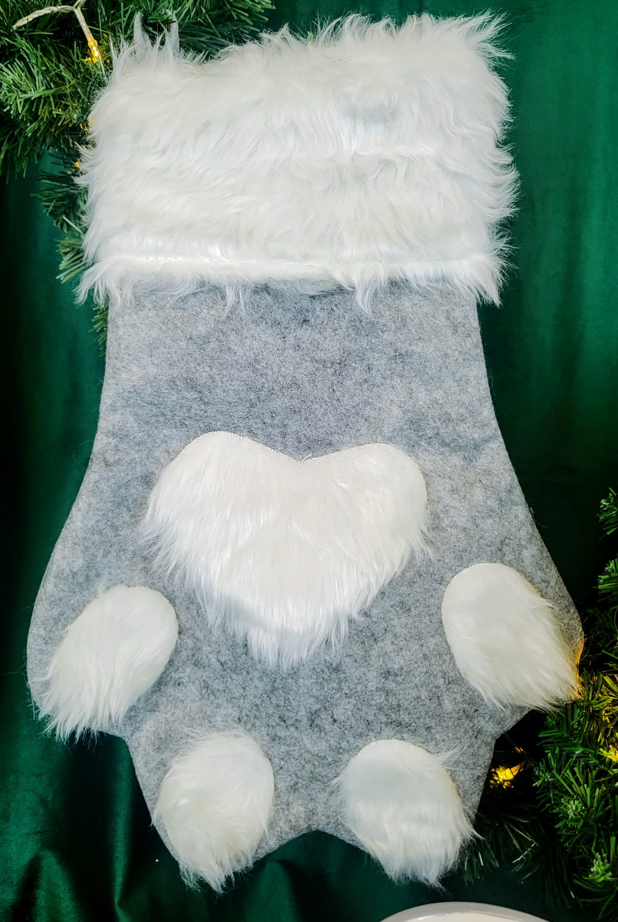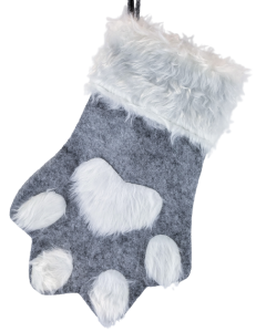Skarpeta w kształcie łapy, idealnie będzie się prezentować zawieszona nad kominkiem, czy na balustradzie.