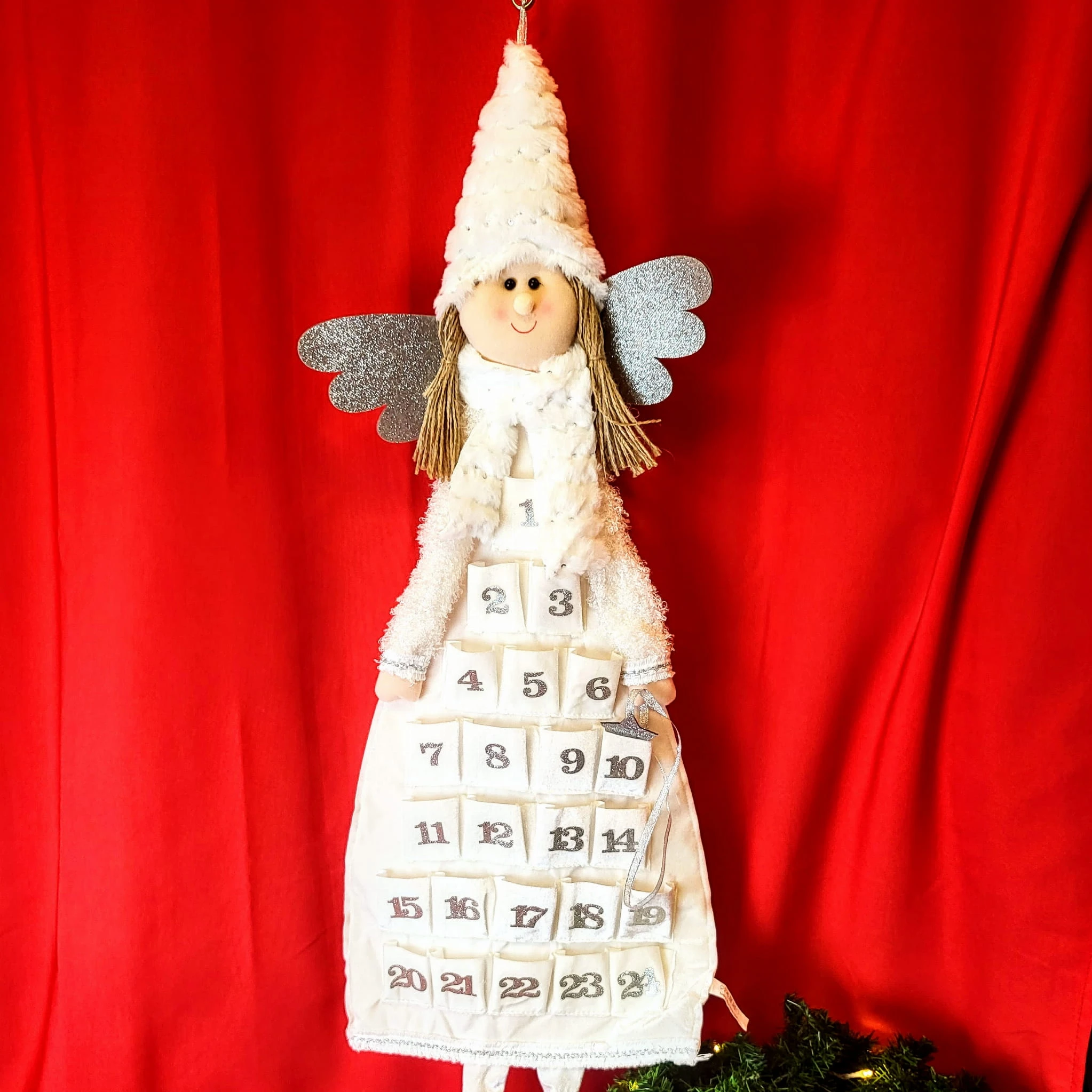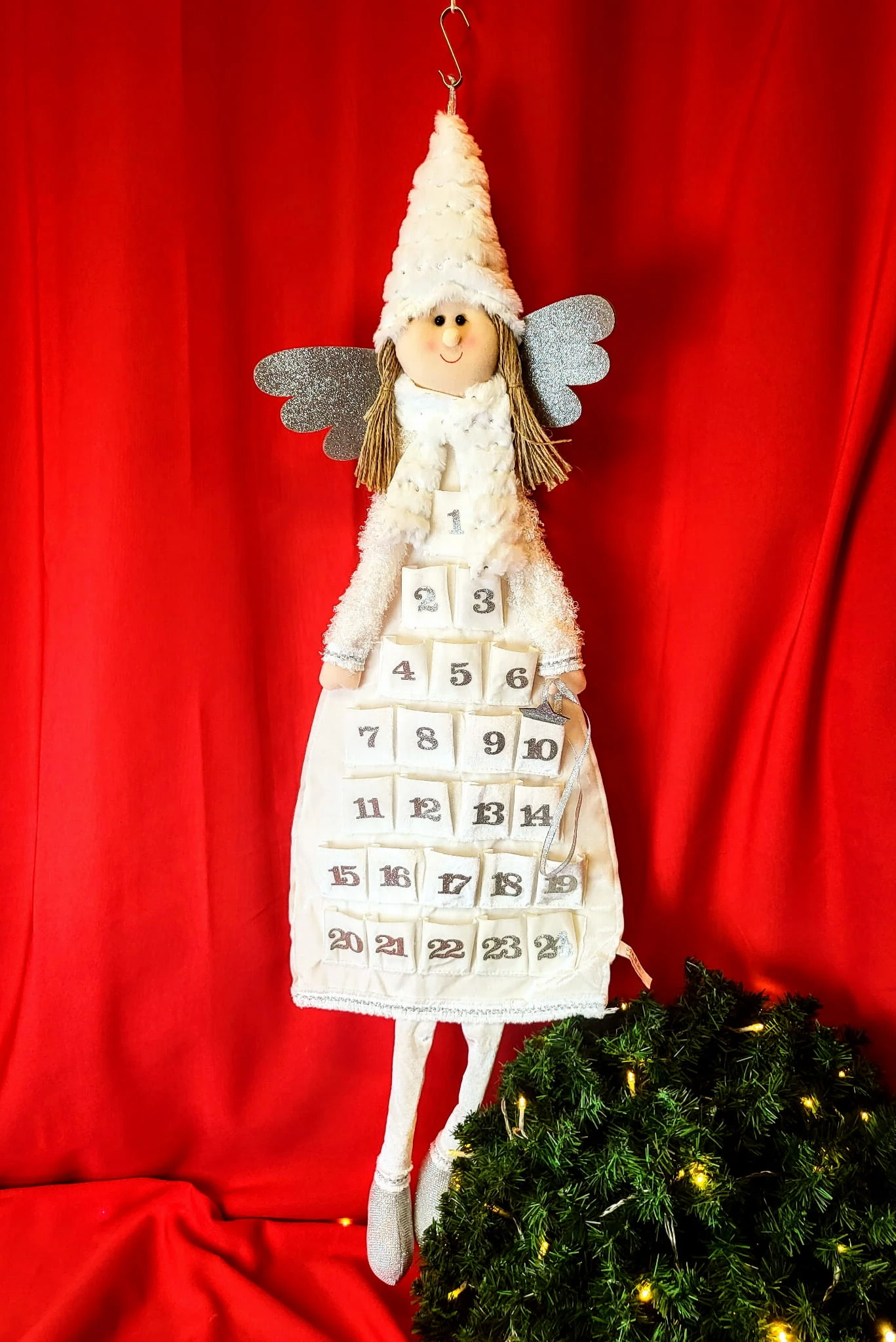 TEKSTYLNY WISZĄCY KALENDARZ ADWENTOWY ANIOŁ 120CM