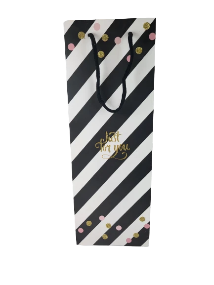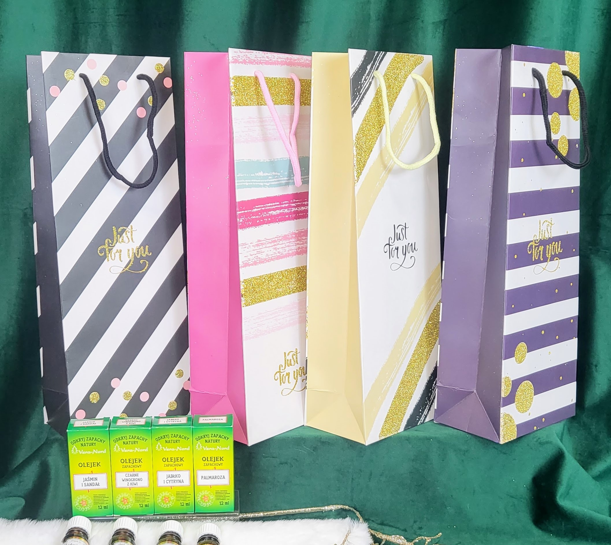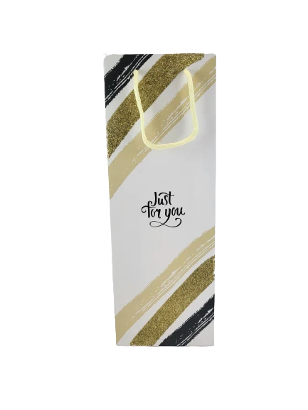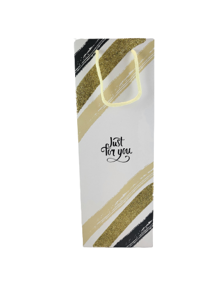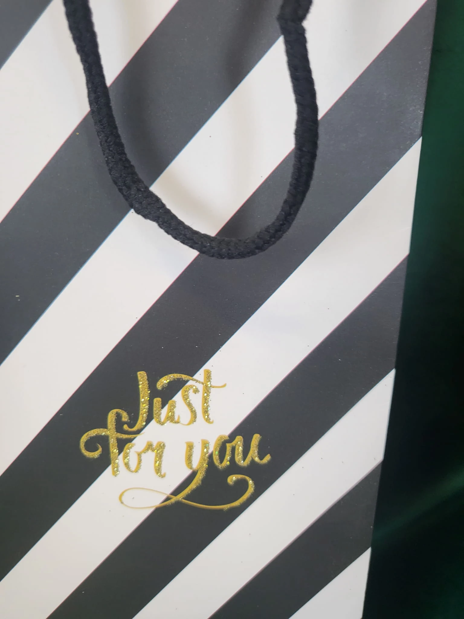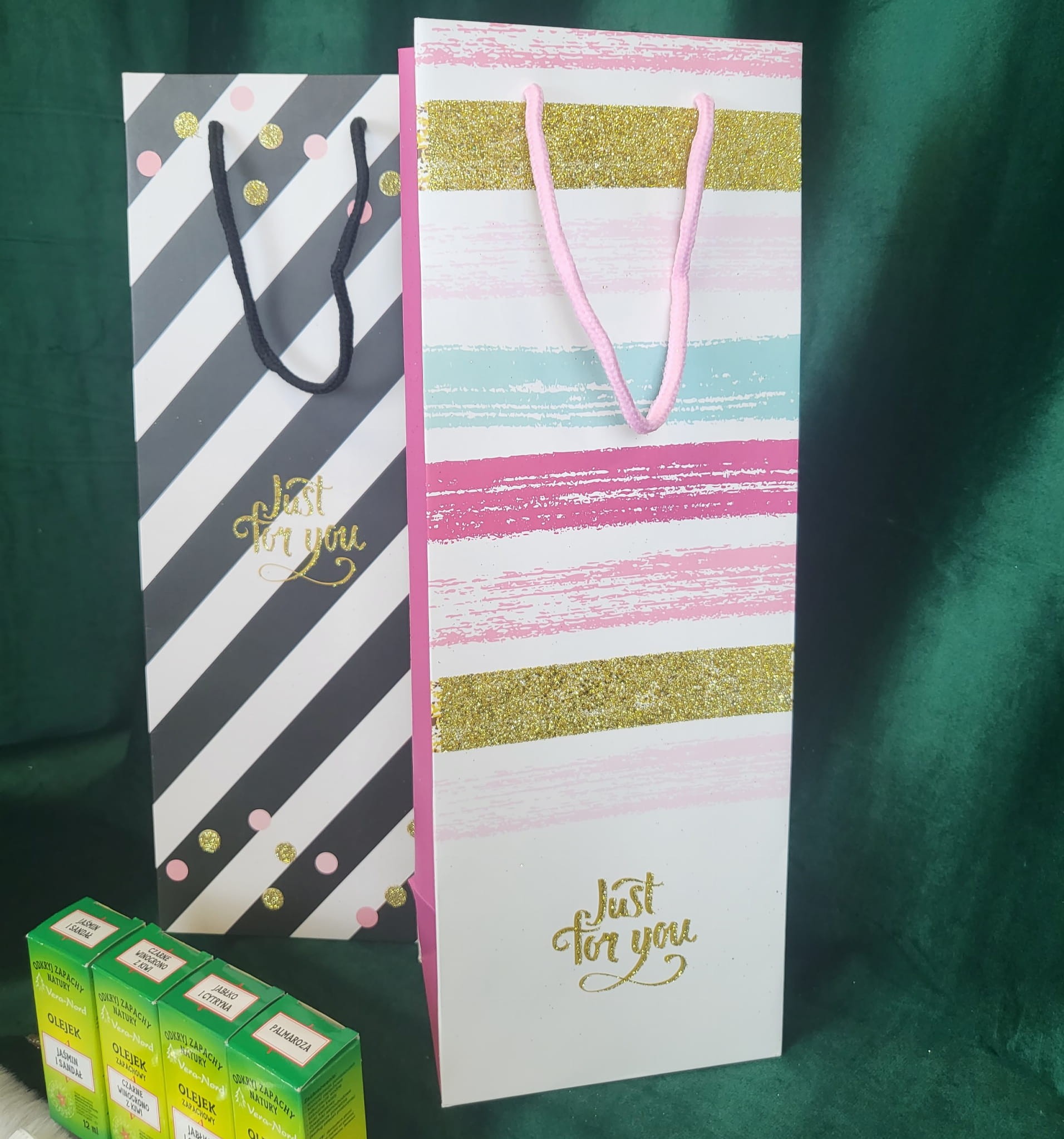 Elegancka torebka prezentowa zdobiona napisem FOR YOU. Nadruk dodatkowo pięknie odbija światło. Wykonana z wysokiej jakości, grubego papieru. Uchwyty wykonane są z dopasowanego kolorystycznie sznurka.