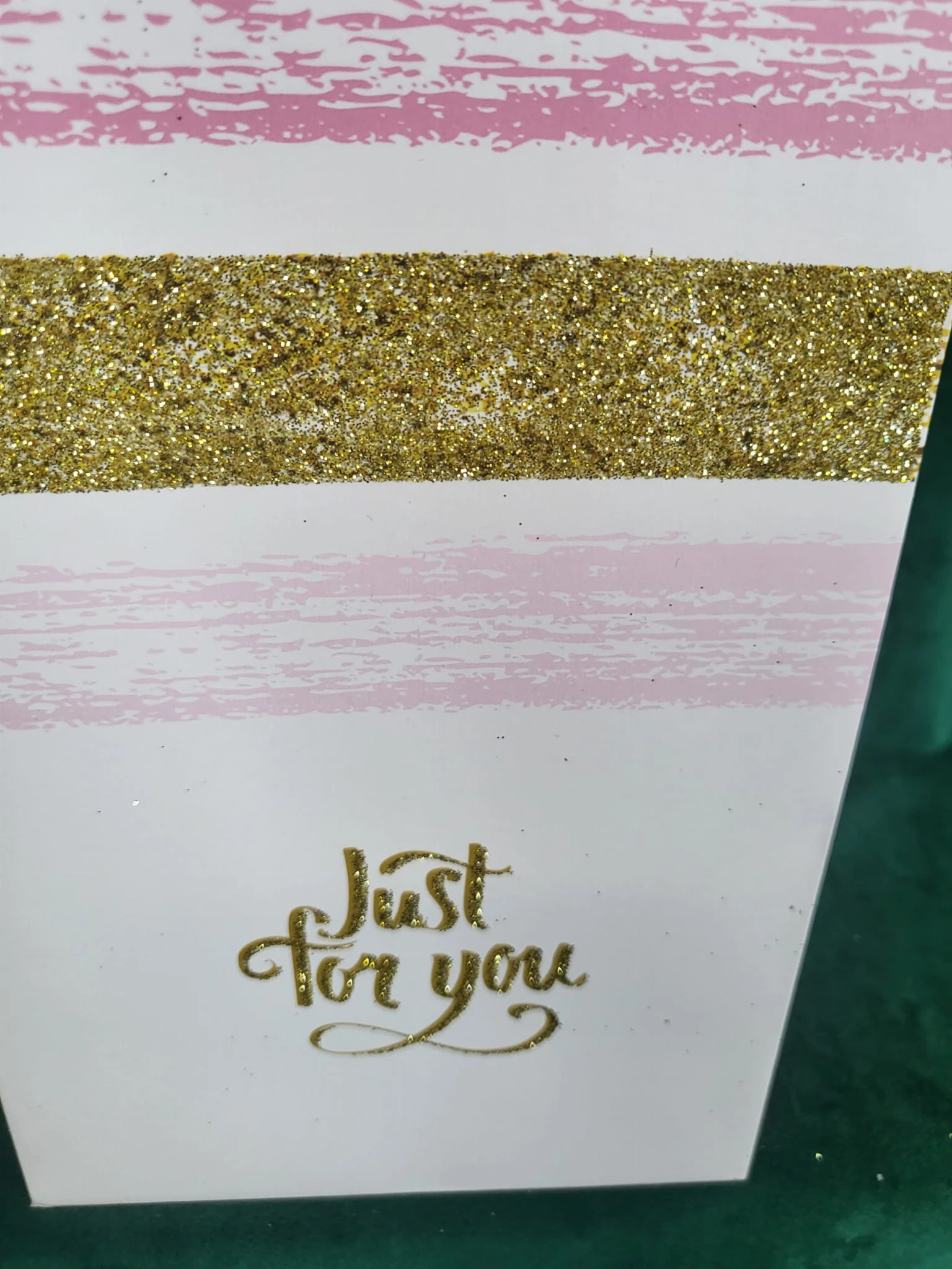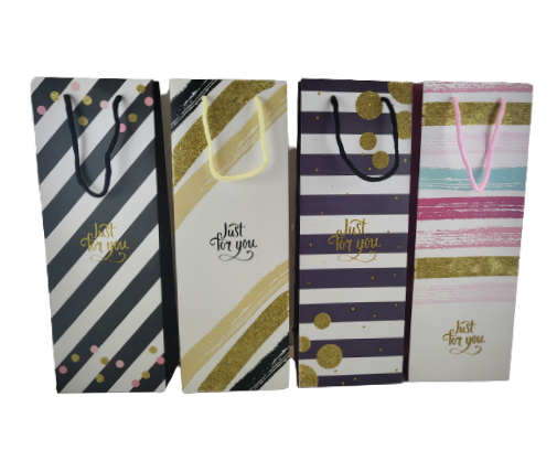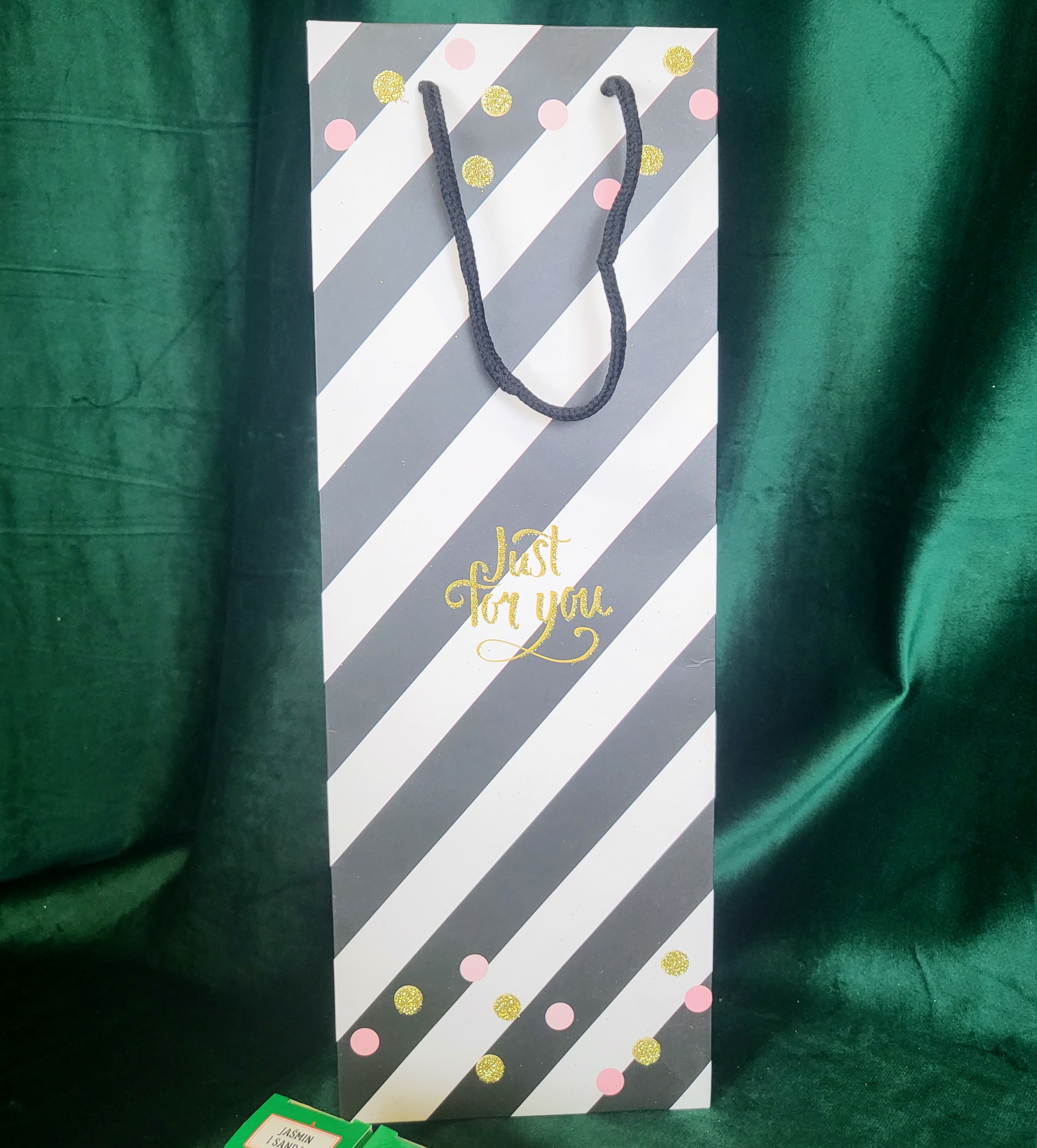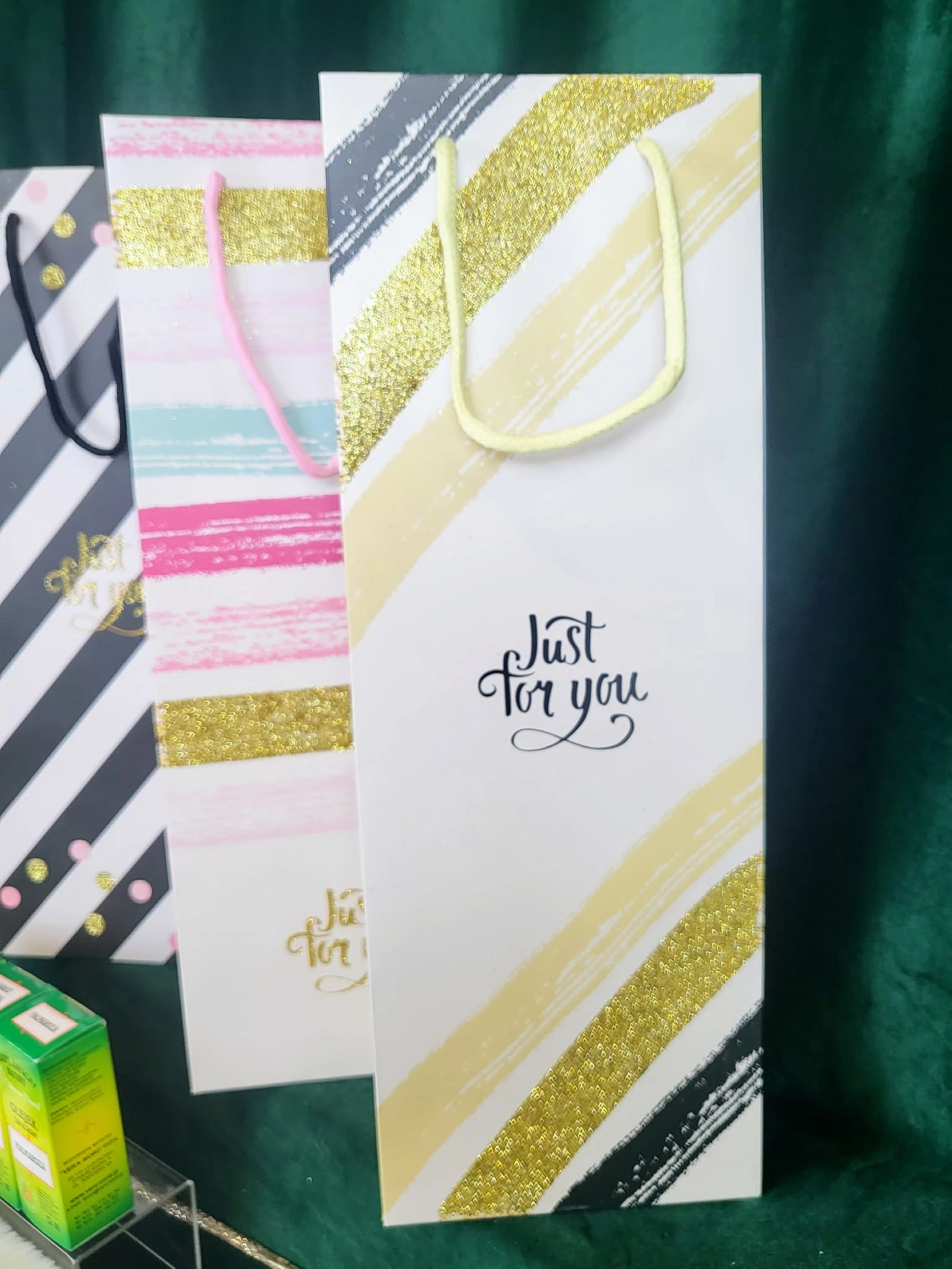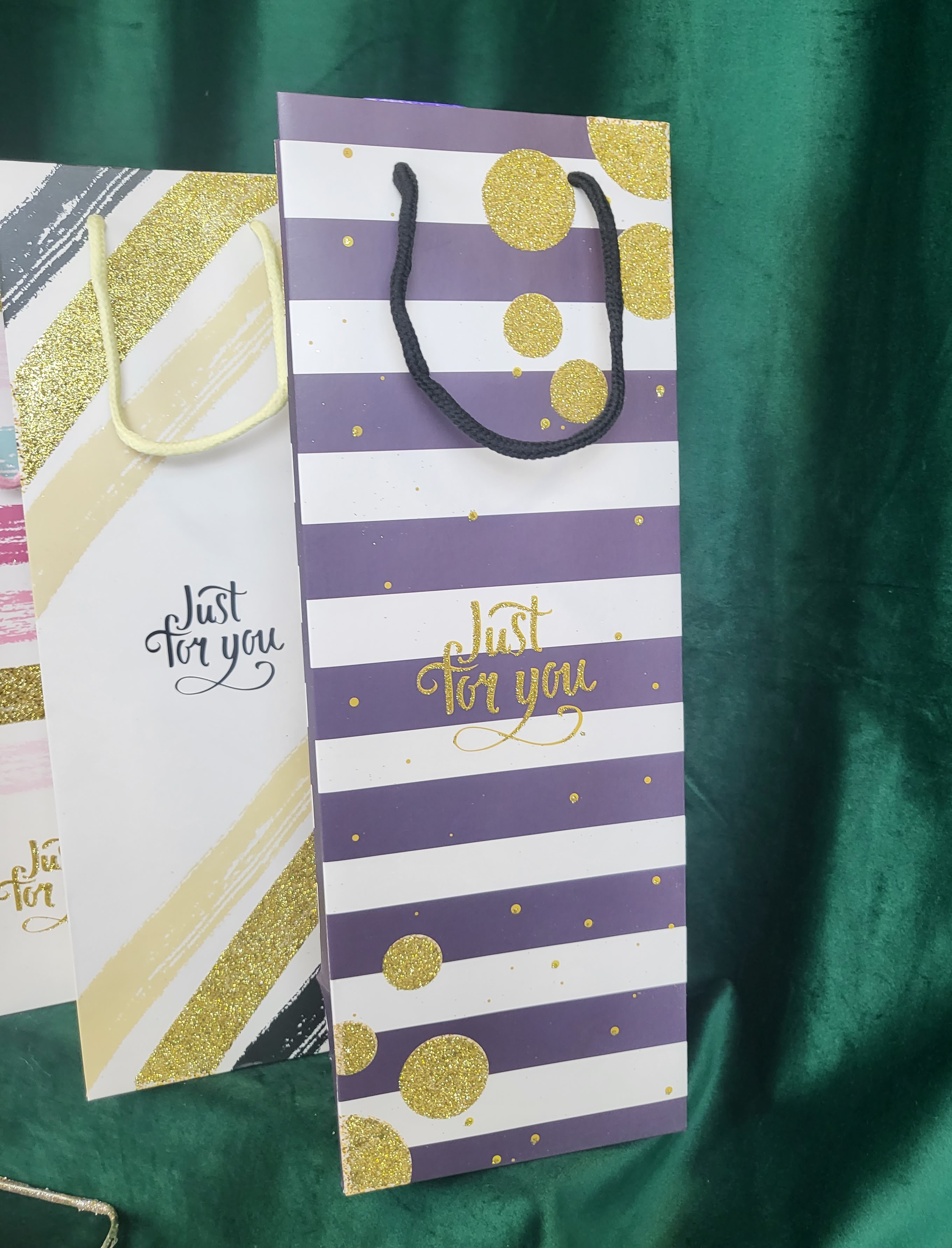 Elegancka torebka prezentowa zdobiona napisem FOR YOU. Nadruk dodatkowo pięknie odbija światło. Wykonana z wysokiej jakości, grubego papieru. Uchwyty wykonane są z dopasowanego kolorystycznie sznurka.