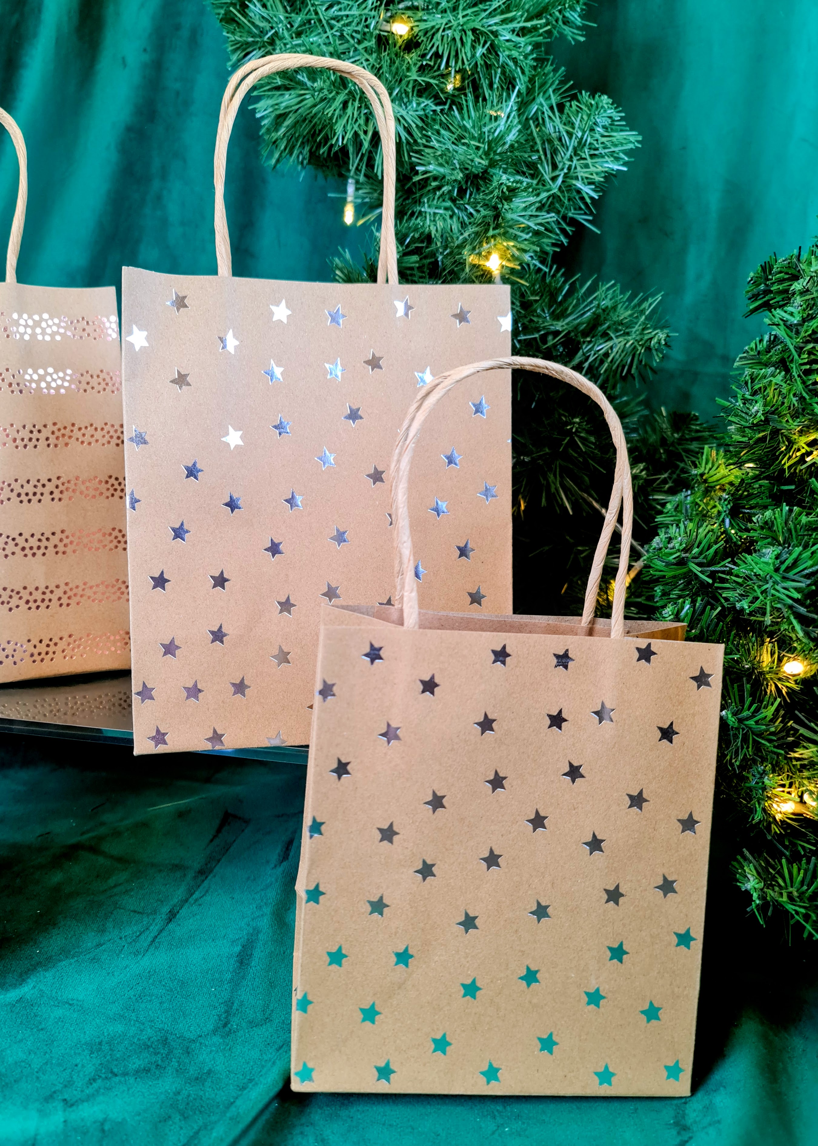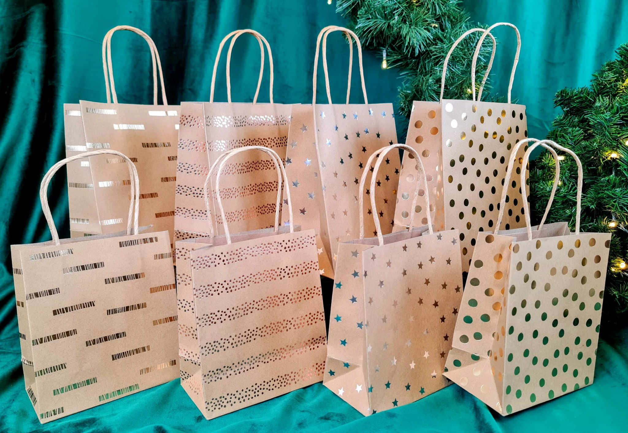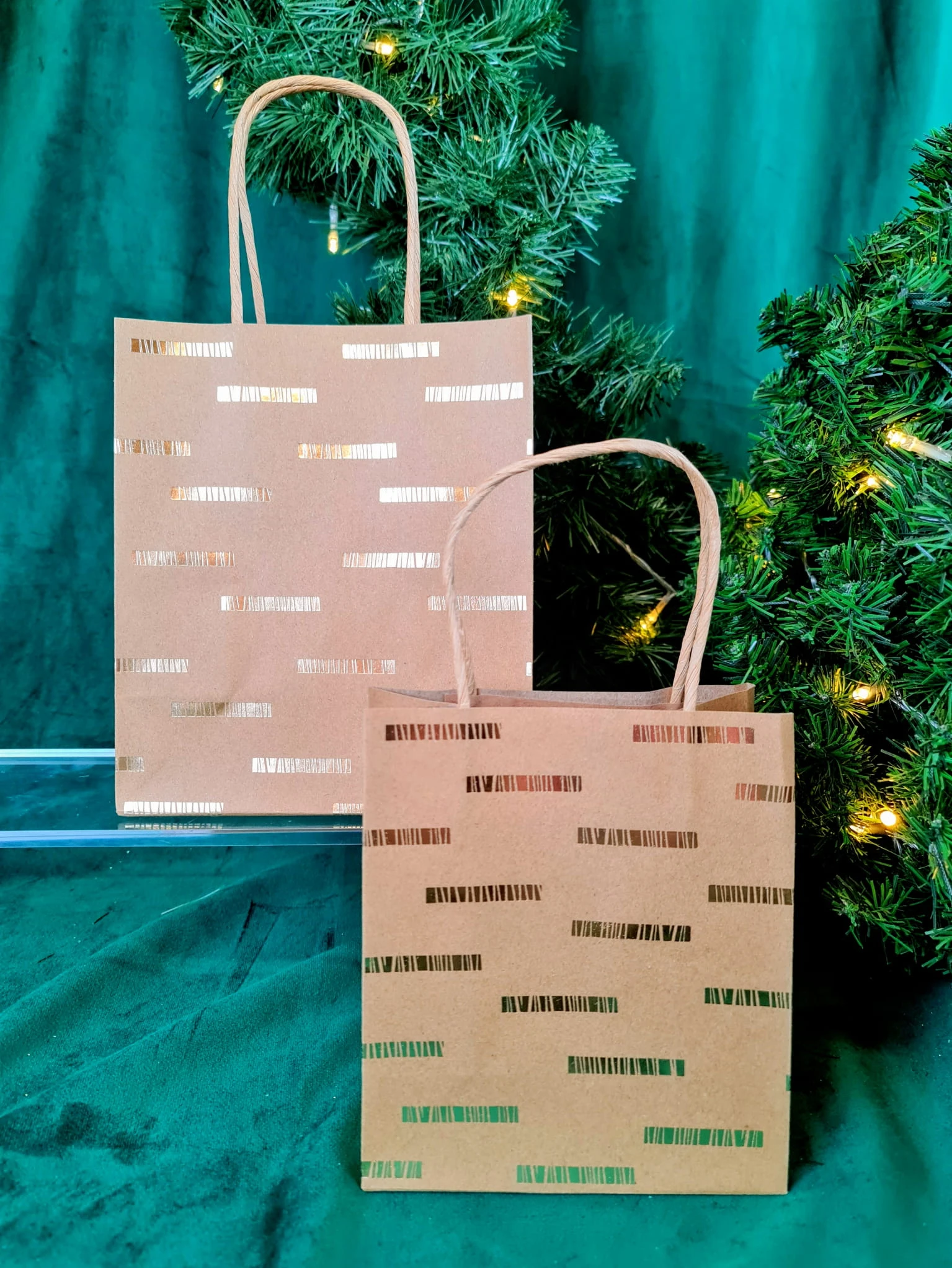 Elegancka torebka prezentowa zdobiona pięknymi świątecznymi wzorami. Nadruk dodatkowo pięknie odbija światło. Wykonana z wysokiej jakości, grubego papieru. Uchwyty wykonane są z dopasowanego kolorystycznie sznurka.
