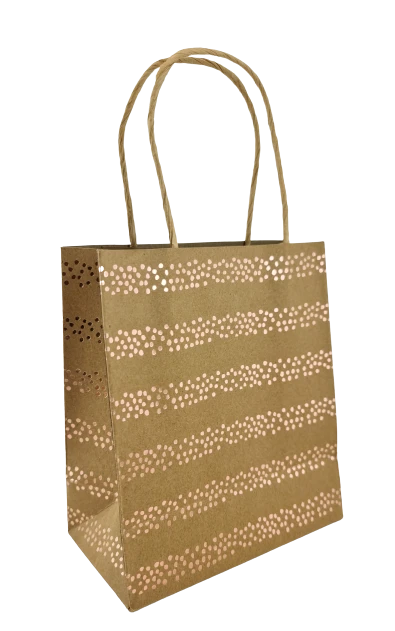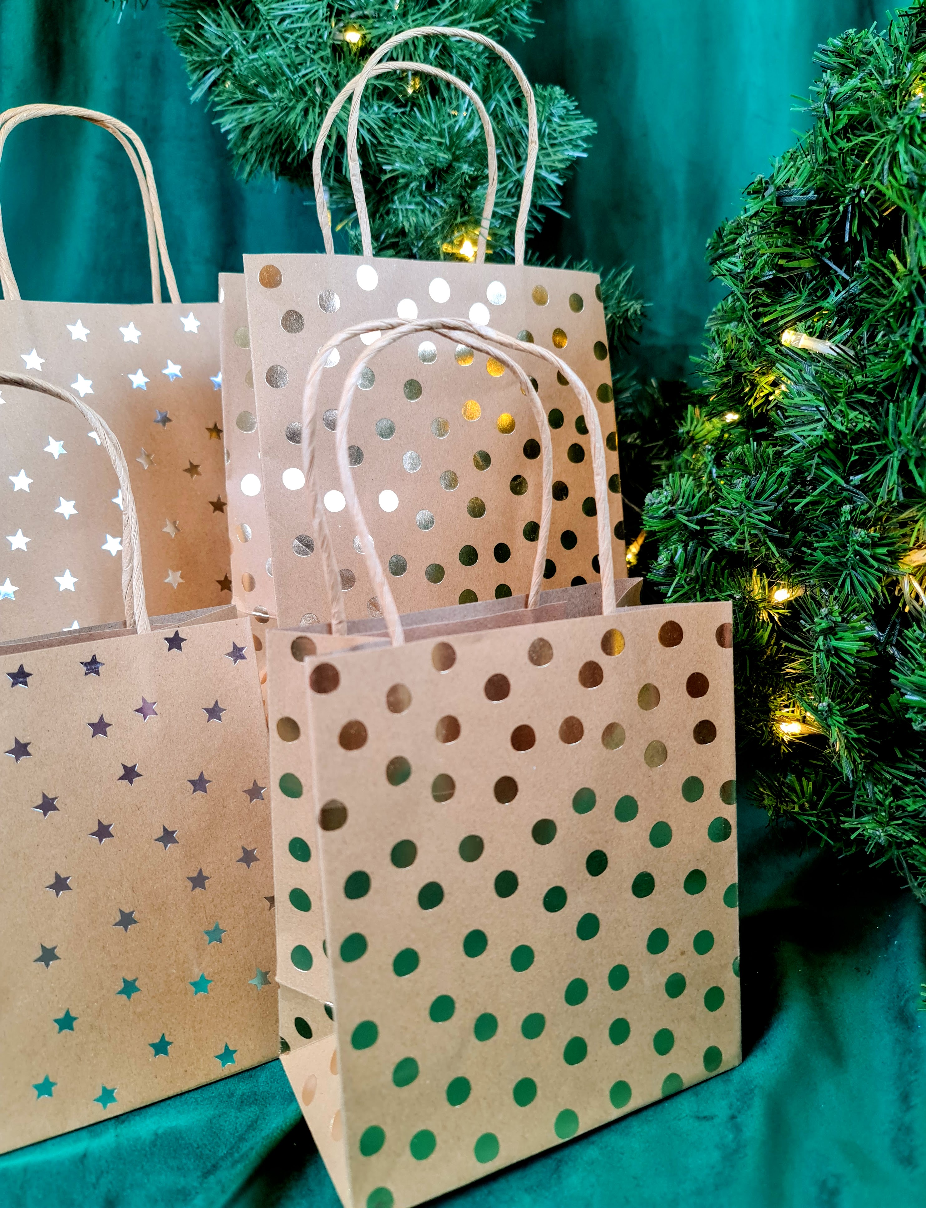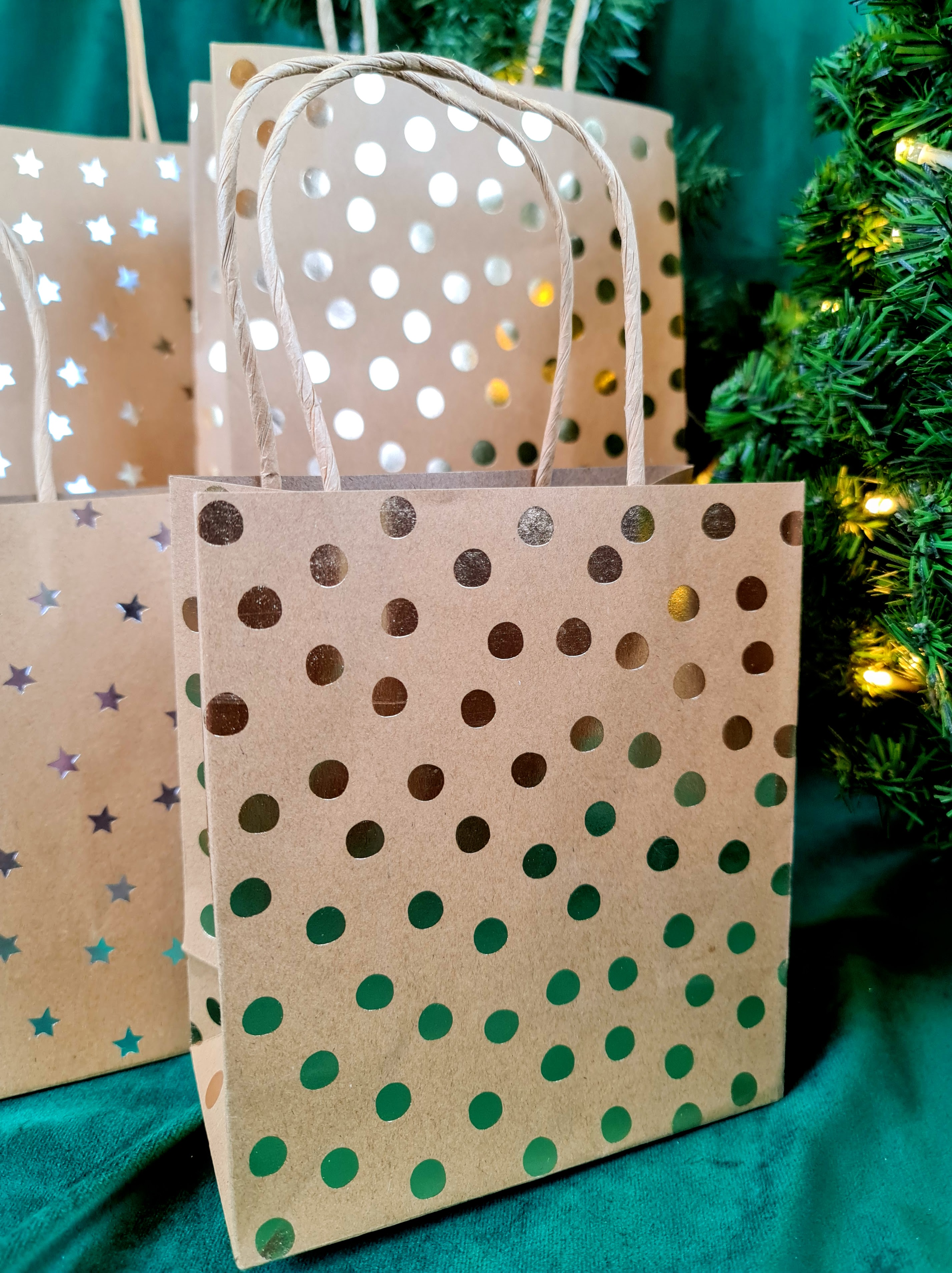 Elegancka torebka prezentowa zdobiona pięknymi świątecznymi wzorami. Nadruk dodatkowo pięknie odbija światło. Wykonana z wysokiej jakości, grubego papieru. Uchwyty wykonane są z dopasowanego kolorystycznie sznurka.