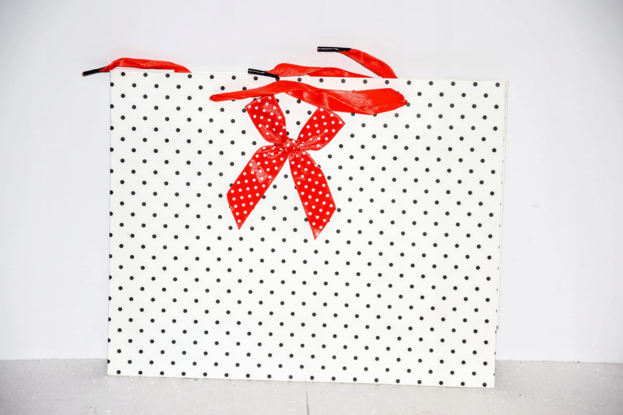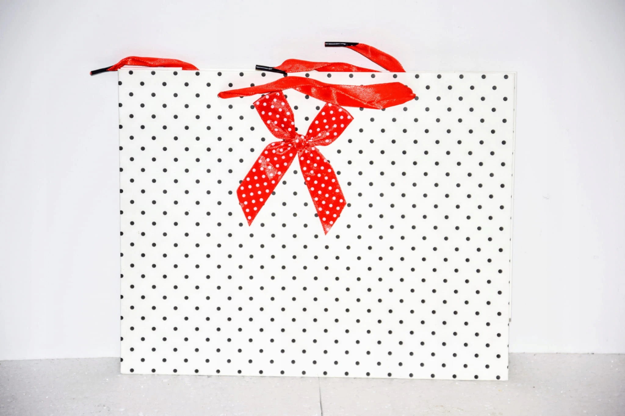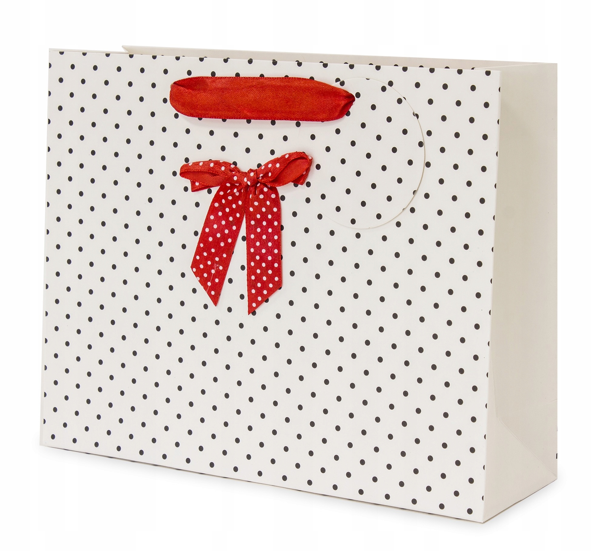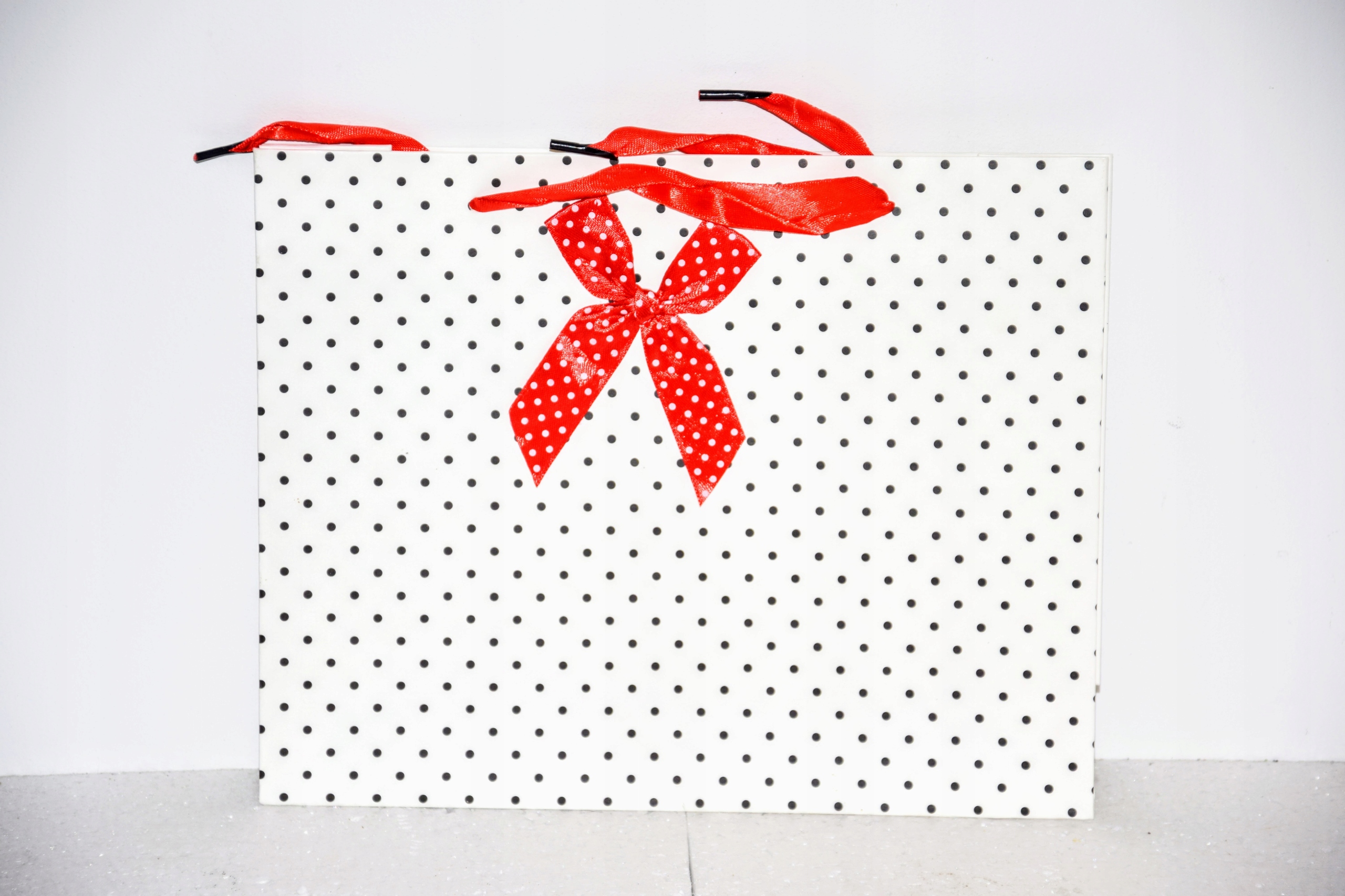 Elegancka torebka prezentowa wykonana z wysokiej jakości papieru. Uchwyty wykonane są z dopasowanej kolorystycznie wstążki.
