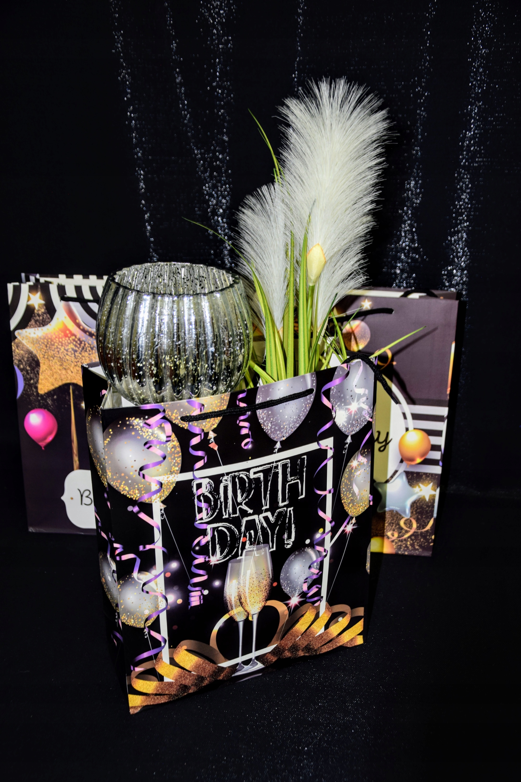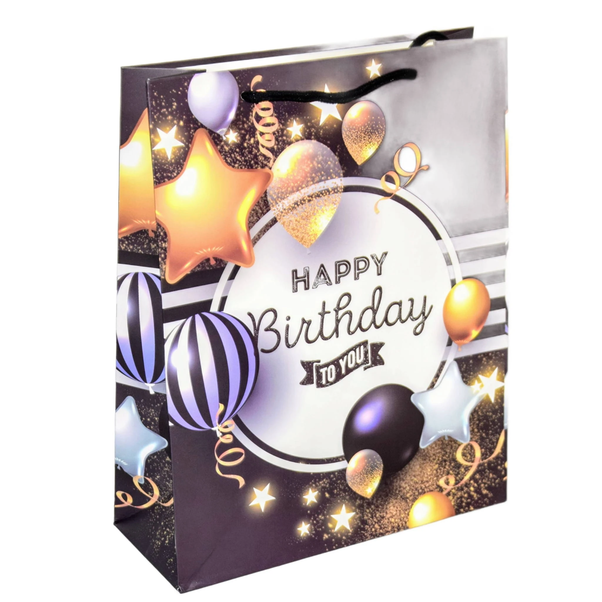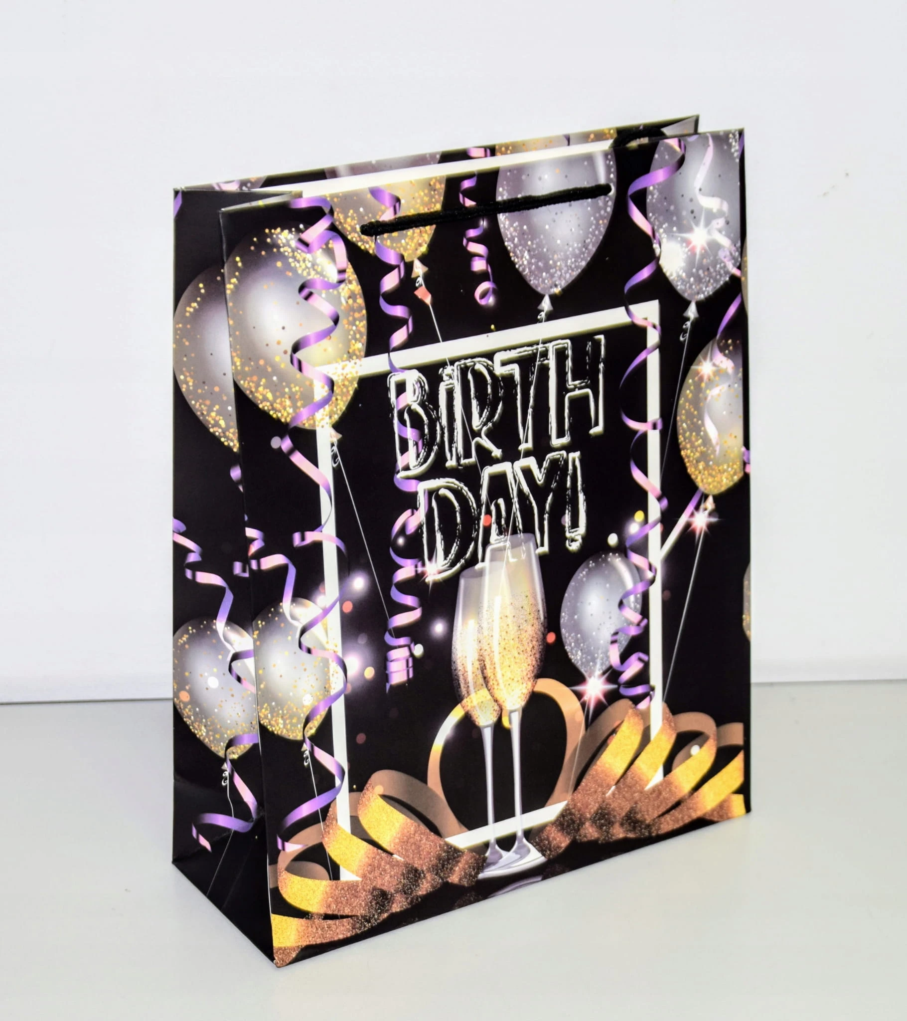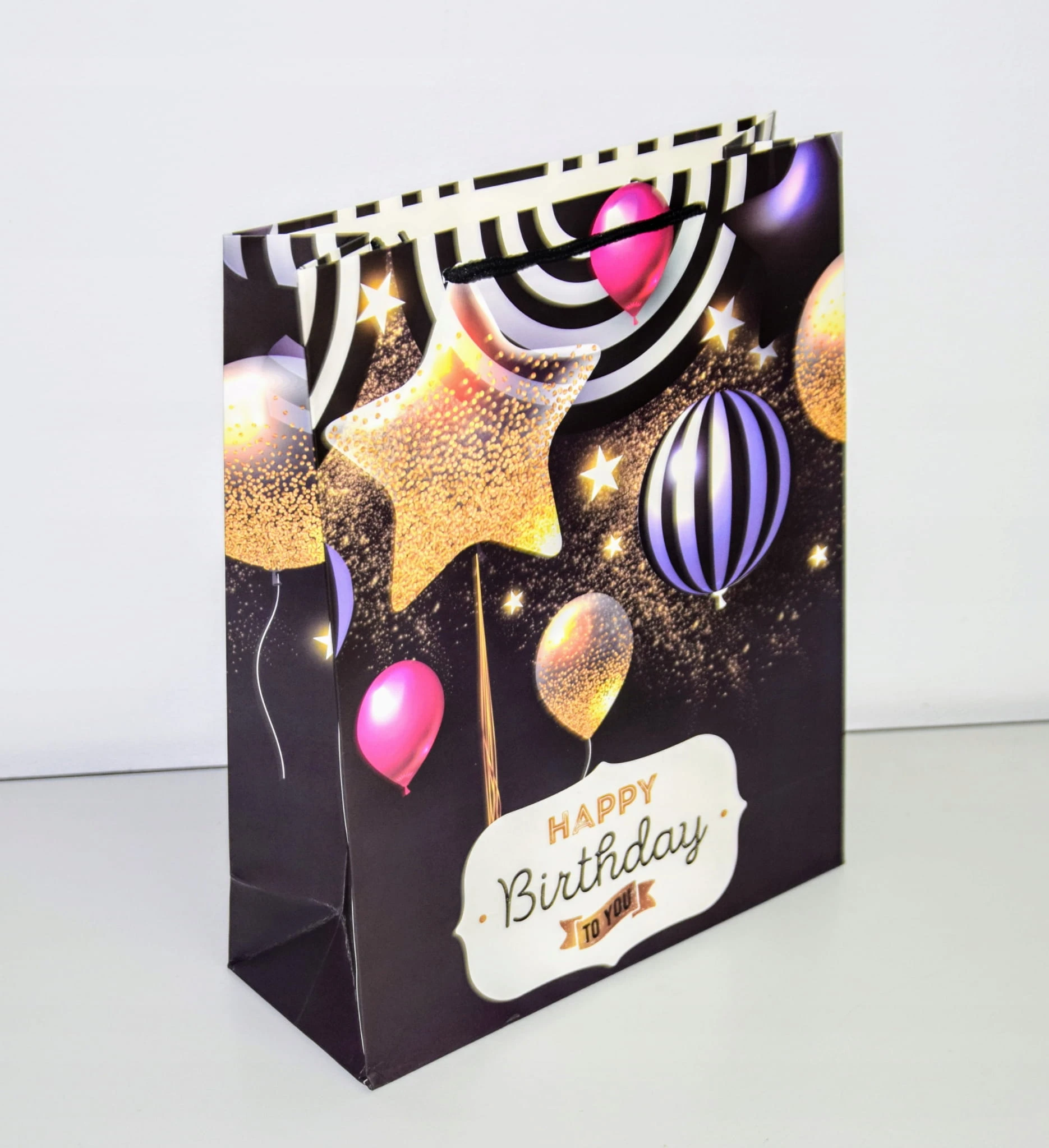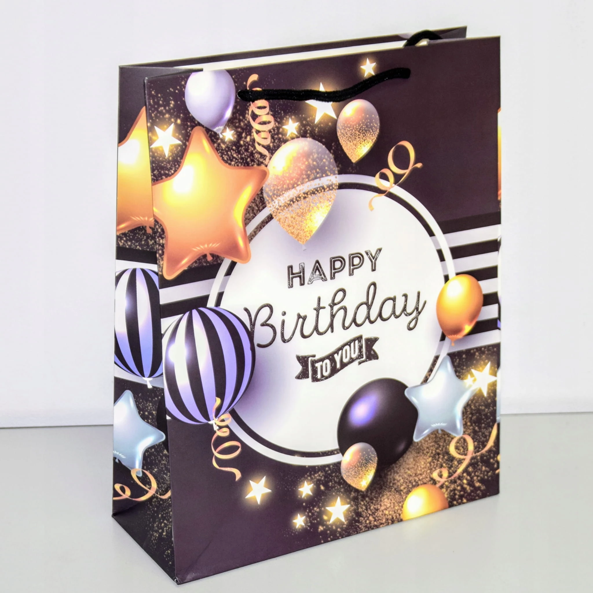 Elegancka torebka prezentowa wykonana z wysokiej jakości papieru. Uchwyty wykonane są z plecionego, czarnego sznurka.