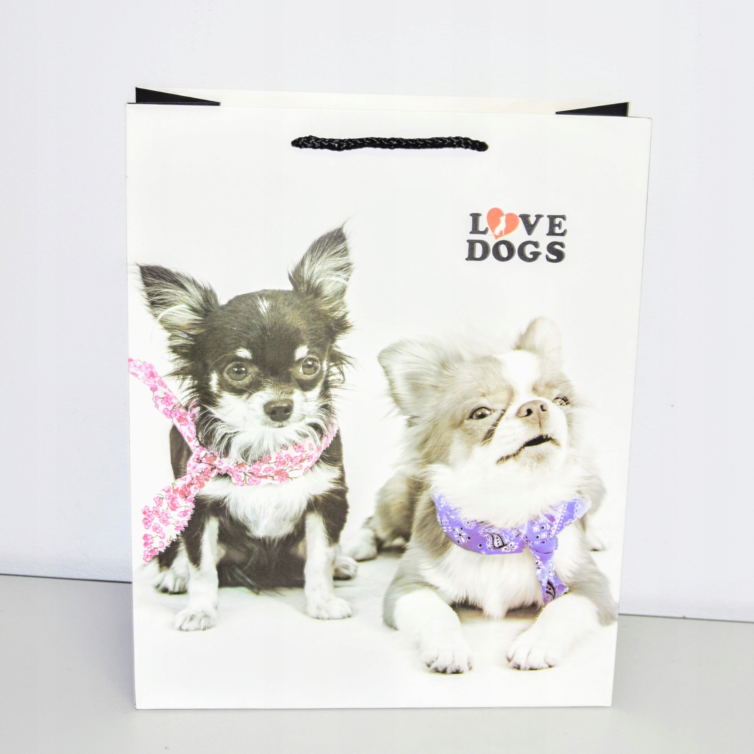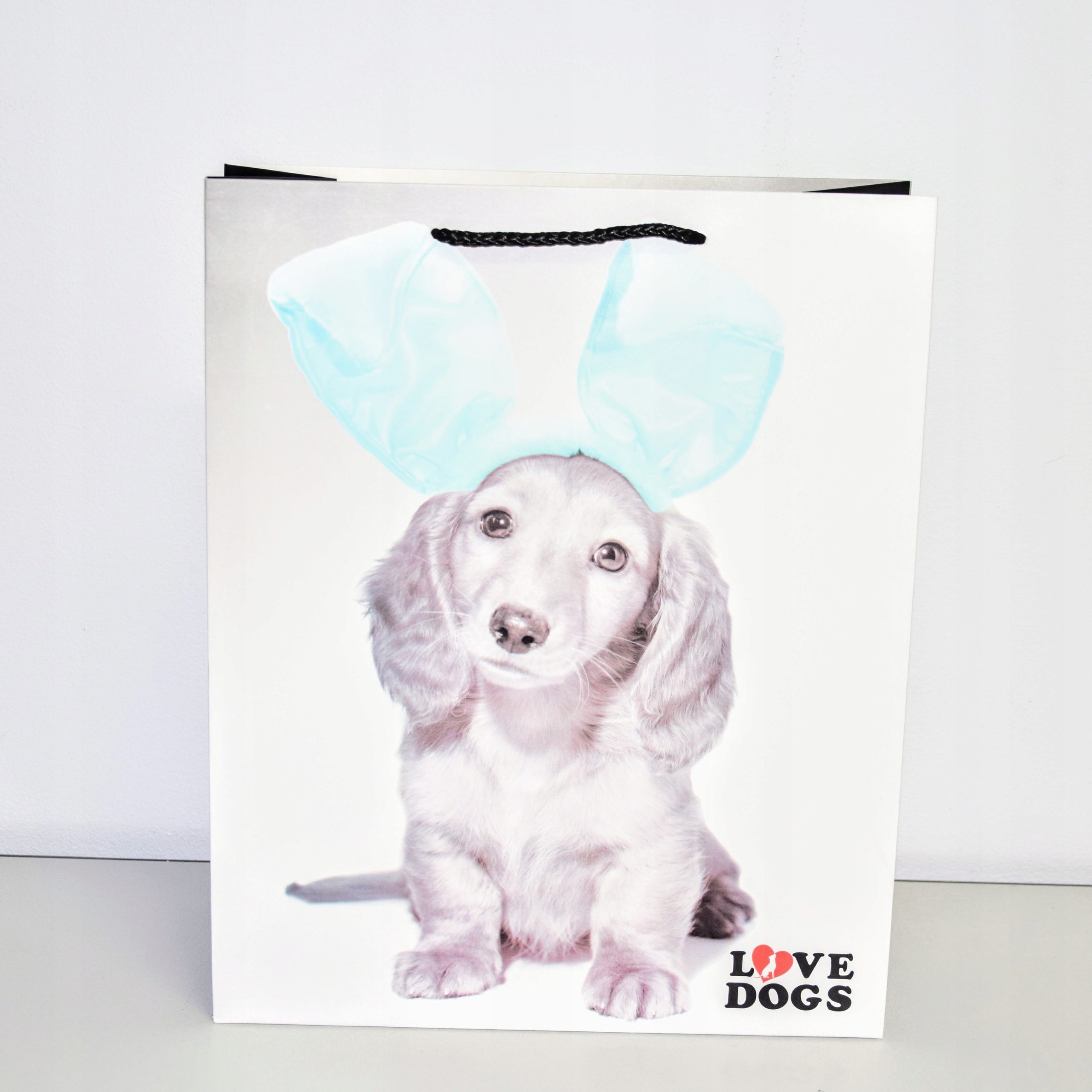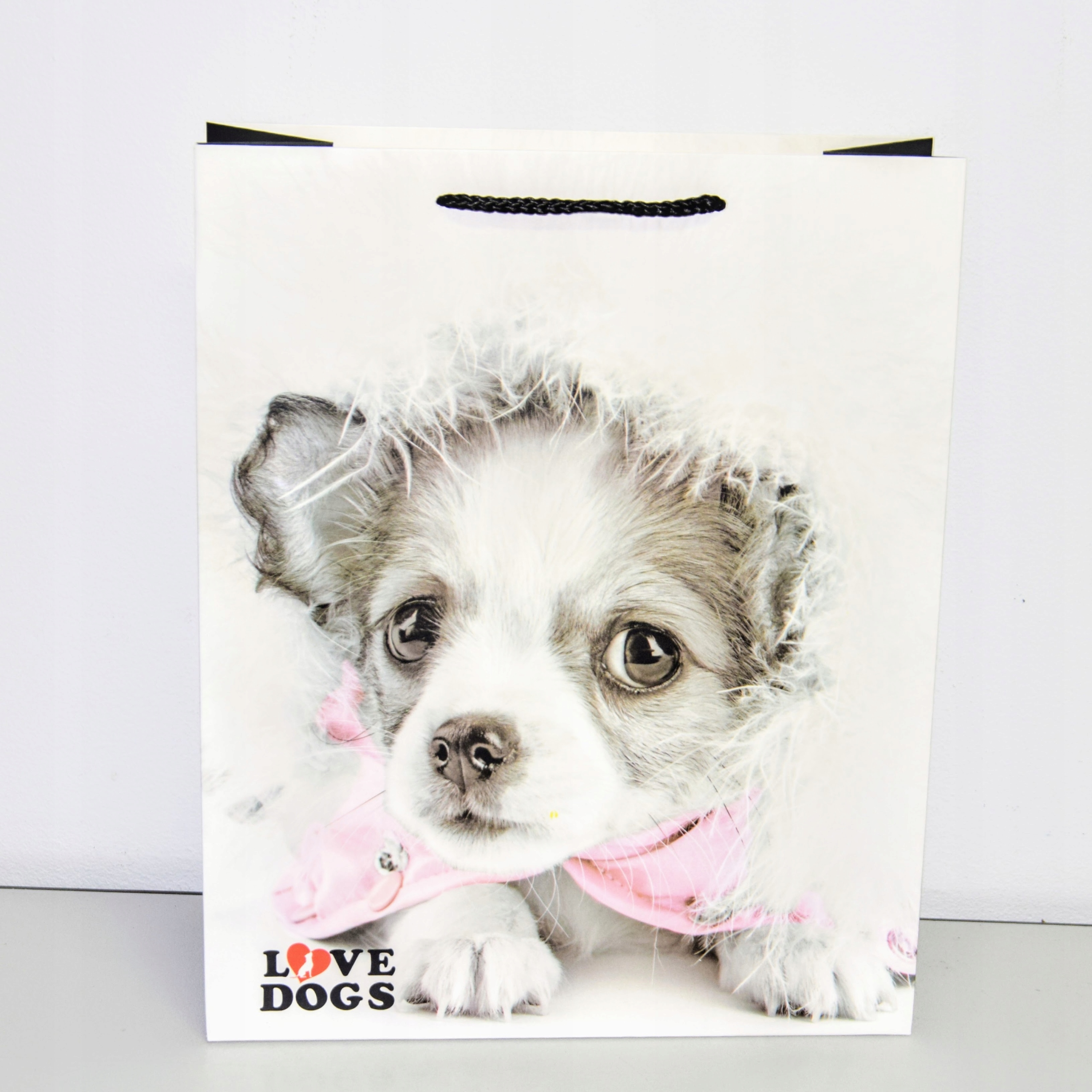 Elegancka torebka prezentowa wykonana z wysokiej jakości papieru. Uchwyty wykonane są z czarnego, plecionego sznurka.