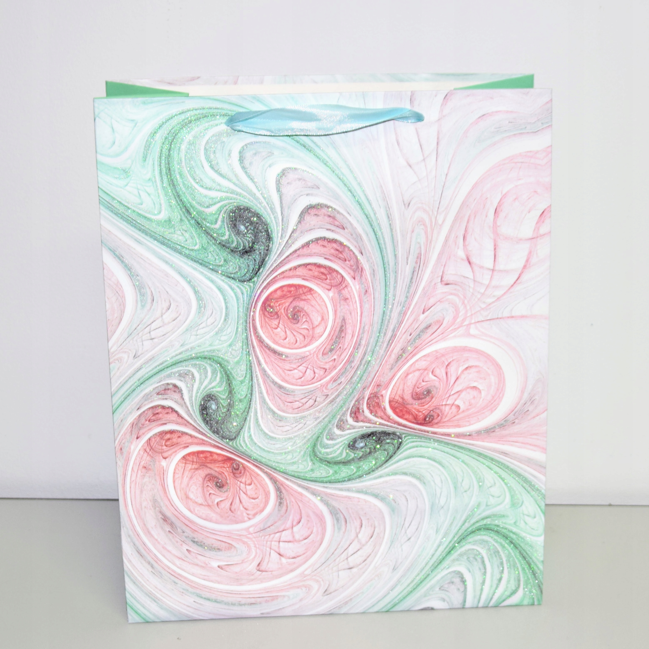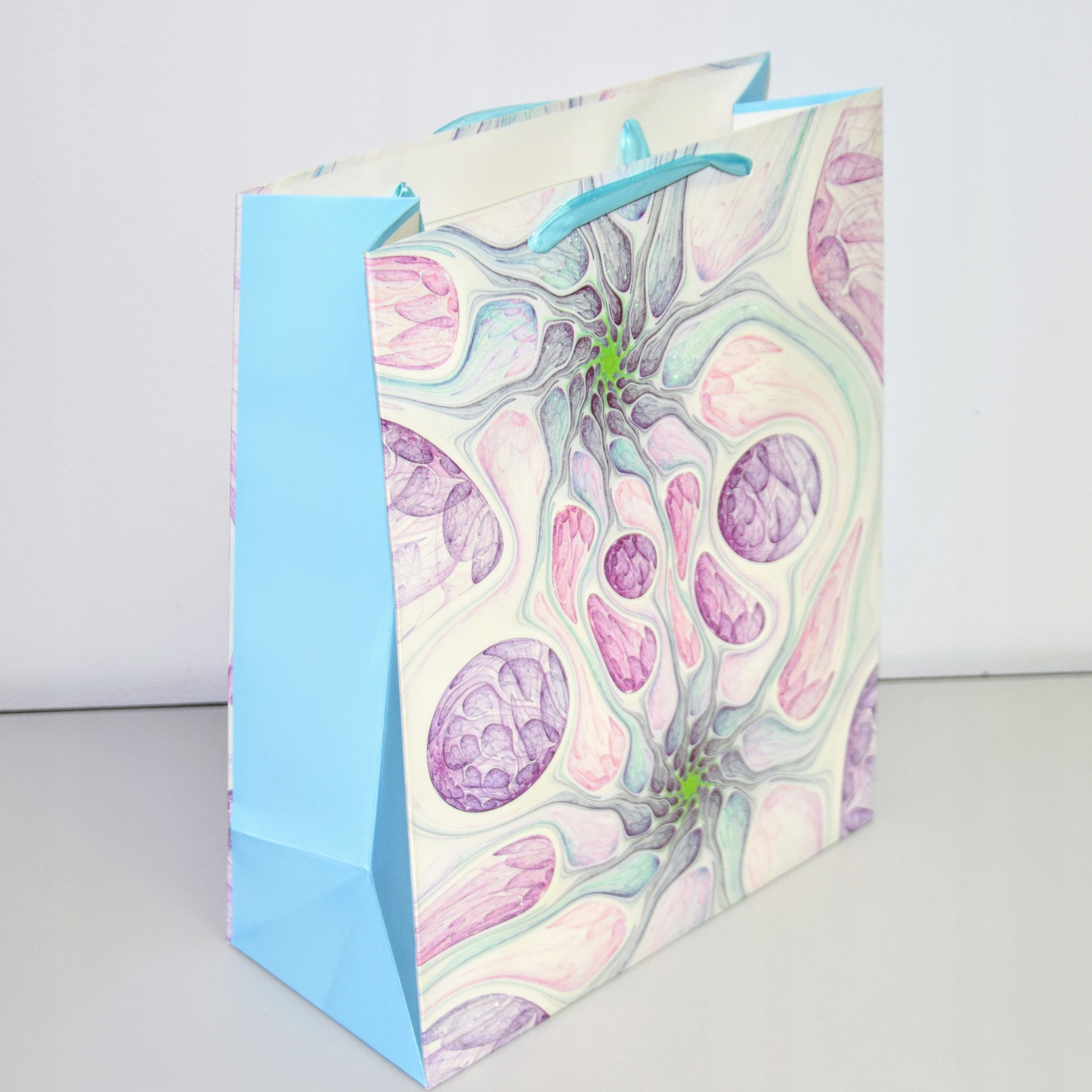 Elegancka torebka prezentowa wykonana z wysokiej jakości papieru. Uchwyty wykonane są z dopasowanej kolorystycznie wstążki.