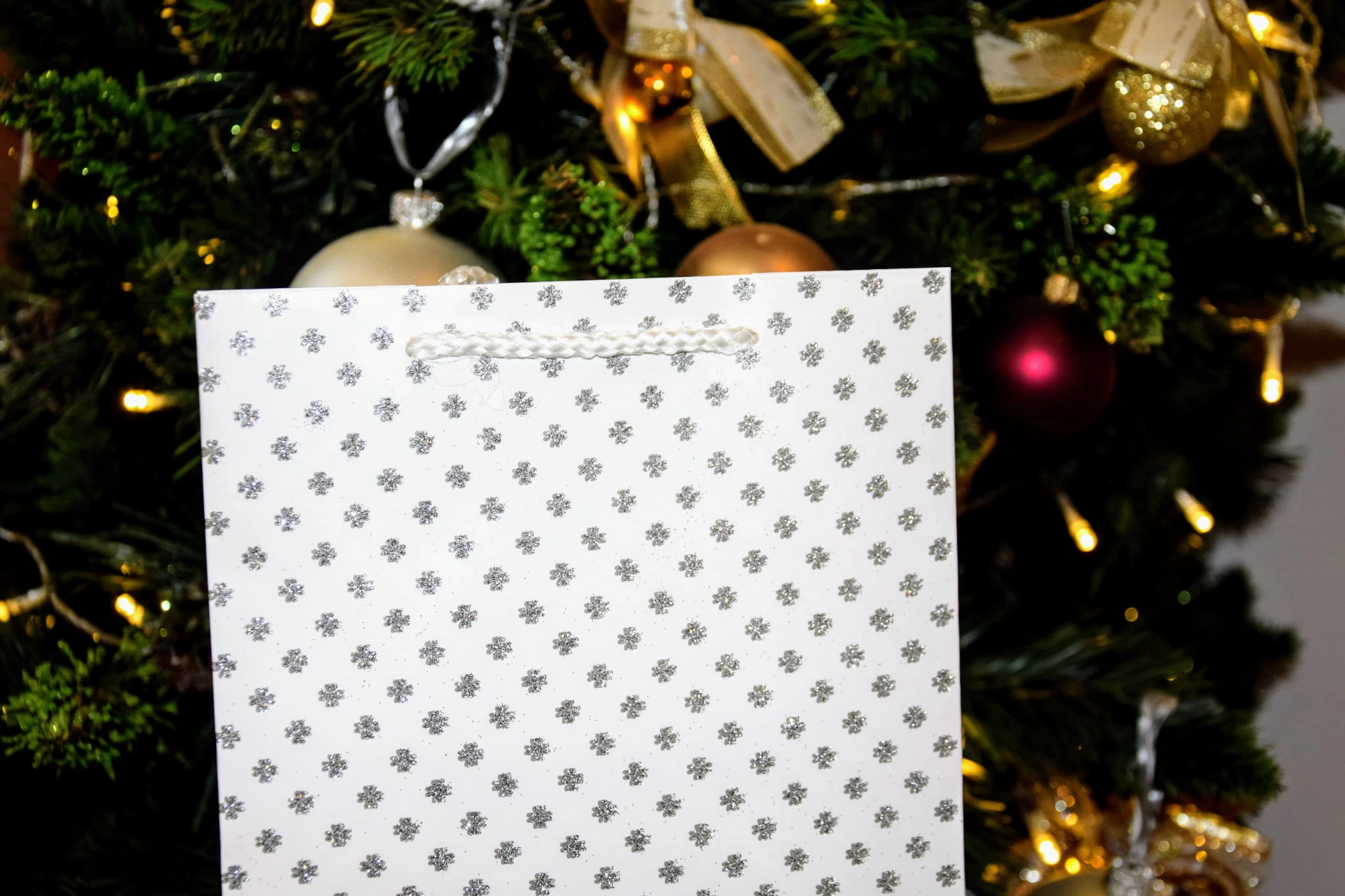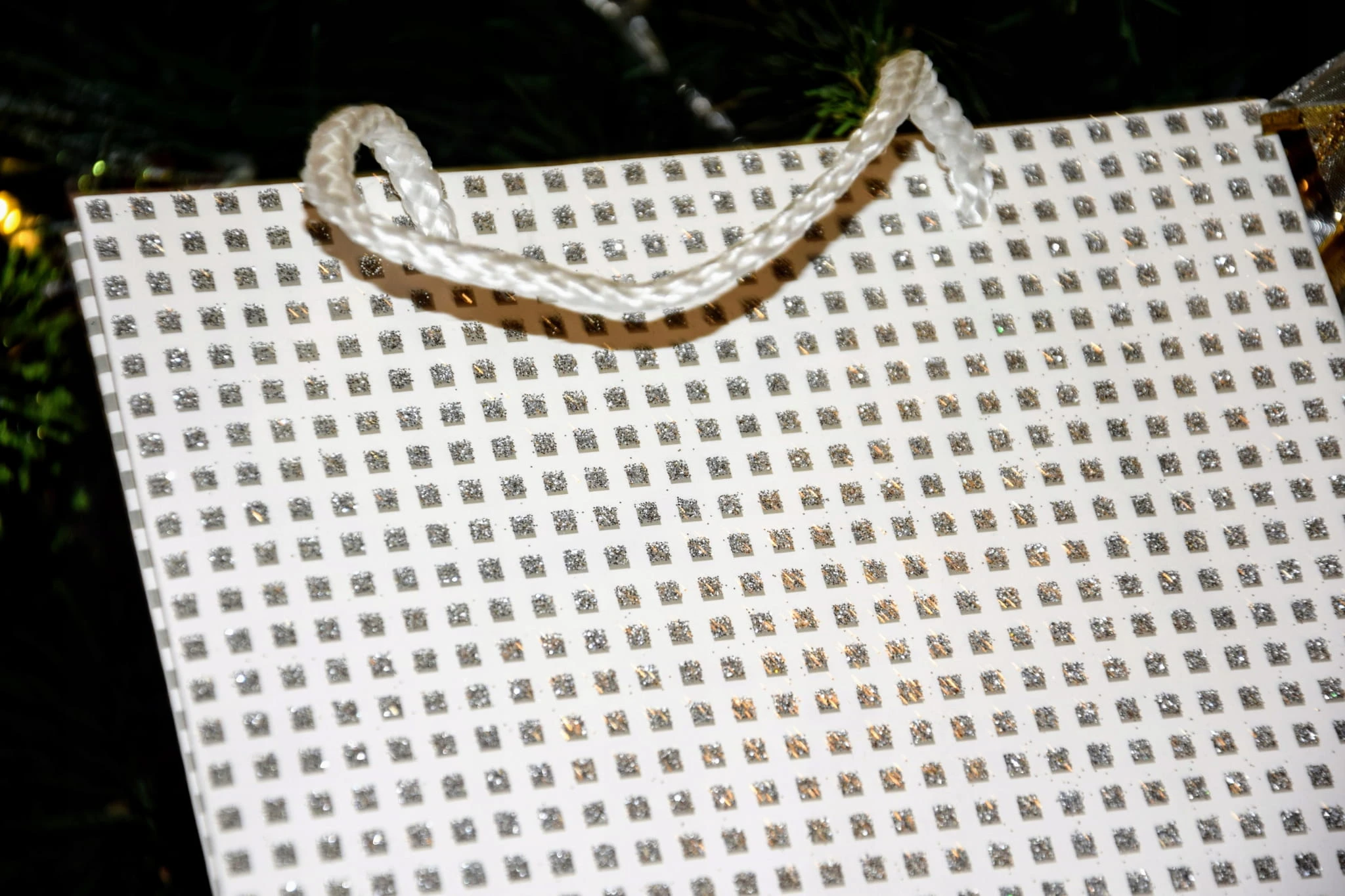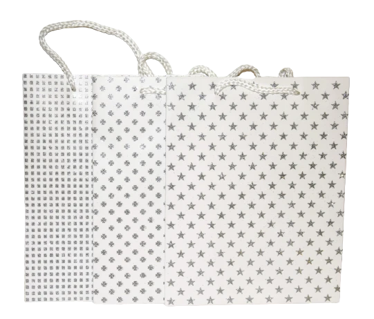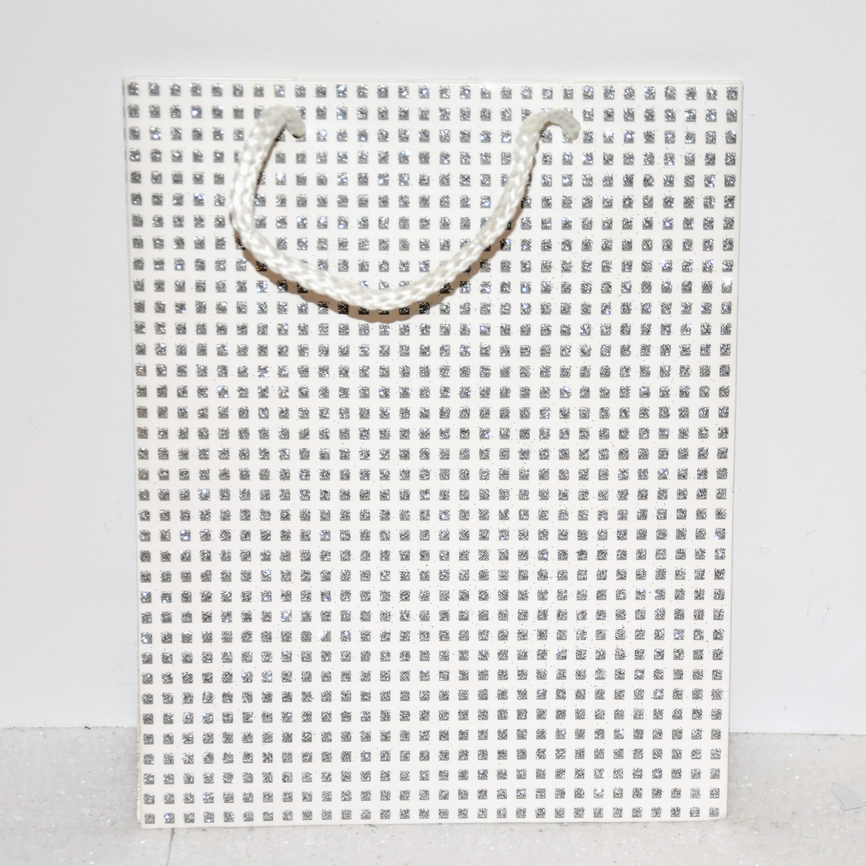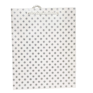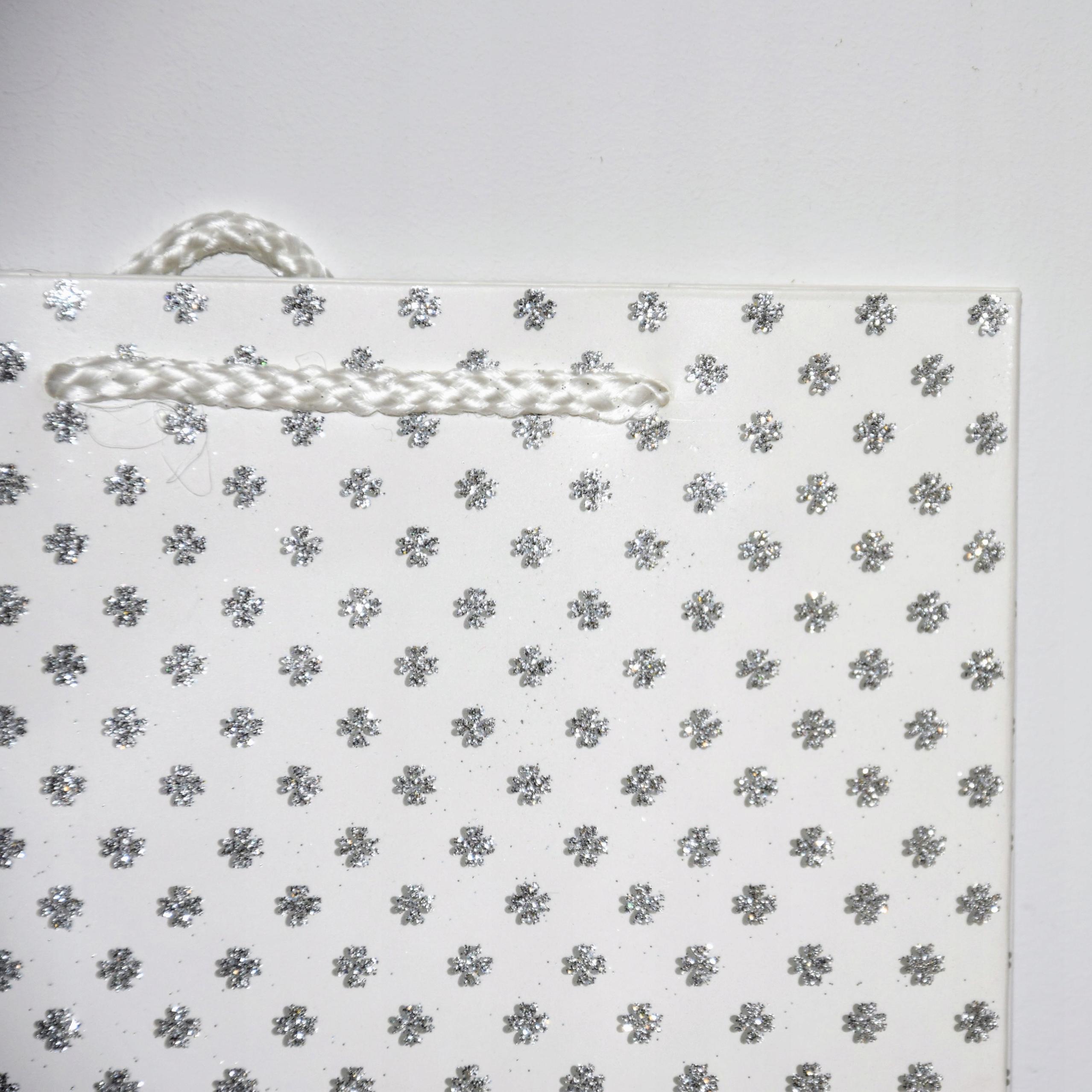 TOREBKA UPOMINKOWA BIAŁO-SREBRNA-BROKAT 42X32X12 CM 3 WZORY