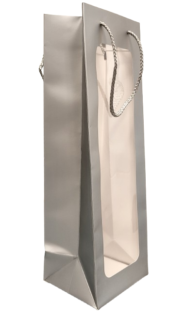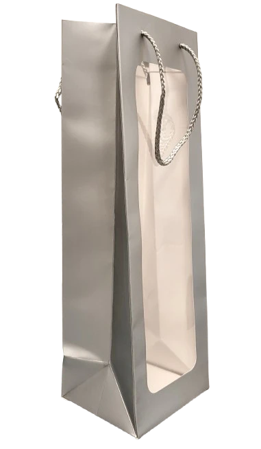 TOREBKA UPOMINKOWA NA WINO Z OKIENKIEM SREBRNA
