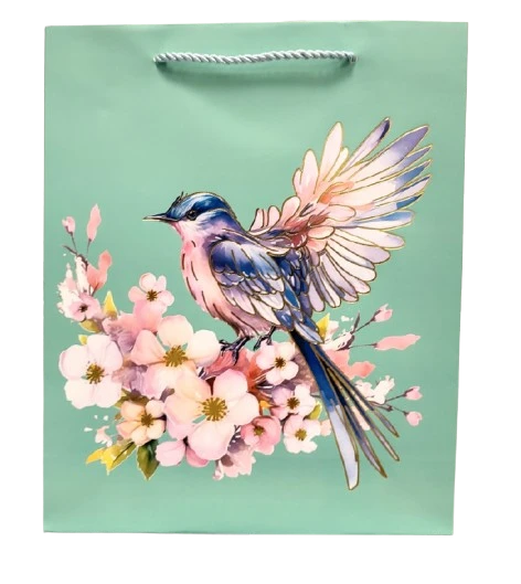 TOREBKA UPOMINKOWA NIEBIESKA Z PTAKIEM