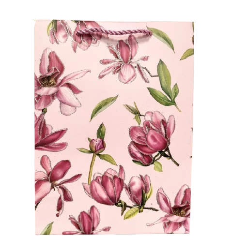 TOREBKA UPOMINKOWA RÓŻOWA W KWIATY S