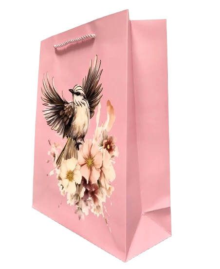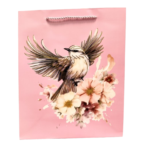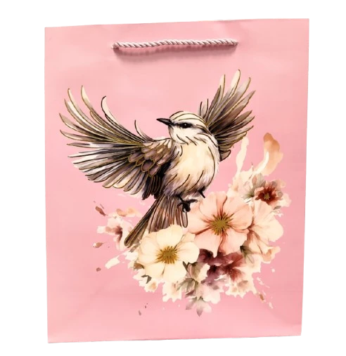 TOREBKA UPOMINKOWA RÓŻOWA Z PTAKIEM