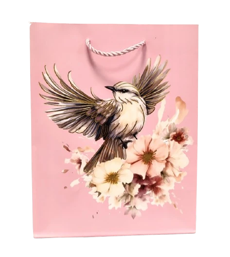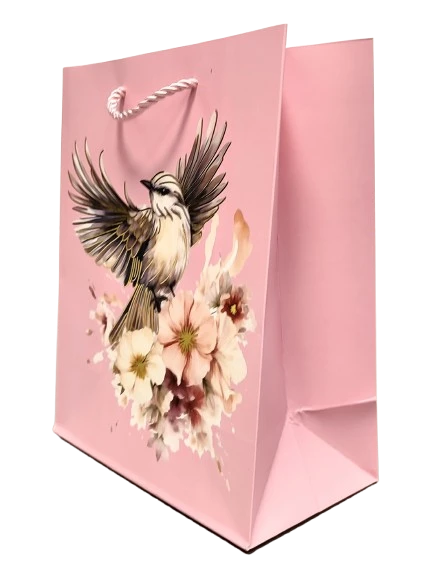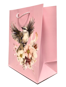 TOREBKA UPOMINKOWA RÓŻOWA Z PTAKIEM