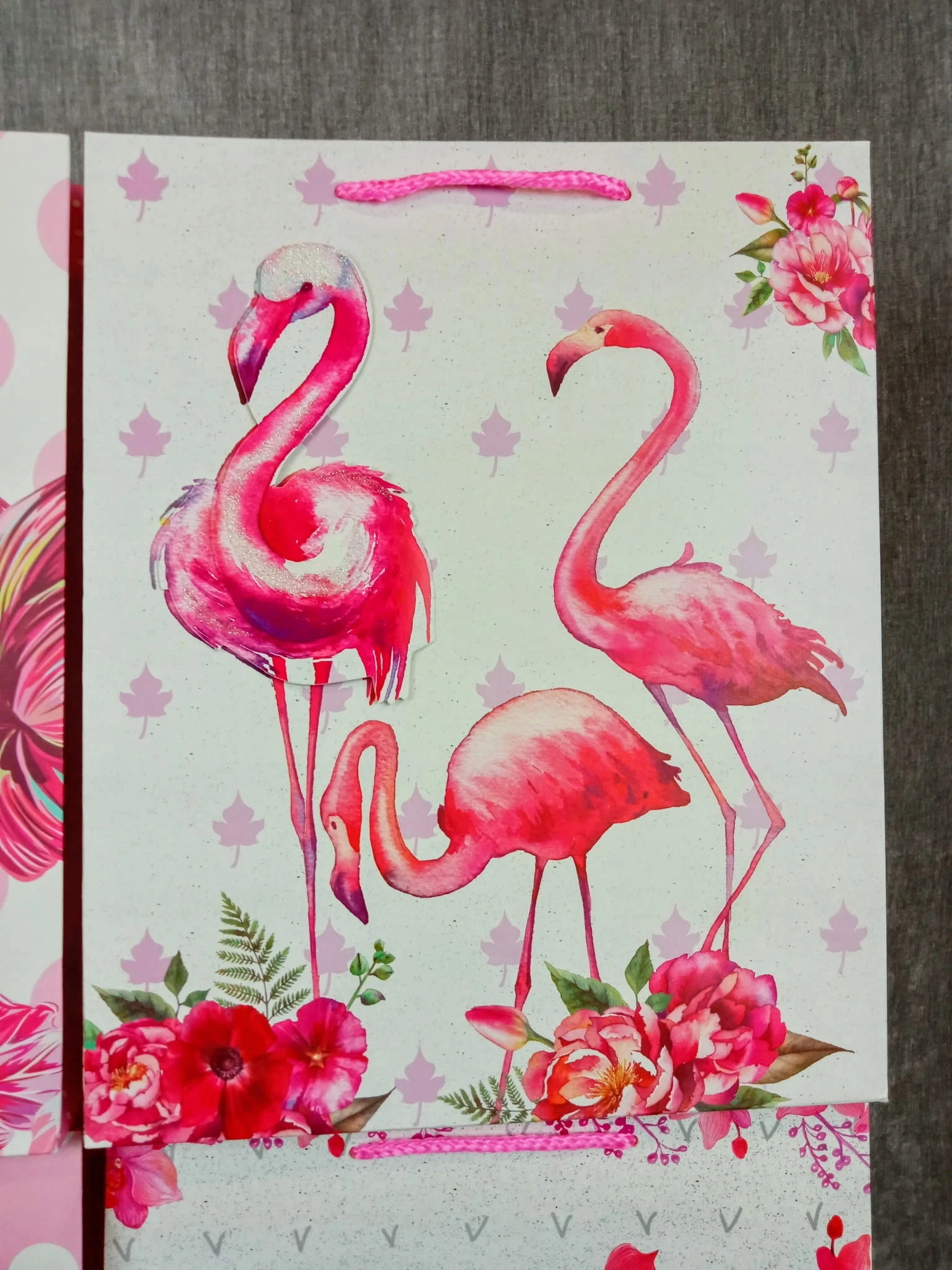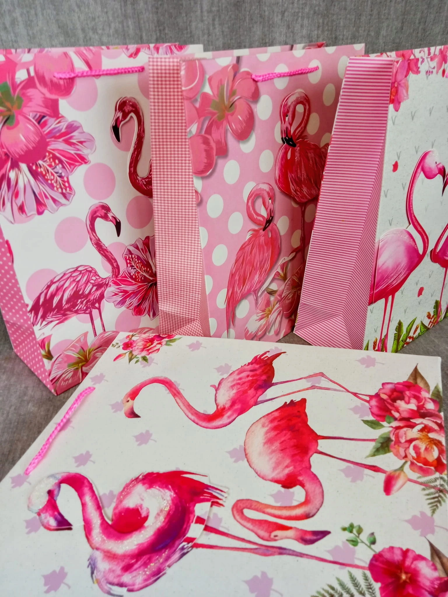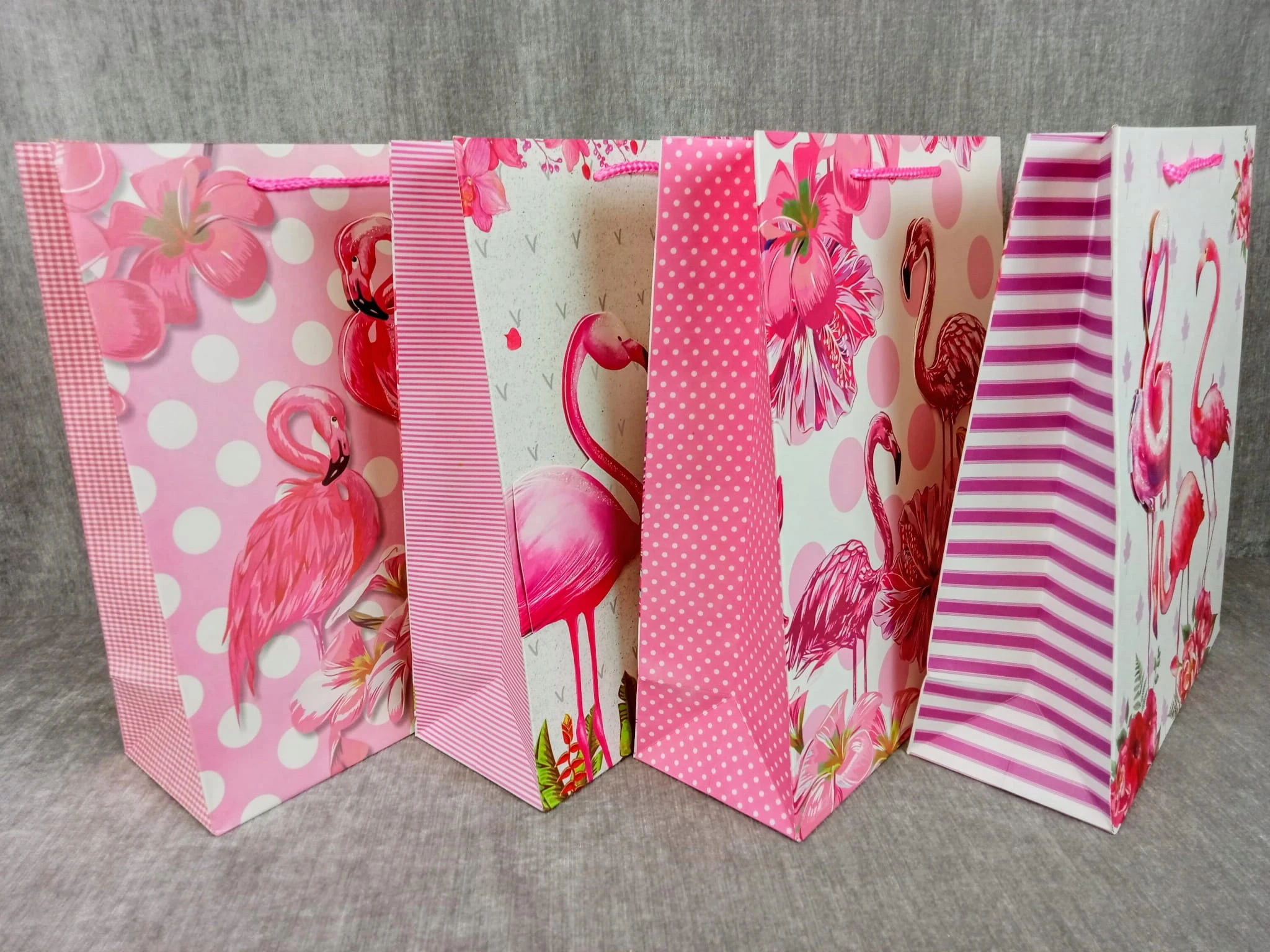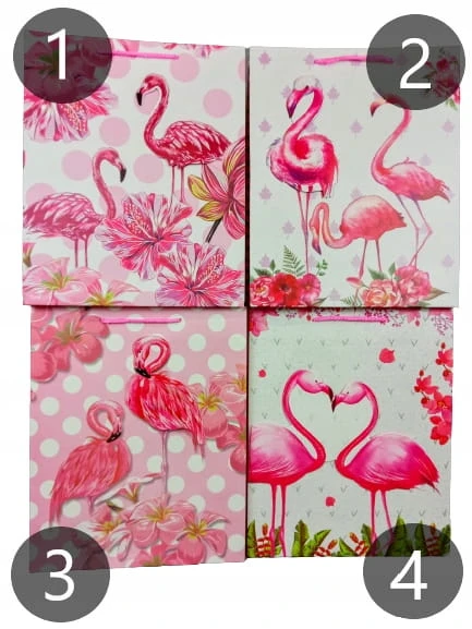 TOREBKA UPOMINKOWA Z FLAMINGAMI 4 WZORY MIX