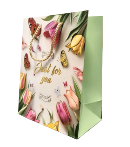 TOREBKA UPOMINKOWA ZIELONA W TULIPANY KWIATY