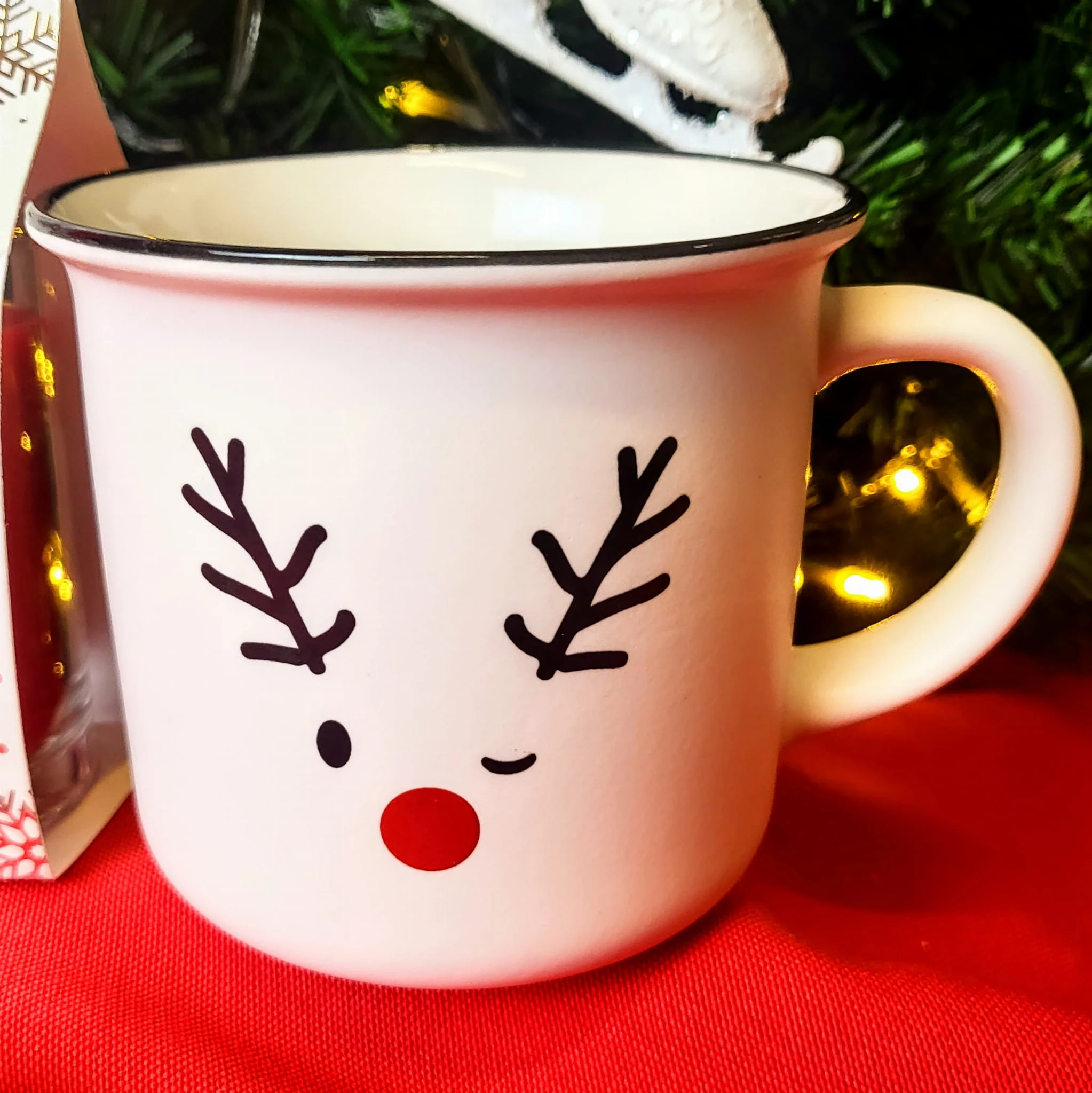 Sympatyczny ceramiczny kubek z reniferem.