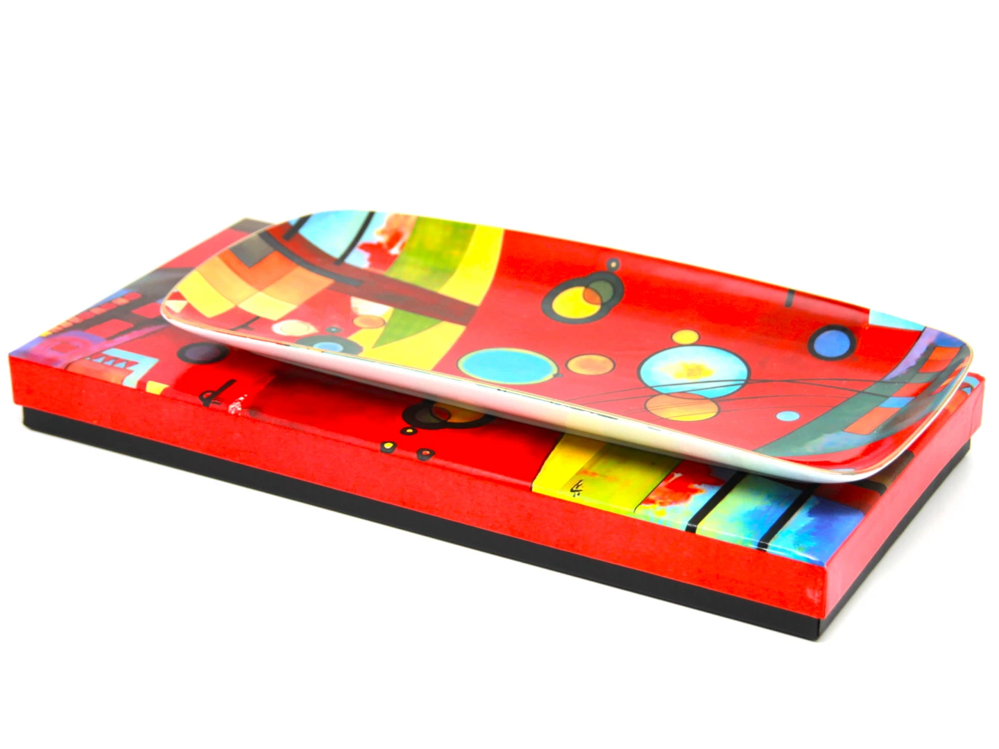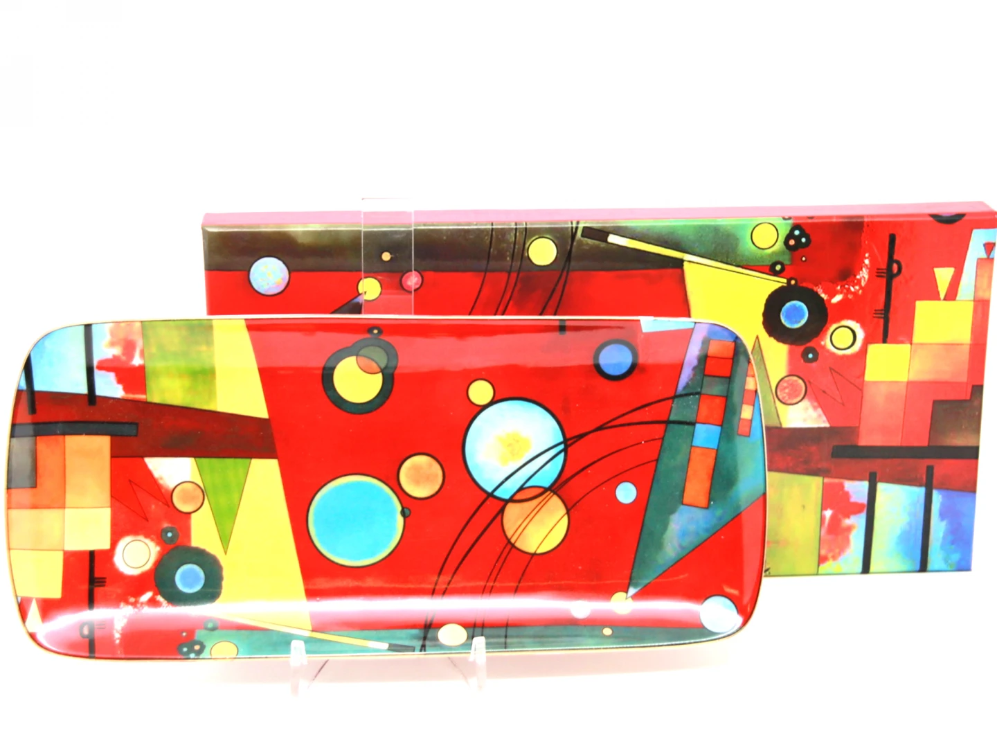 Patera szklana z motywem obrazu W. Kandinsky'iego, idealnie sprawdzi się na ciasto ale może posiadać wiele innych zastosowań. Świetnie sprawdzi się na prezent dla osoby, która ceni elegancję.