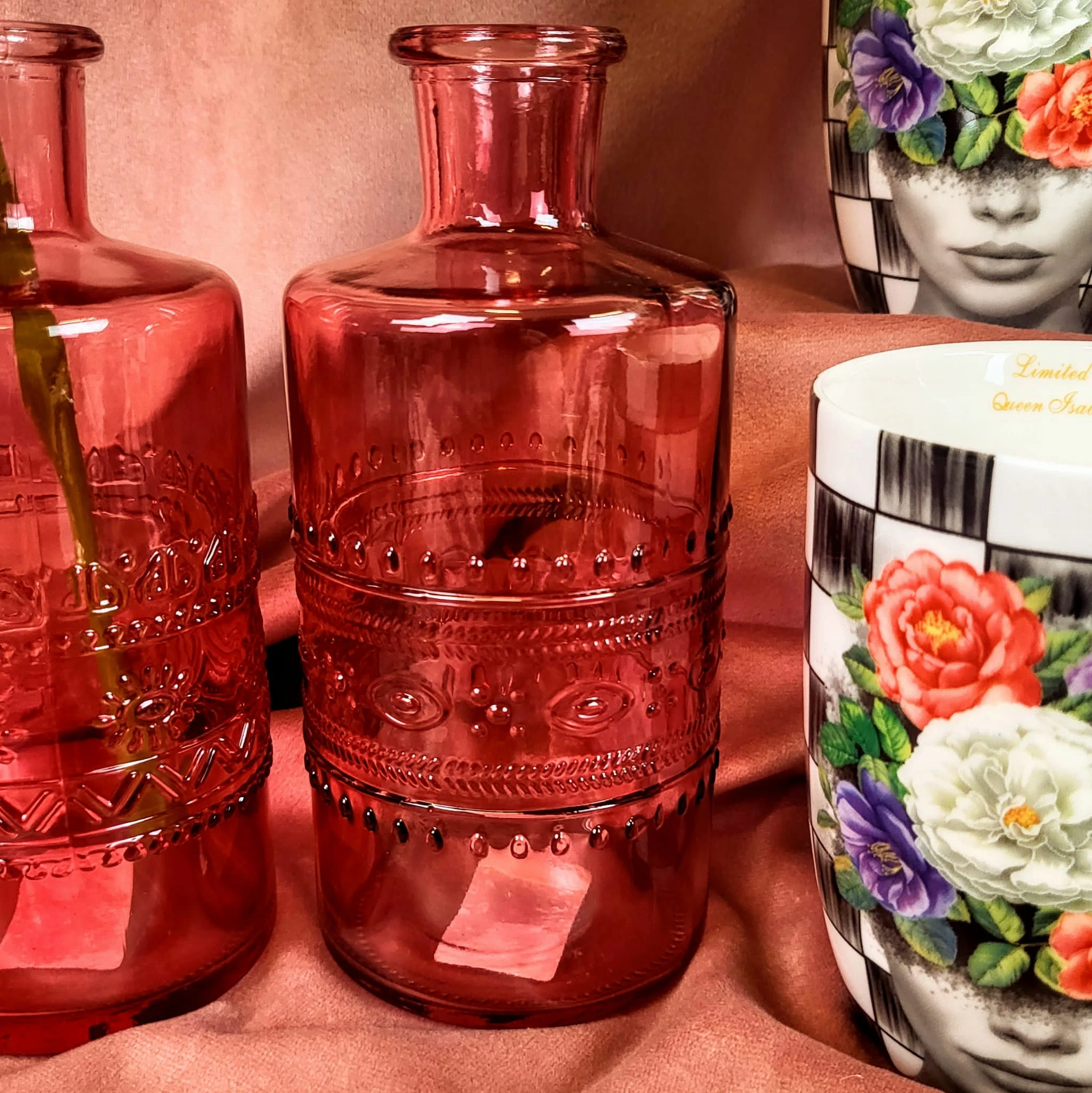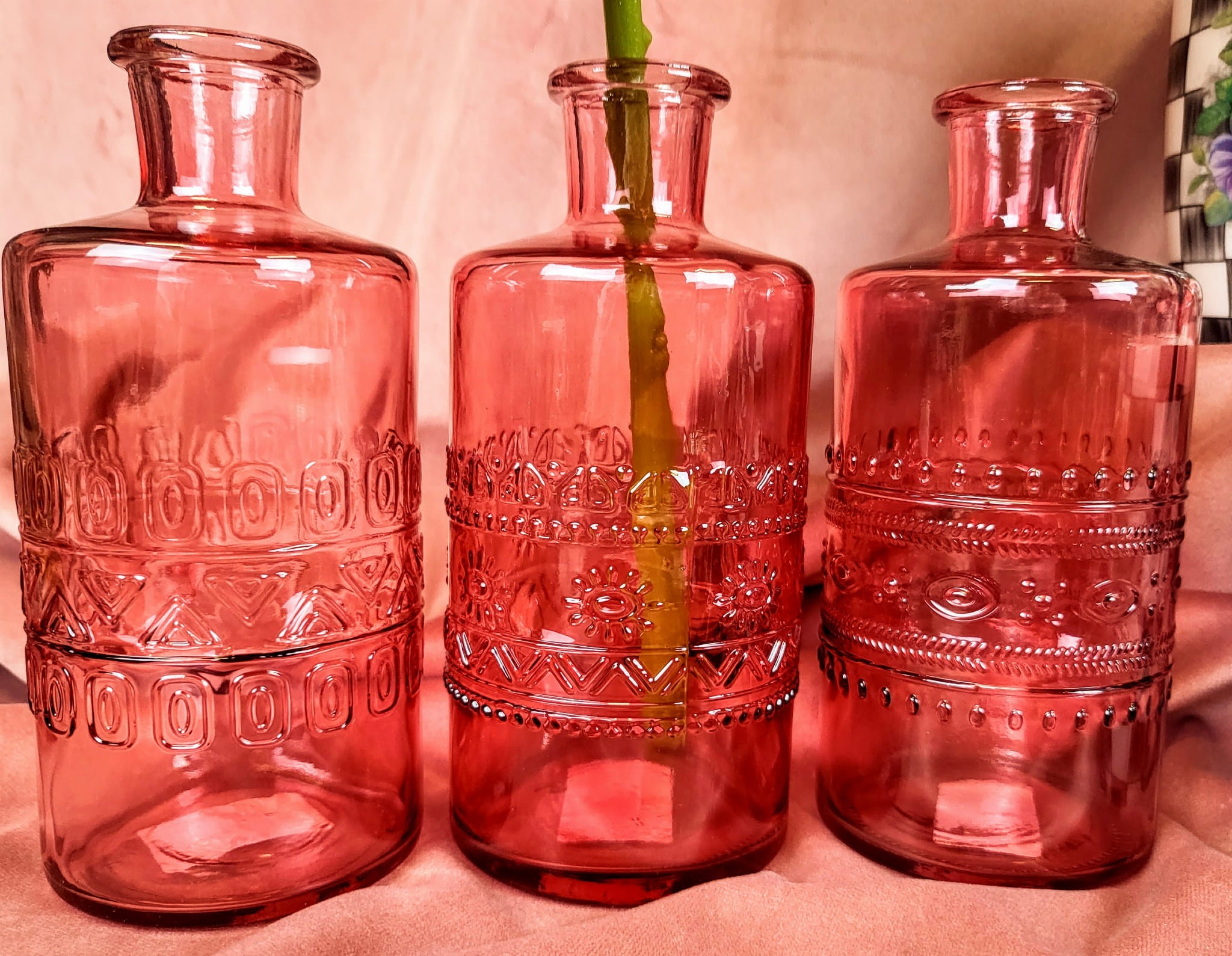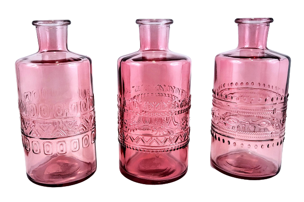 WAZON BUTELKA RÓŻOWY PORTO 3 WZORY H14,5CM