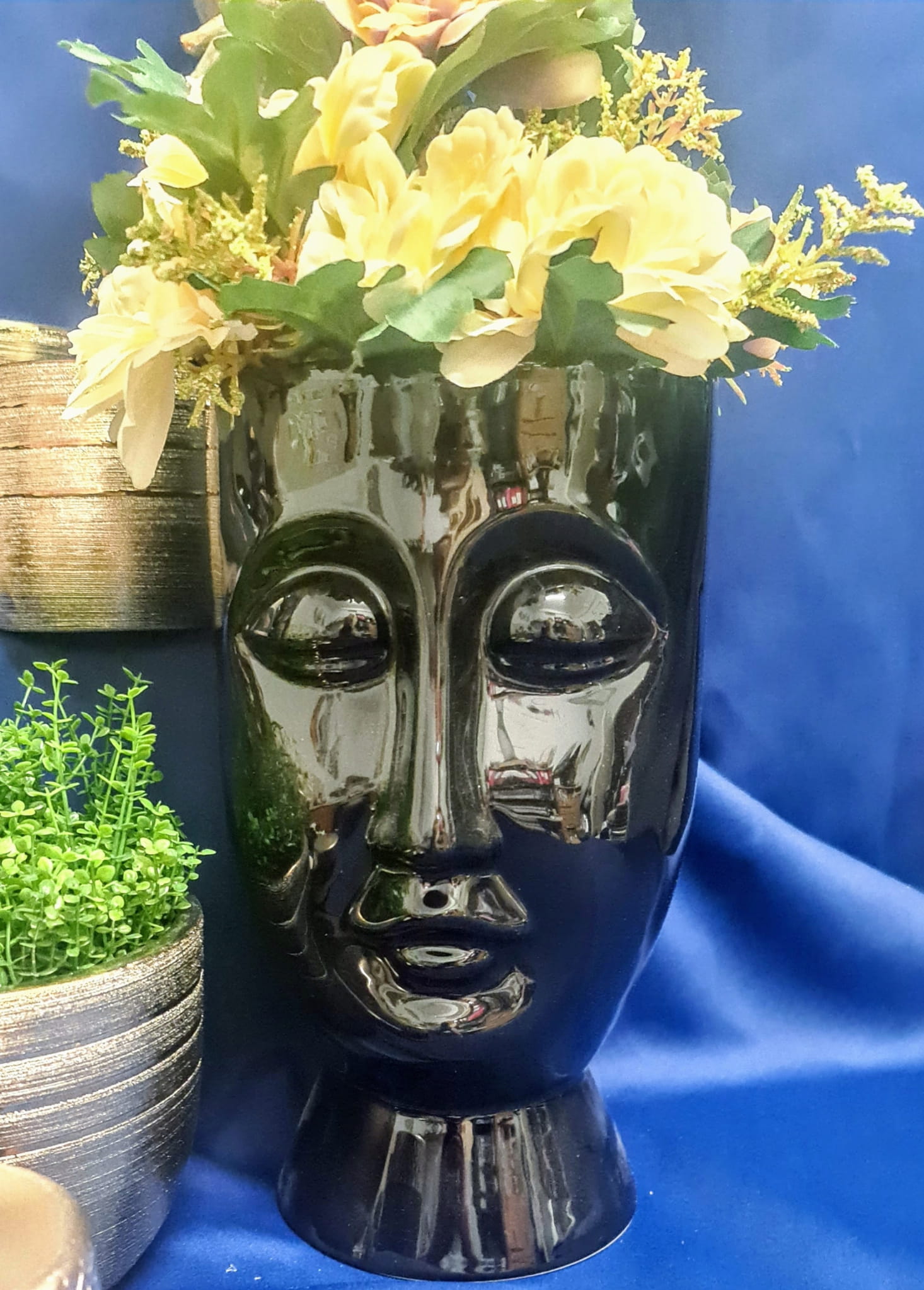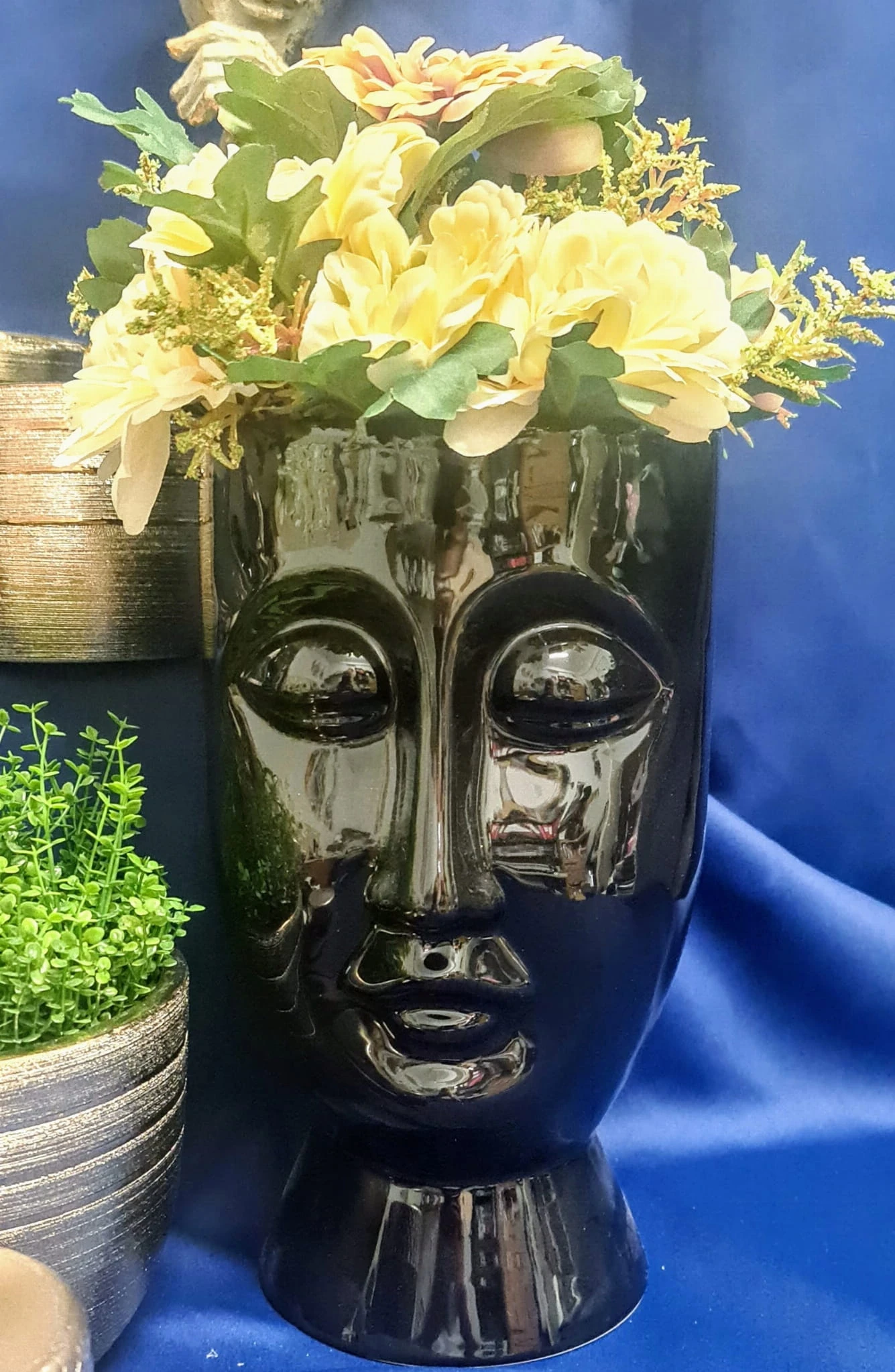 WAZON CERAMICZNY TWARZ CZARNY 16X16X28CM