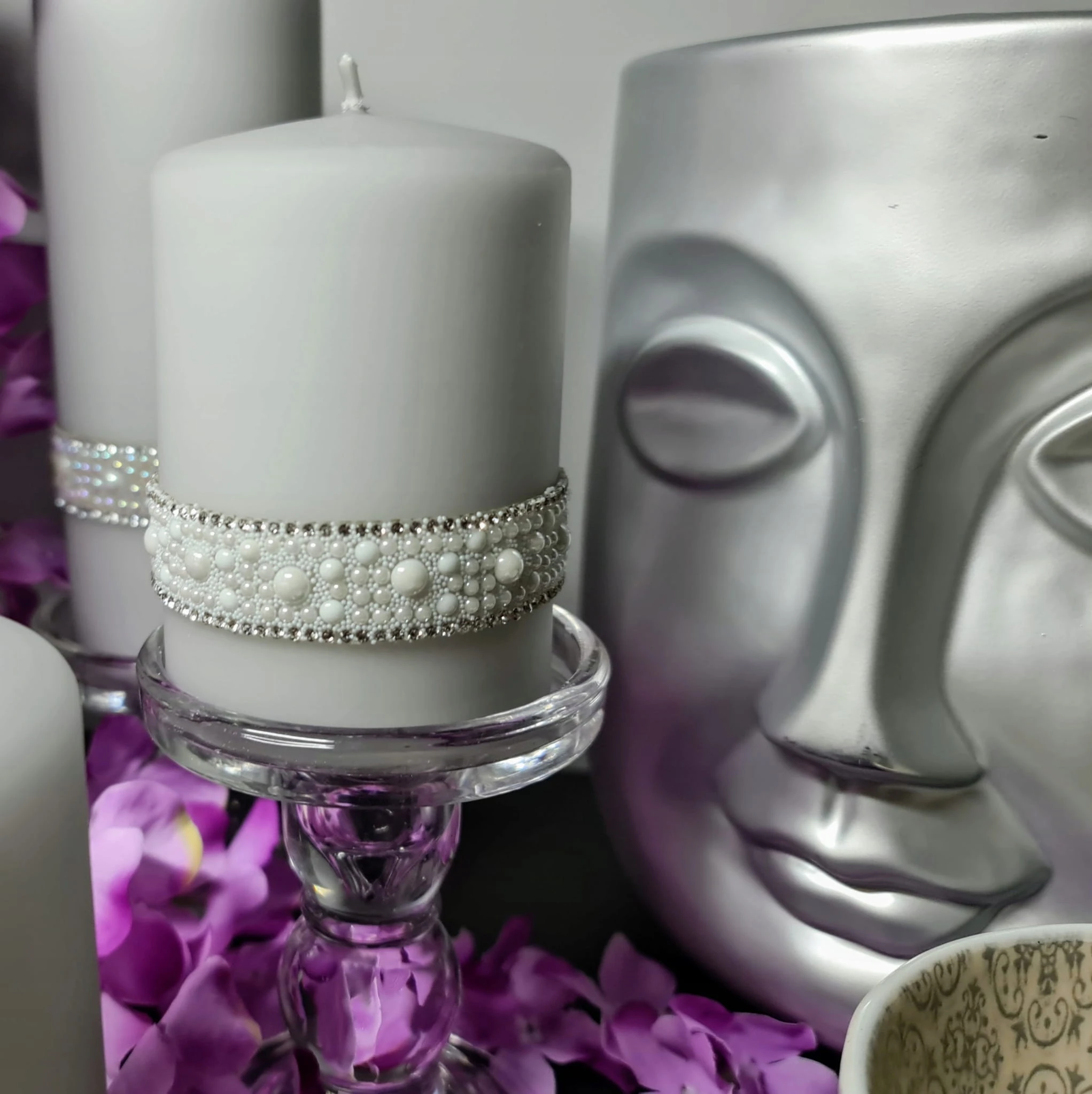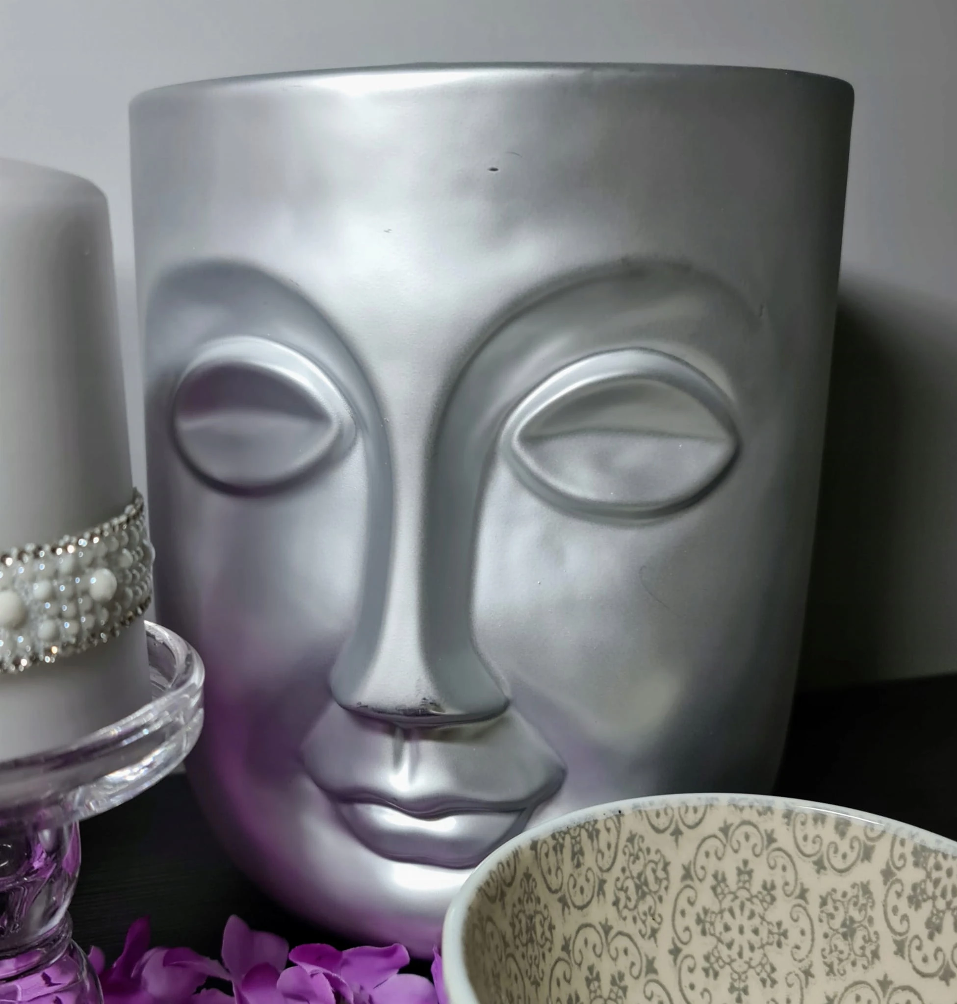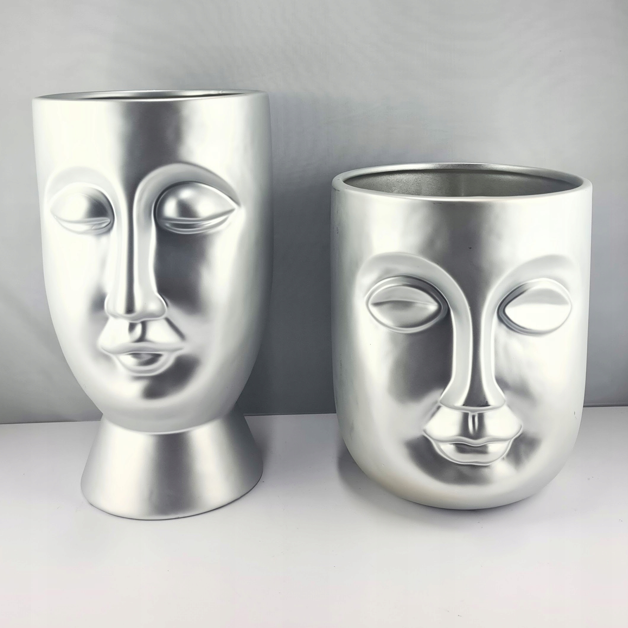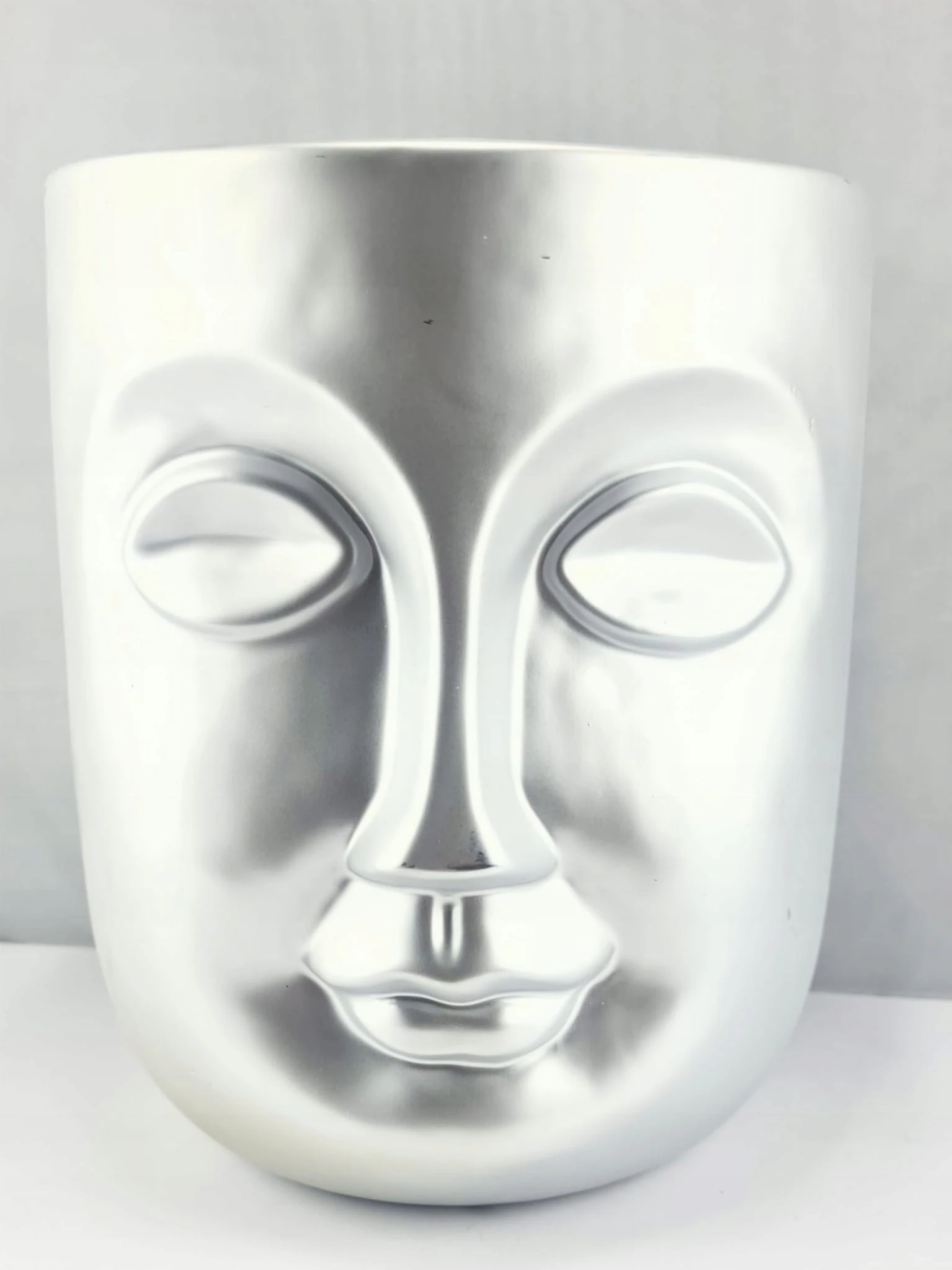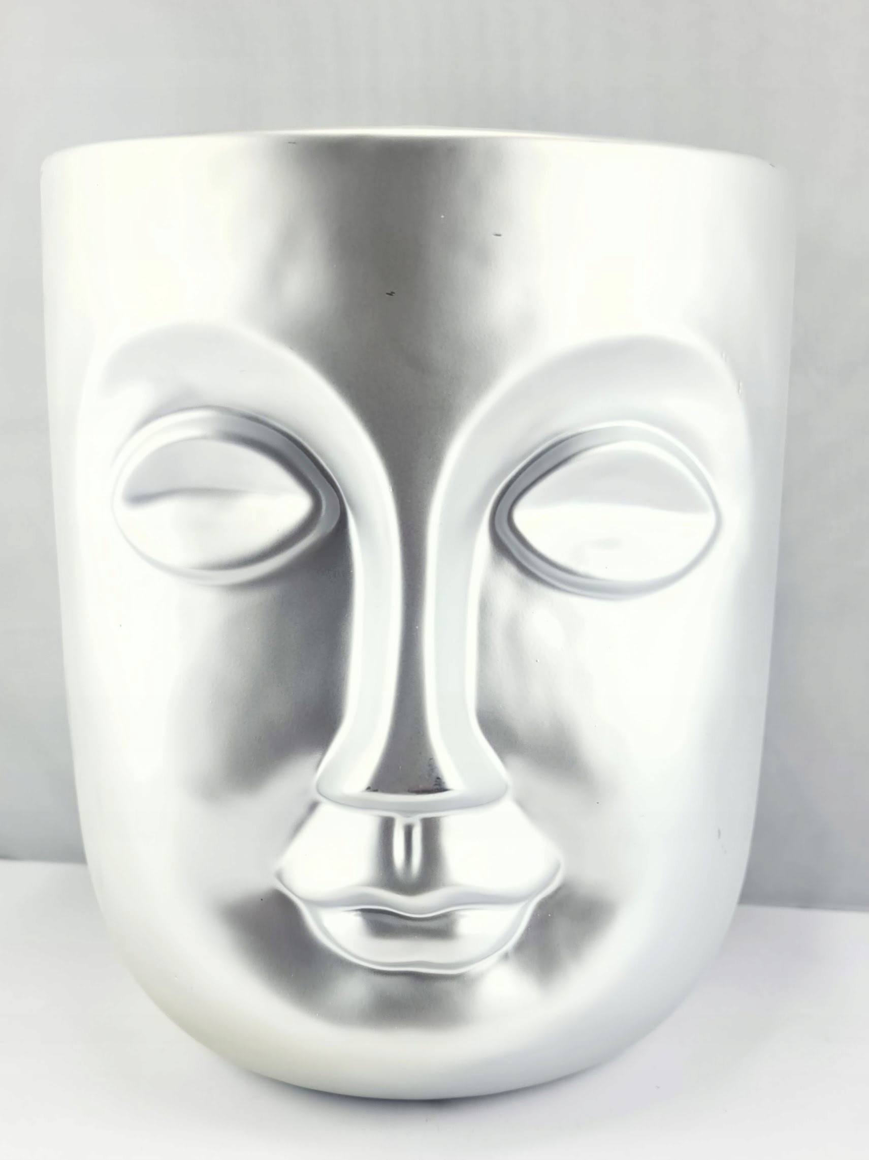 WAZON CERAMICZNY TWARZ SREBRNA MATOWA 18X18X22CM