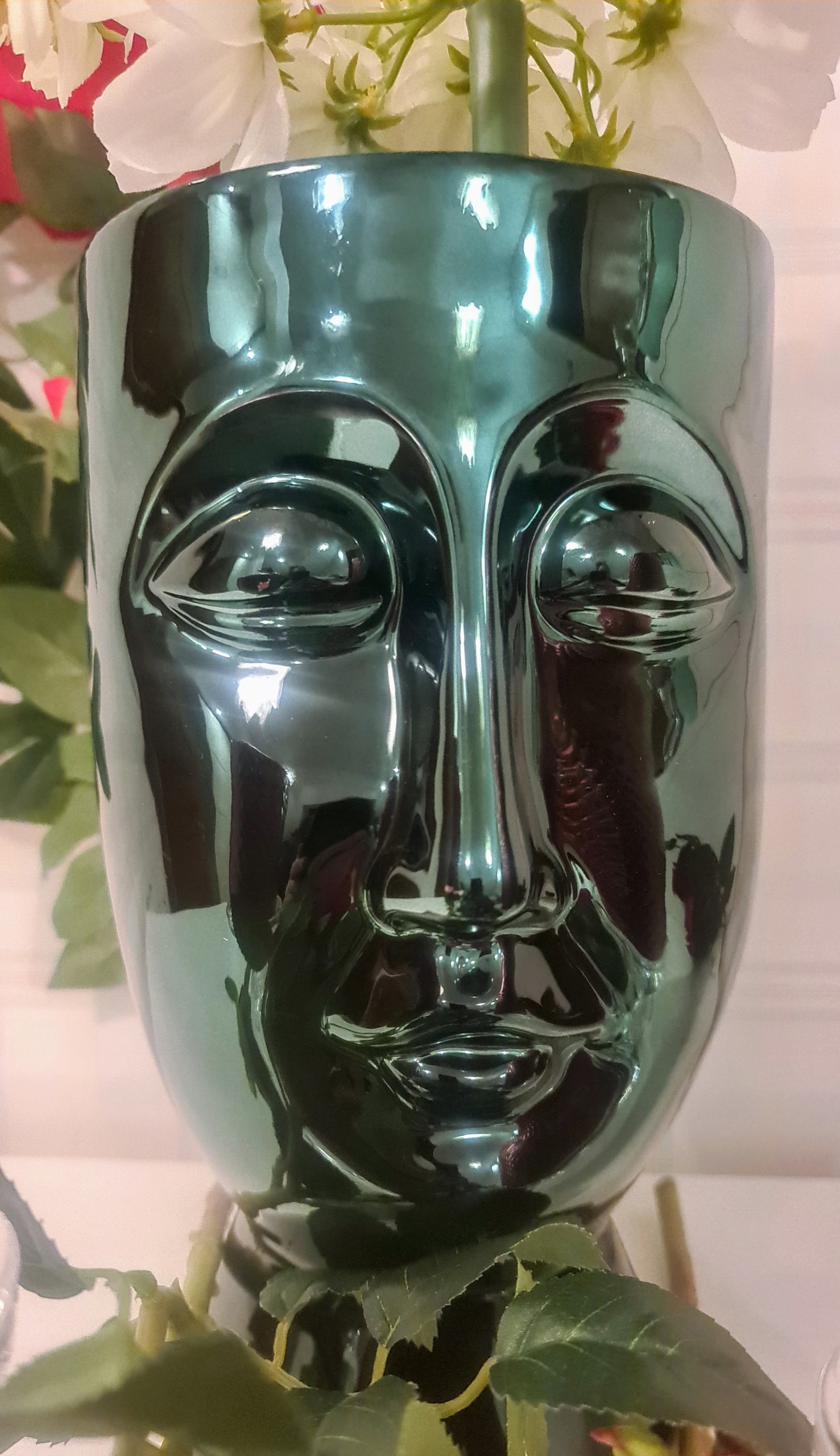WAZON CERAMICZNY TWARZ ZIELONA 16X16X28CM