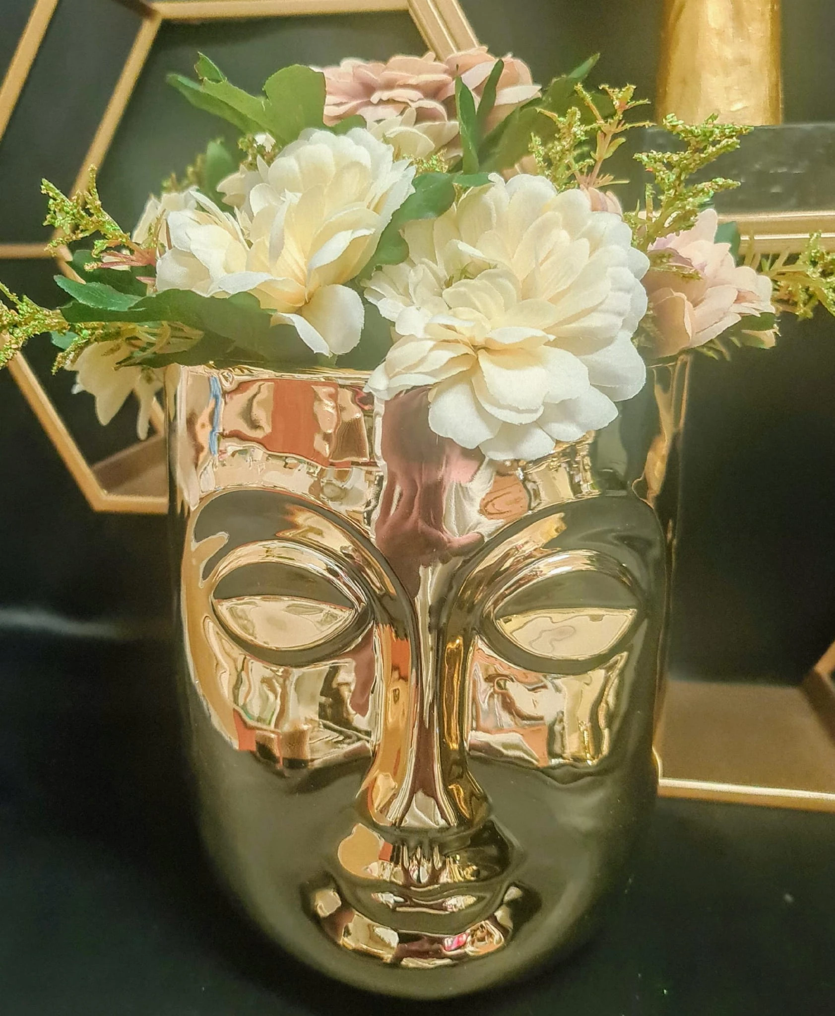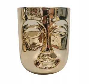 WAZON CERAMICZNY/OSŁONKA TWARZ ZŁOTY 18X18X22CM