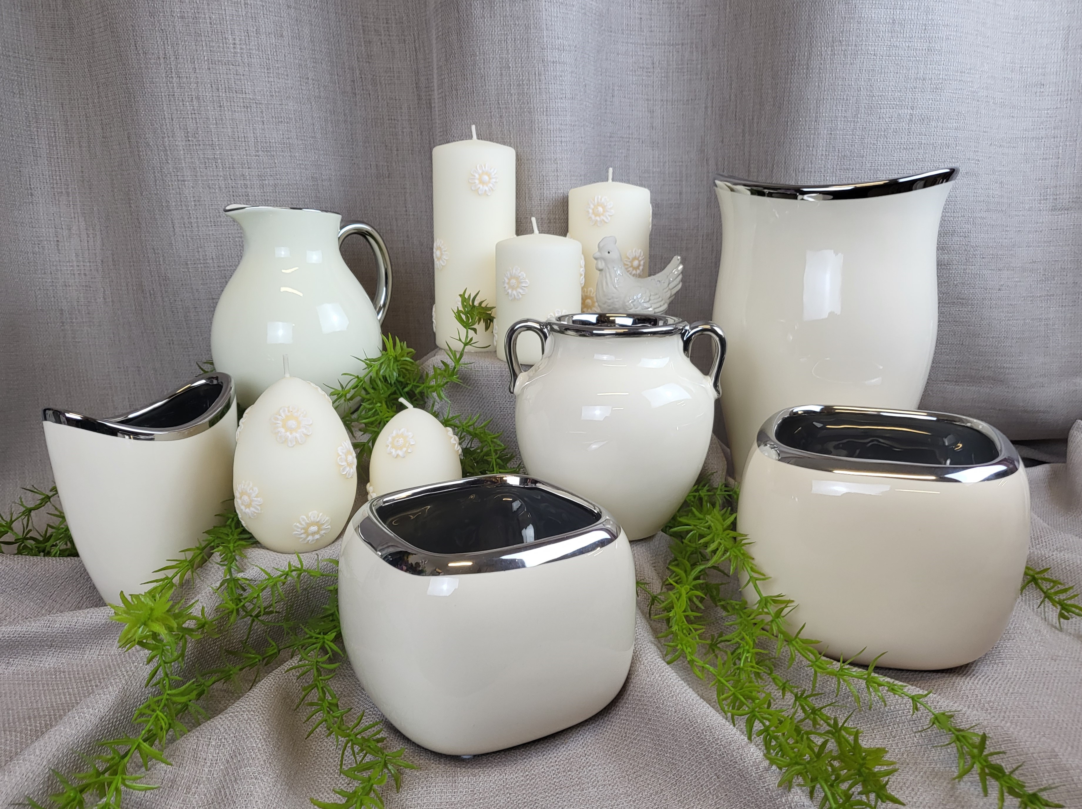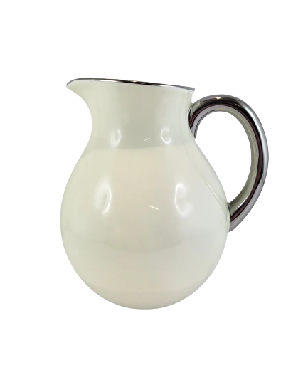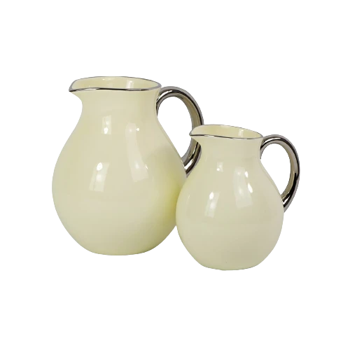 WAZON DZBAN ECRU ŚREDNI ZE SREBRNĄ OBWÓDKĄ