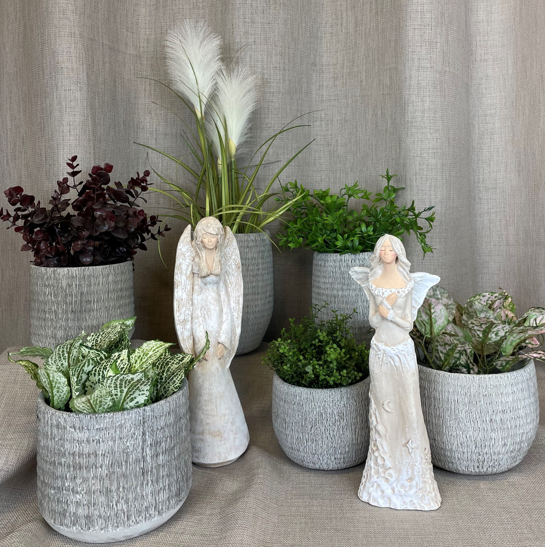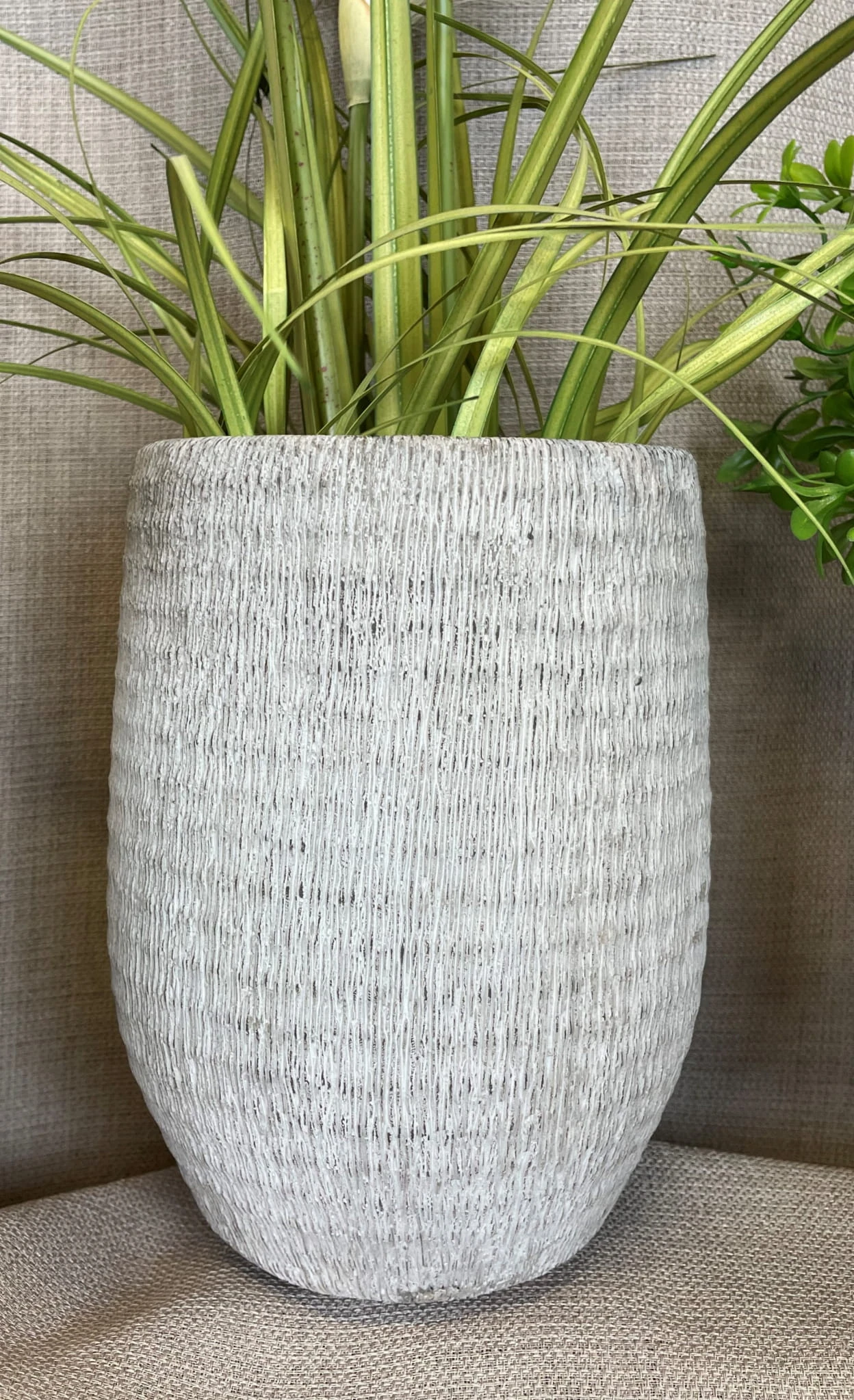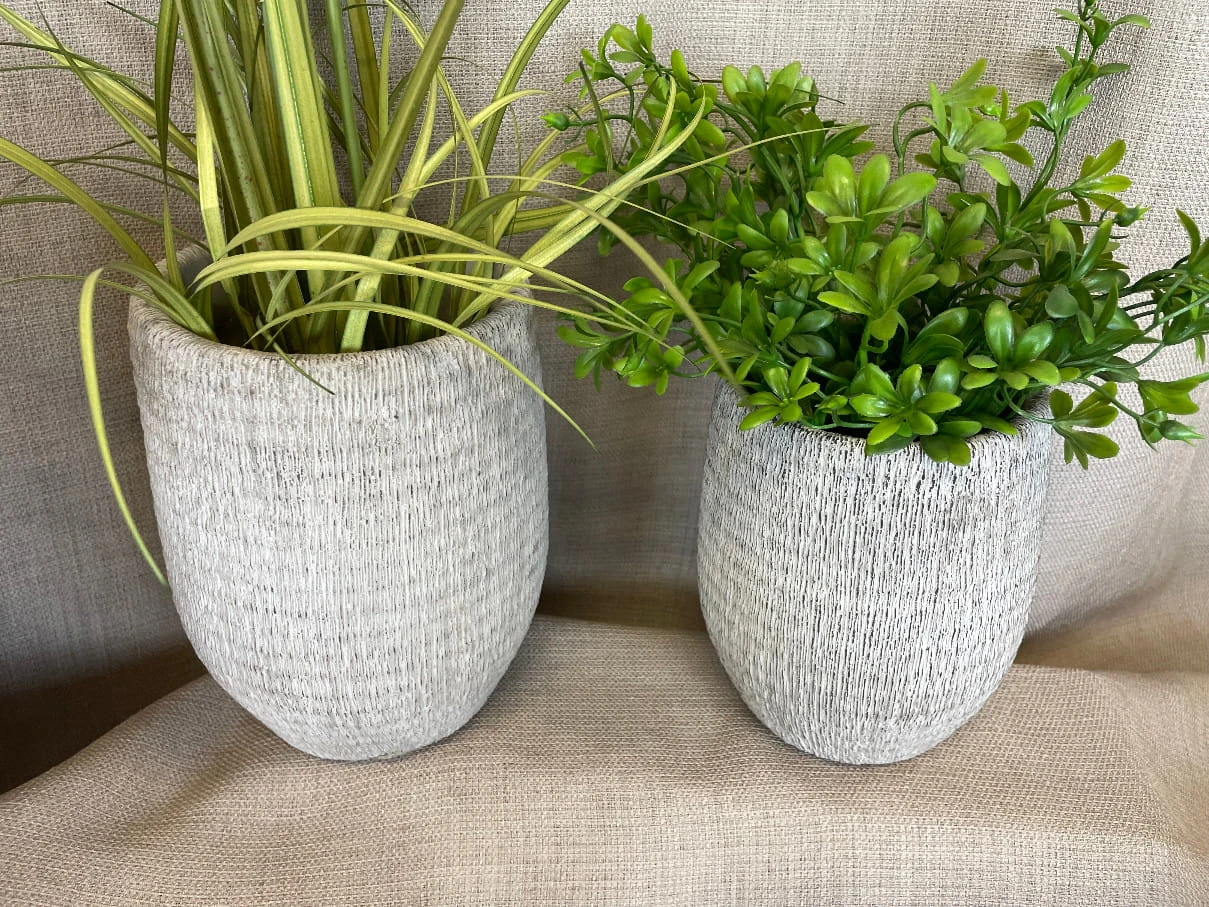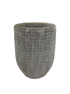 Wazon betonowy w szarym kolorze przecierany. Idealnie wkomponuje się we wnętrze w stylu glamour jak i nowoczesne. Wazon ozdobi biuro, salon czy taras. Może zostać użyty jako osłonka.