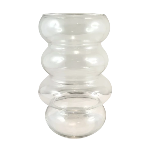Wazon z przezroczystego szkła idealnie nada się jako pojemnik na kwiaty lub jako dekoracyjny element bez dodatkowych upiększeń. Jego wszechstronność i funkcjonalność pozwalają na różnorodne zastosowania, tworząc wyjątkowe aranżacje w Twoim wnętrzu.