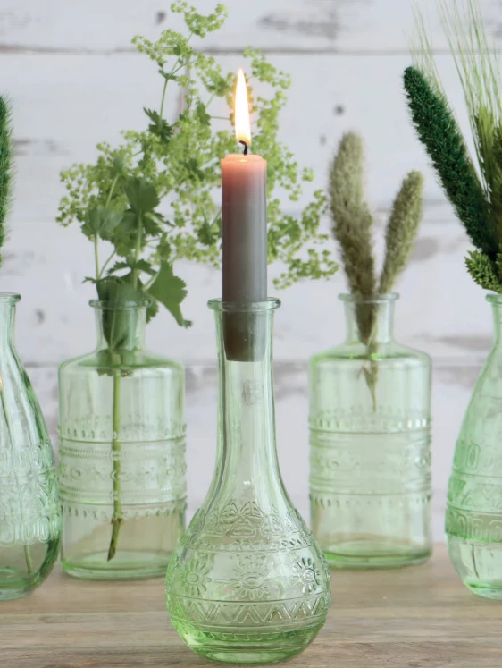 WAZON ŚWIECZNIK BUTELKA PARIS ZIELONY H15,8CM - 3 WZORY