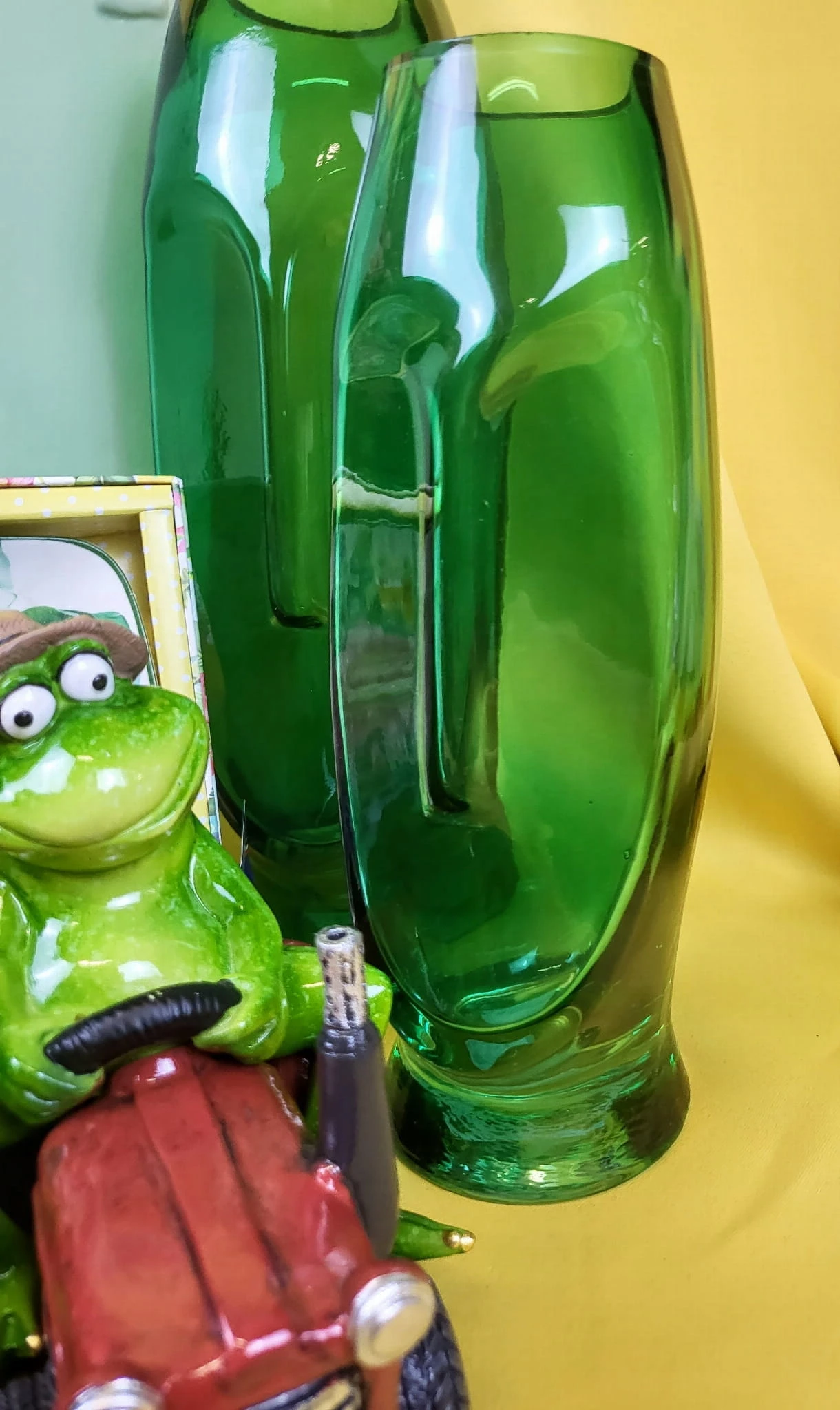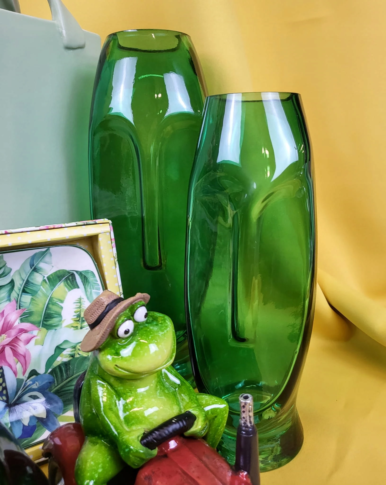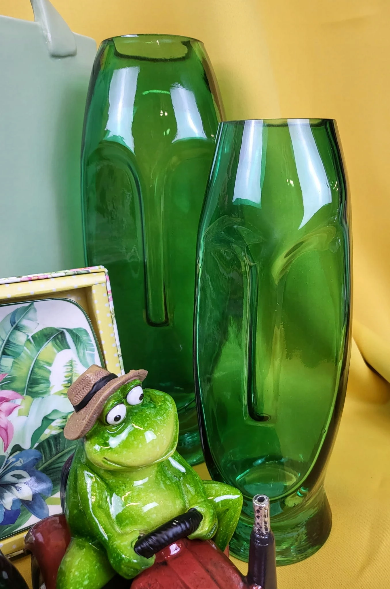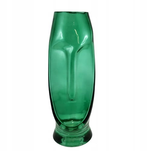 Szklany wazon w zielonym kolorze z motywem twarzy. Jeden z najmodniejszych dodatków w tym sezonie. Może również posłużyć jako wazon.