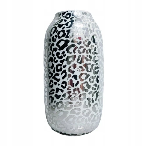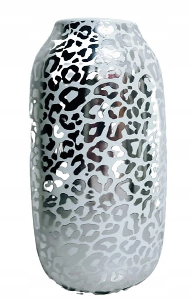 Nietuzinkowy biały wazon w srebrne cętki. Stanowi idealny element dekoracyjny. Idealnie wkomponuje się we wnętrza w stylu glamour i nie tylko. Świetnie sprawdzi się jako ozdoba do domu lub prezent dla osoby lubiącej elegancję.