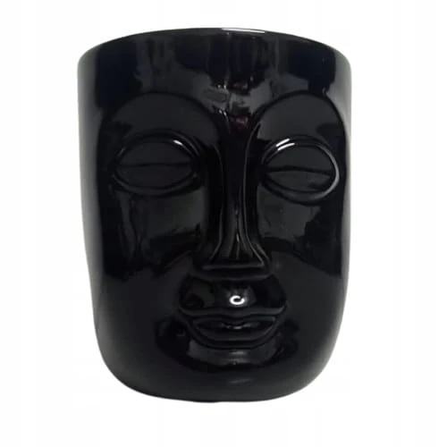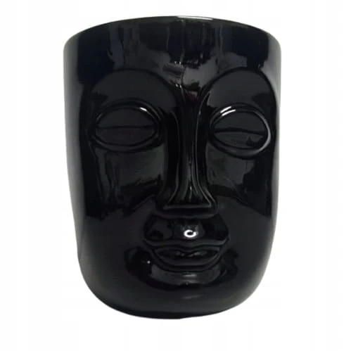 WAZON/OSŁONKA CERAMICZNA TWARZ CZARNY15X15X18CM