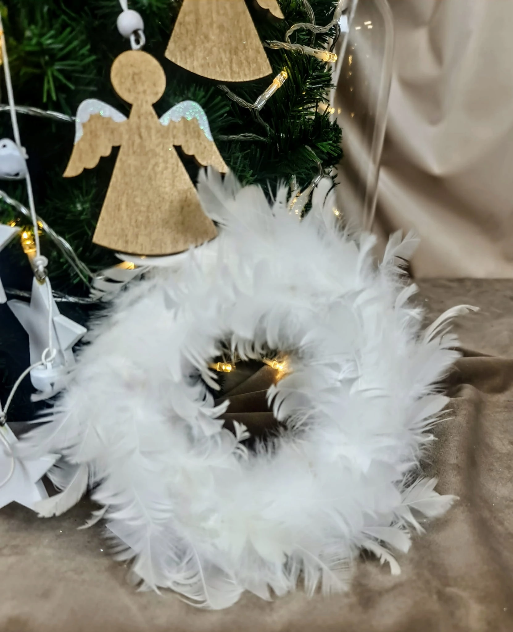 WIANEK NA DRZWI WIENIEC Z PIÓR BIAŁY FI14CM