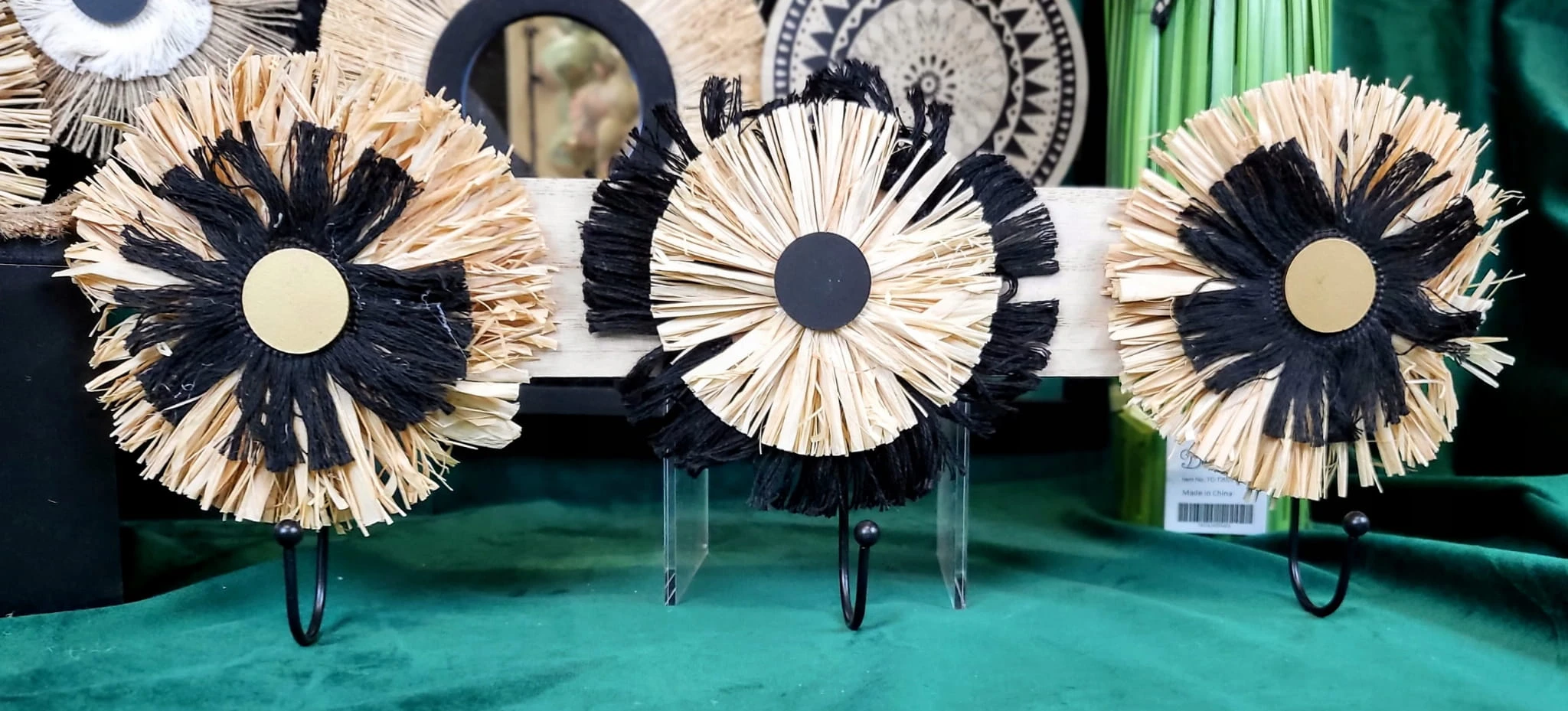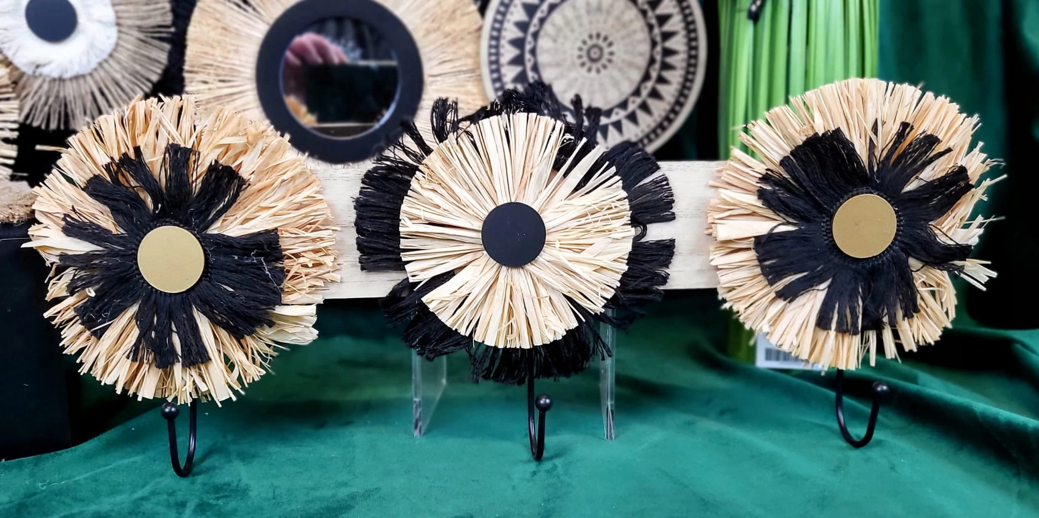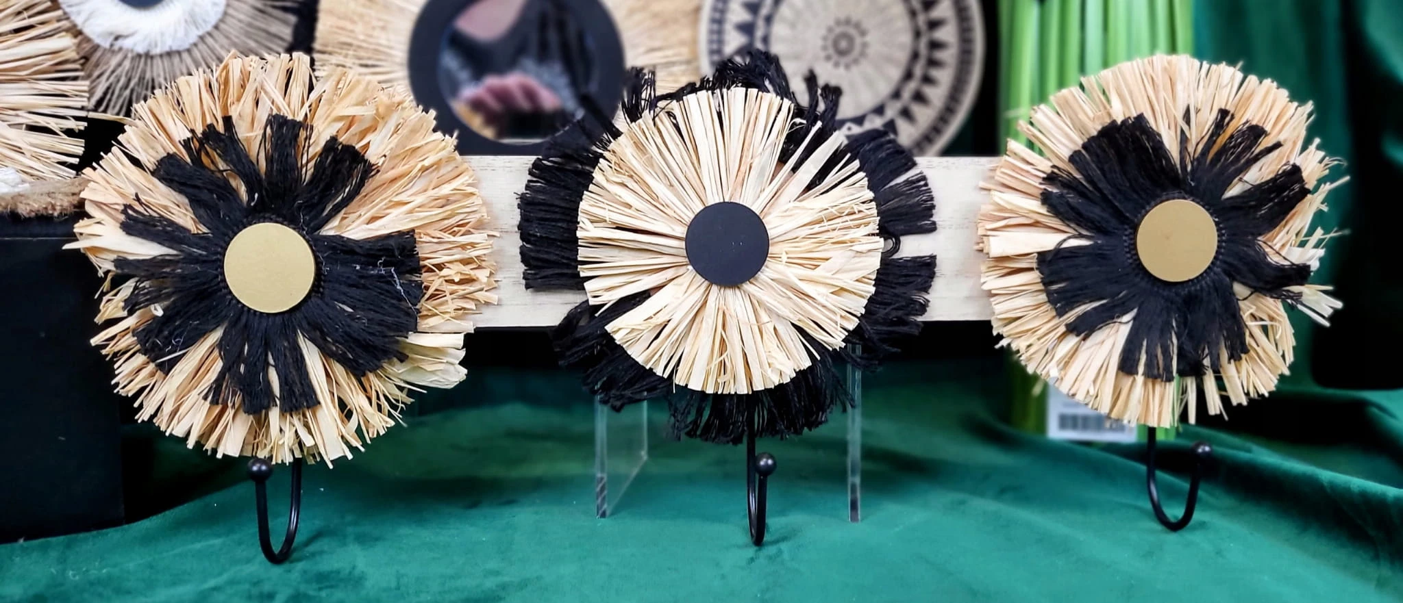 Wieszak w kolorze drewna z naturalnymi dodatkami w kolorze beżu i czerni. Jeden z najmodniejszych dodatków w tym sezonie.