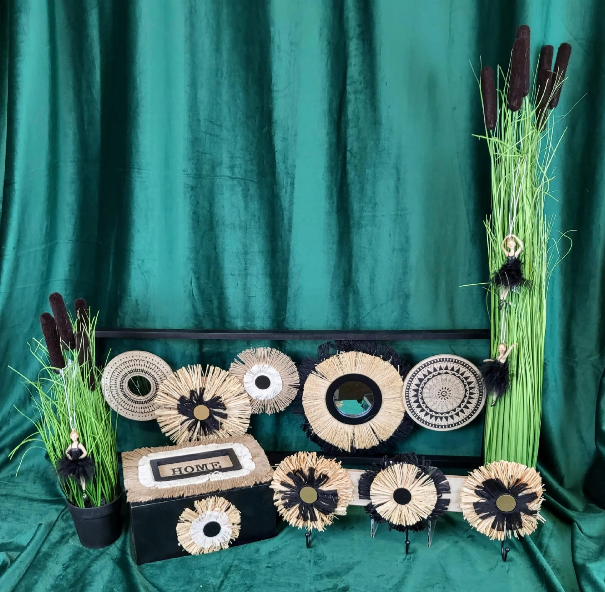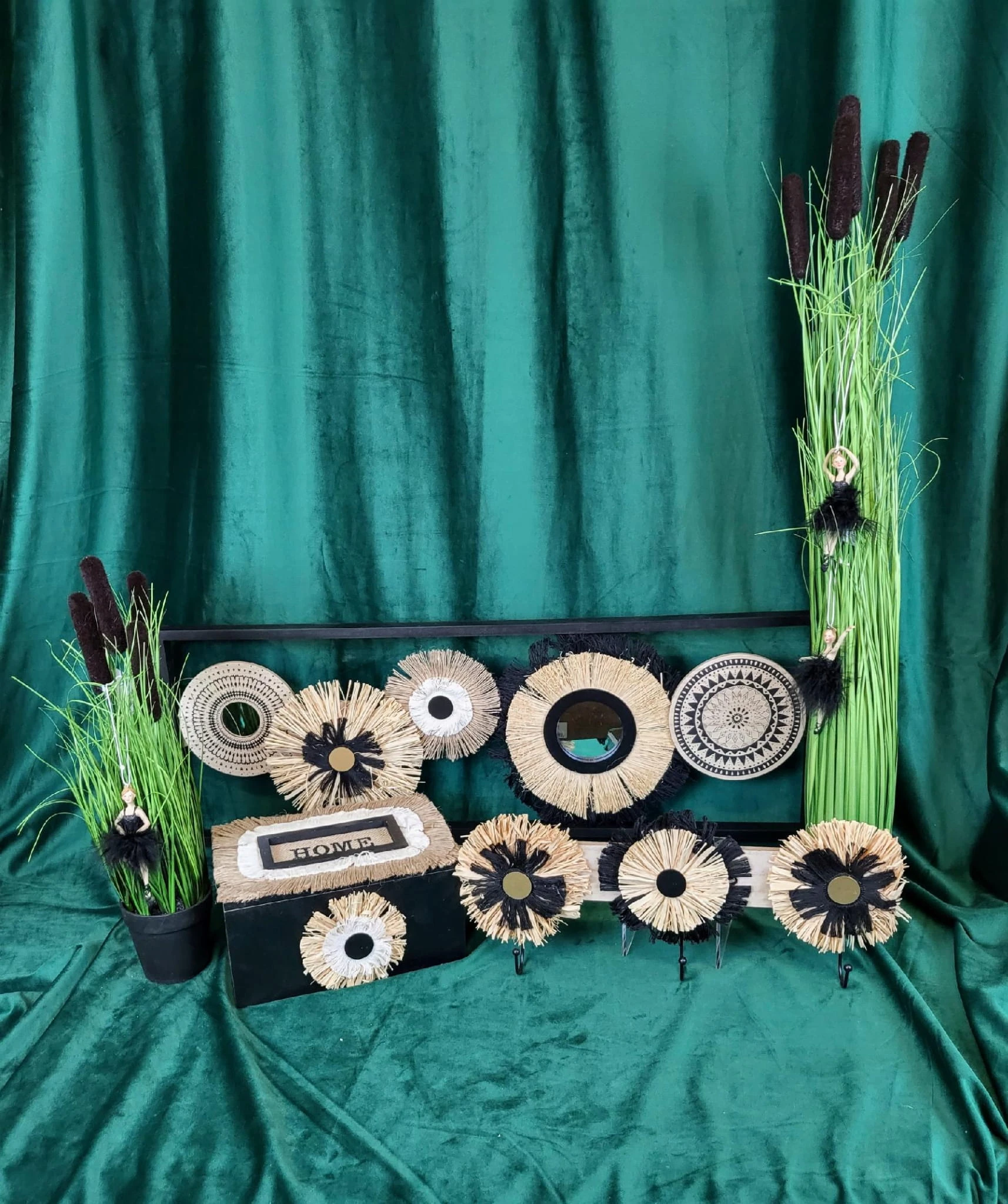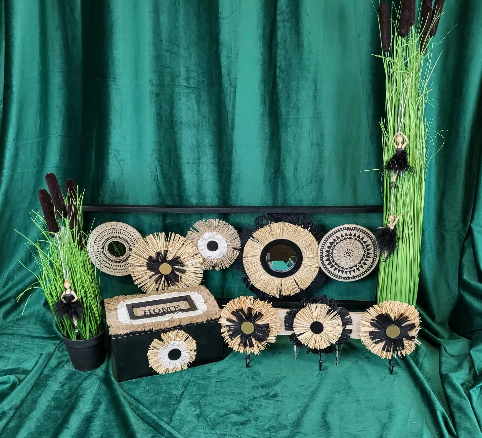 Wieszak w kolorze drewna z naturalnymi dodatkami w kolorze beżu i czerni. Jeden z najmodniejszych dodatków w tym sezonie.