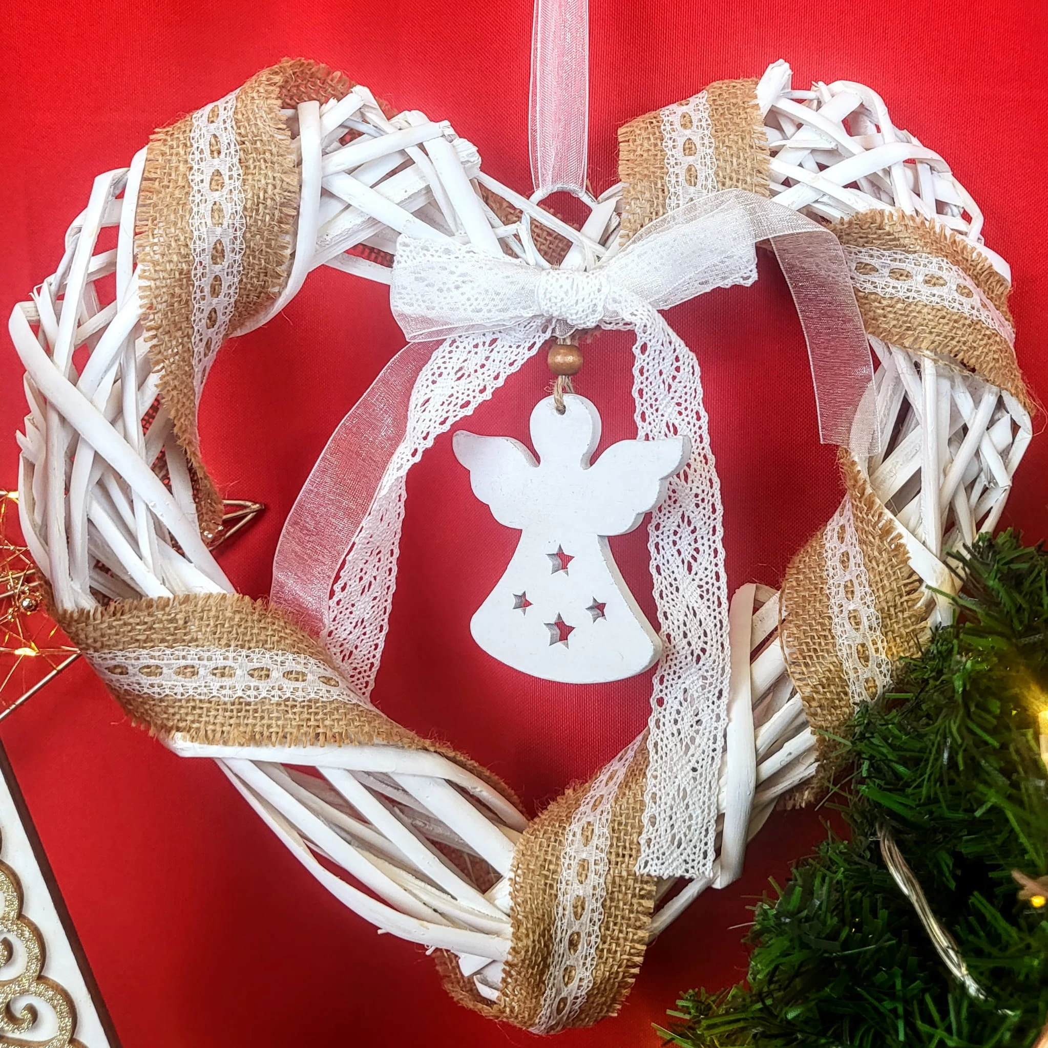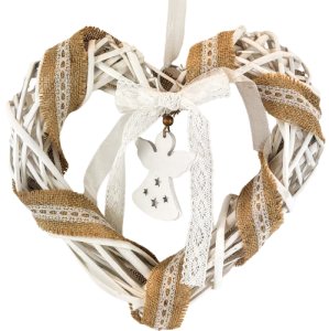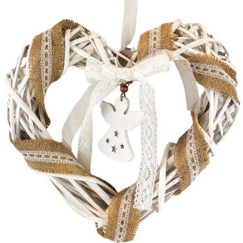 WIKLINOWE SERCE WISZĄCE Z ANIOŁKIEM 30CM